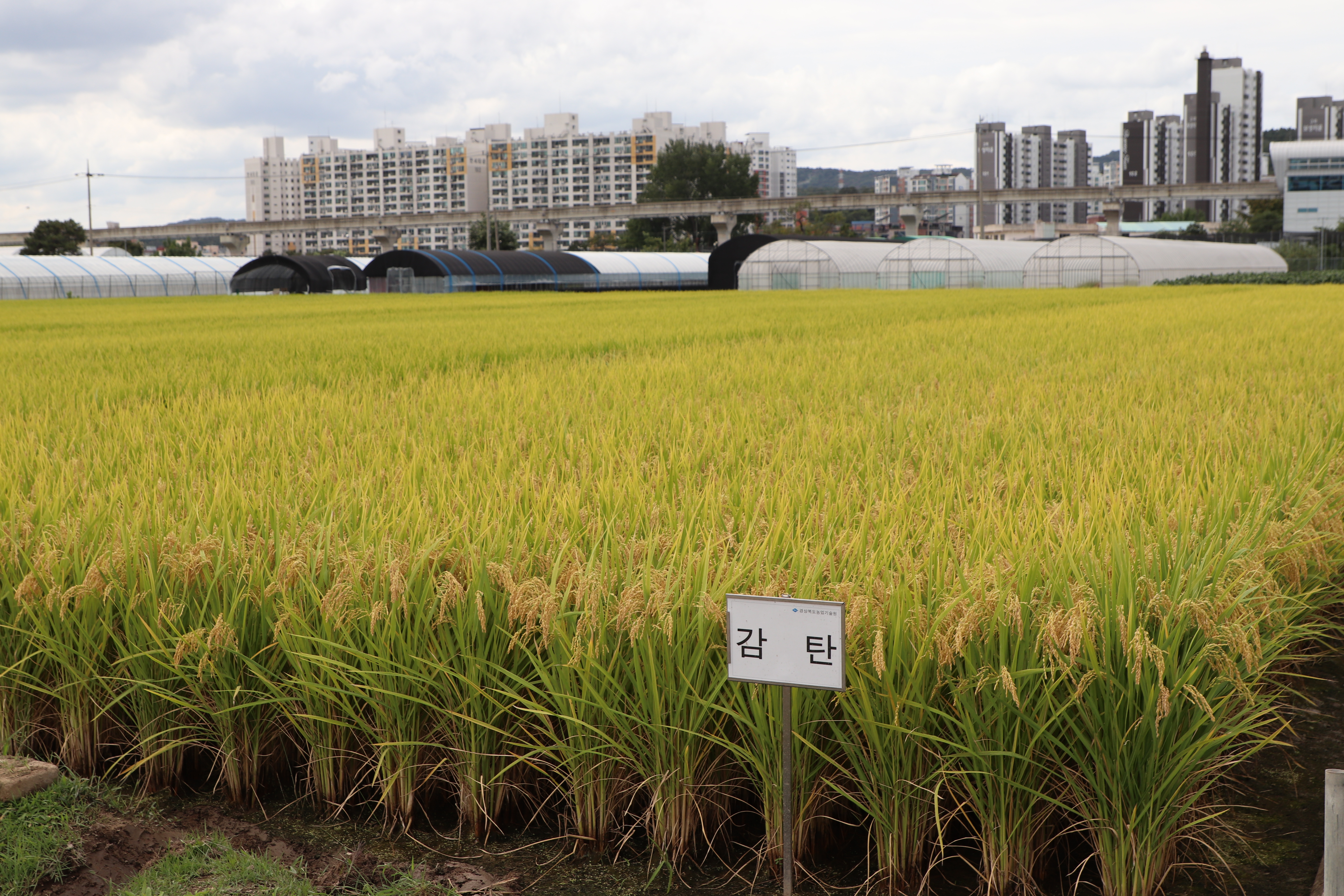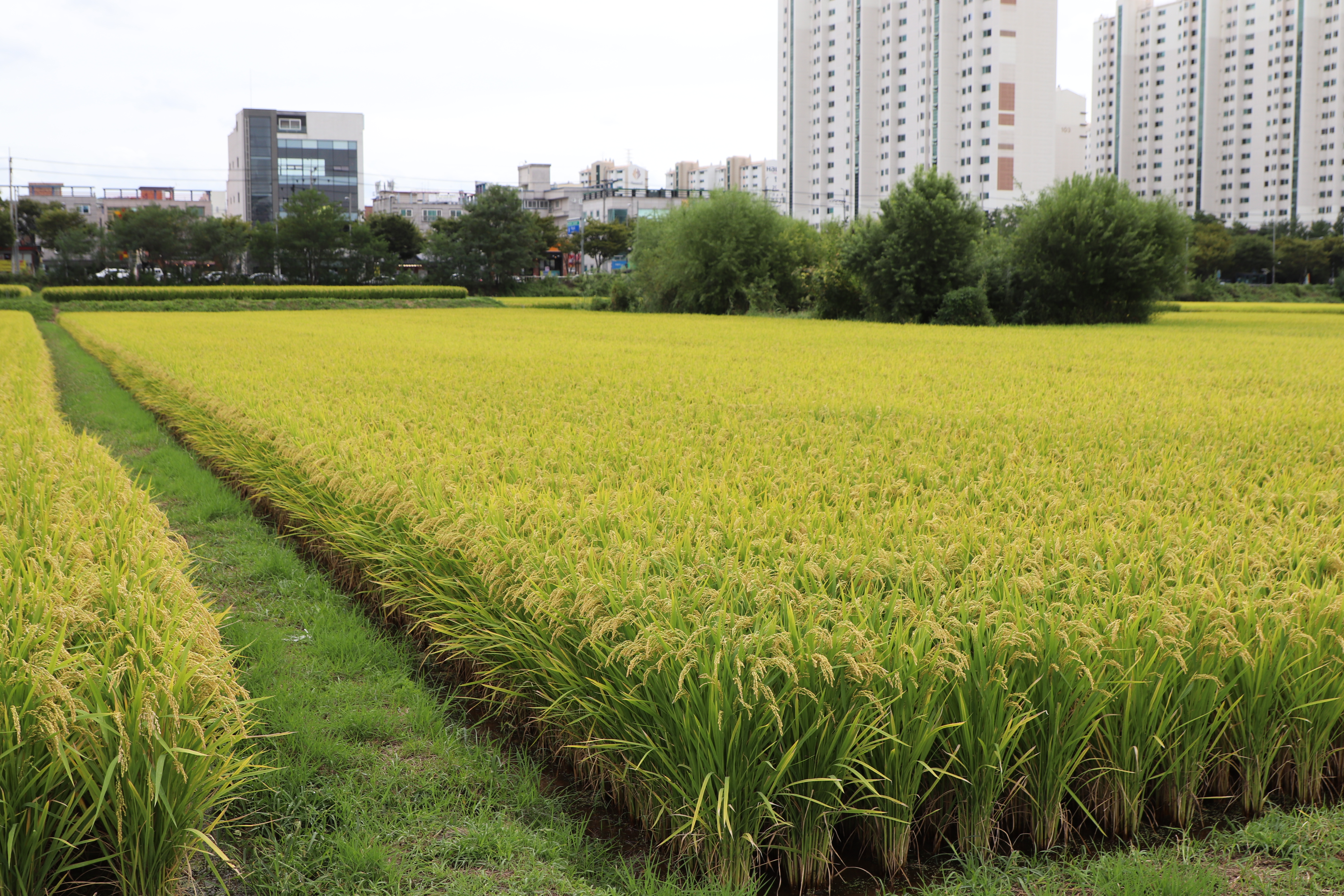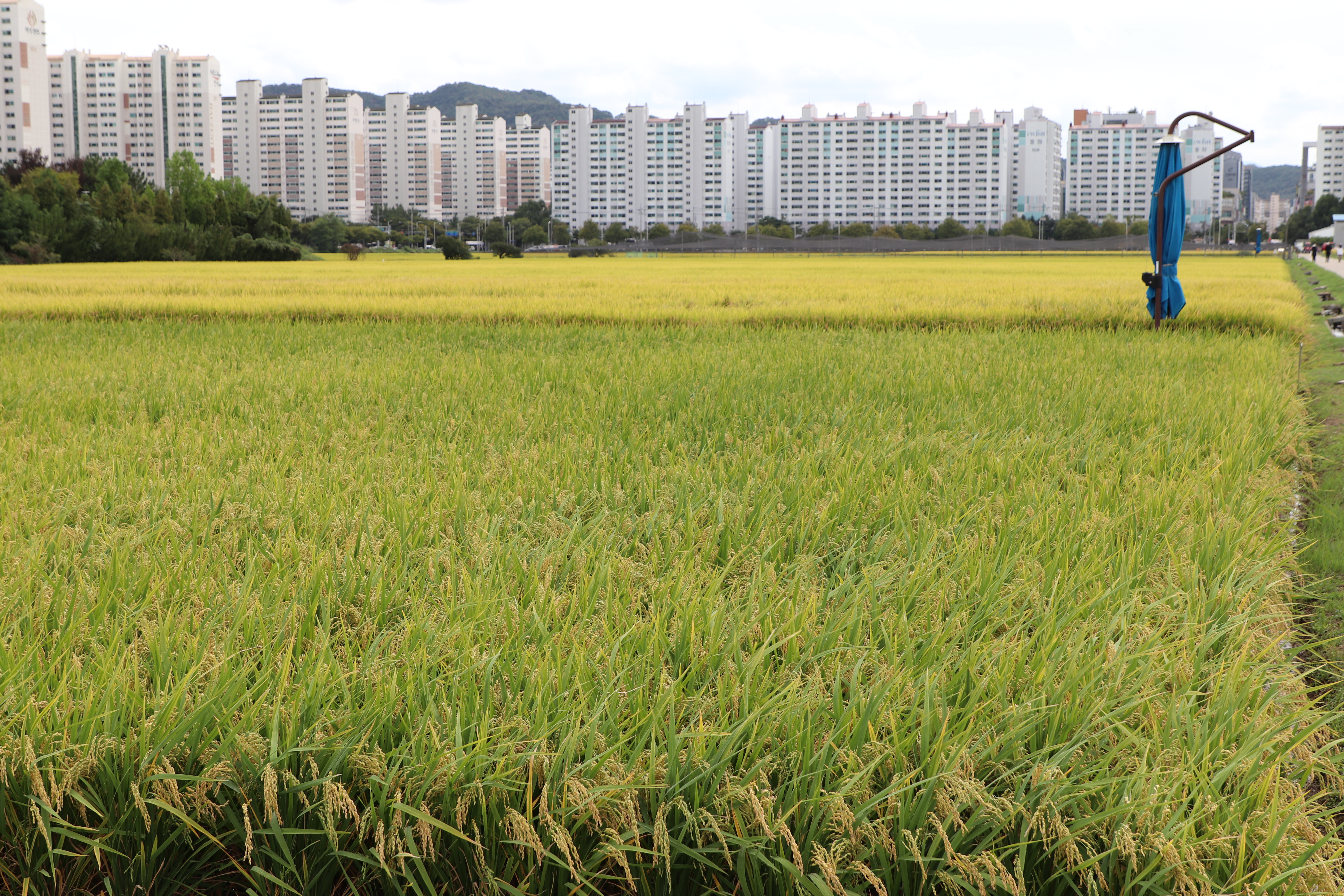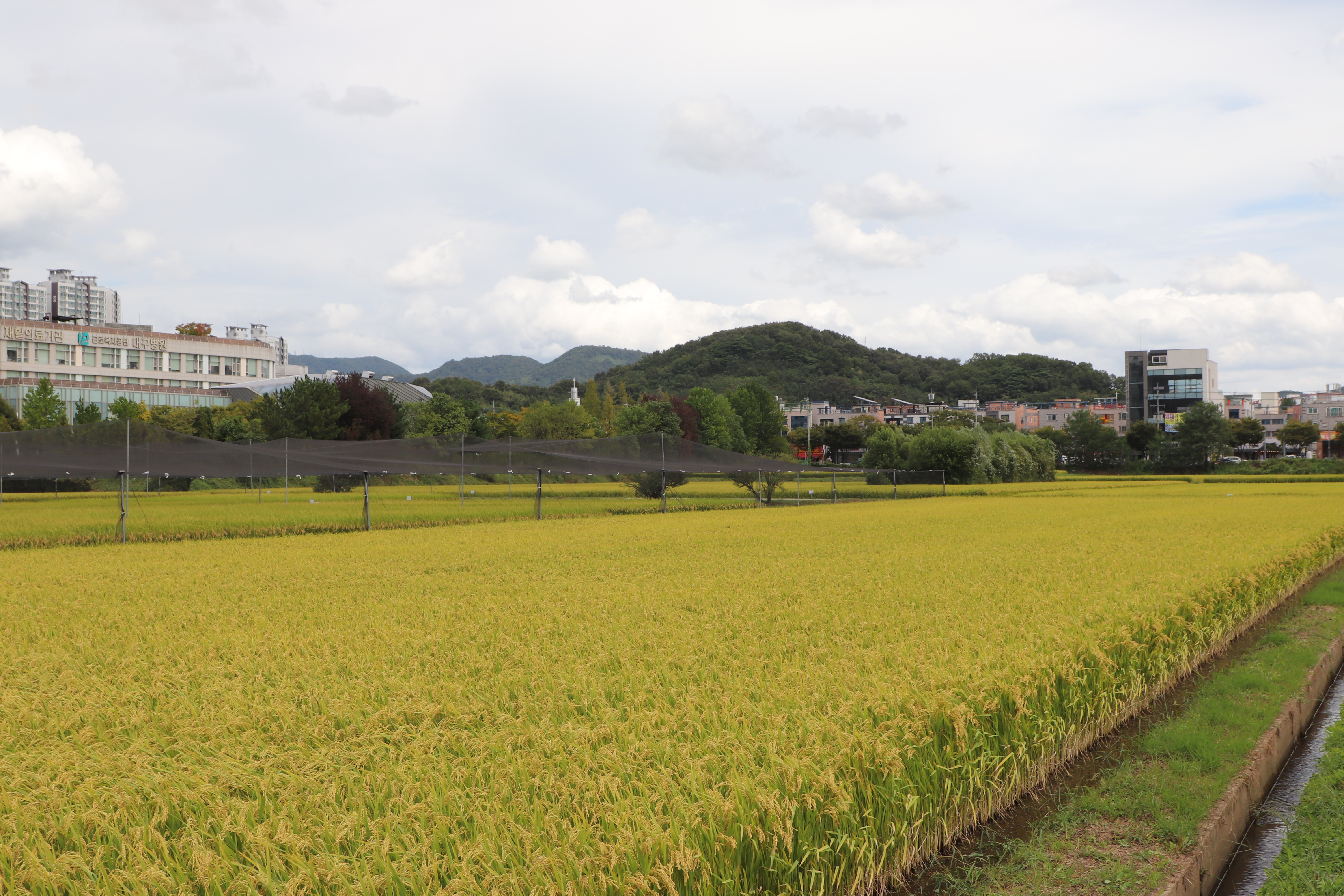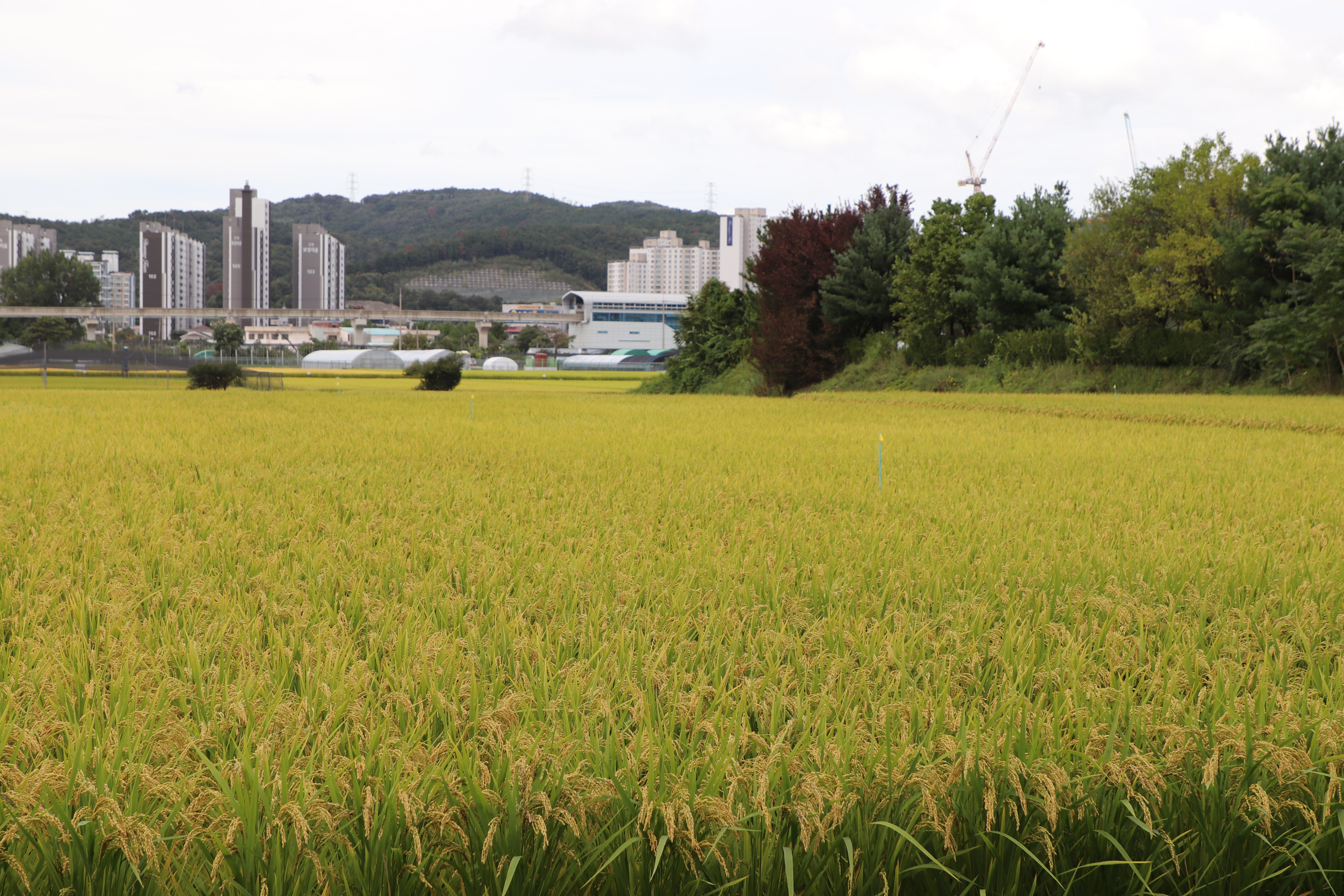 대구광역시 북구 학정동 경상북도 농업기술원 벼 종자(種子) 채종포(採種圃)에, 벼들이 황금색으로 곱게 물들고 있습니다.