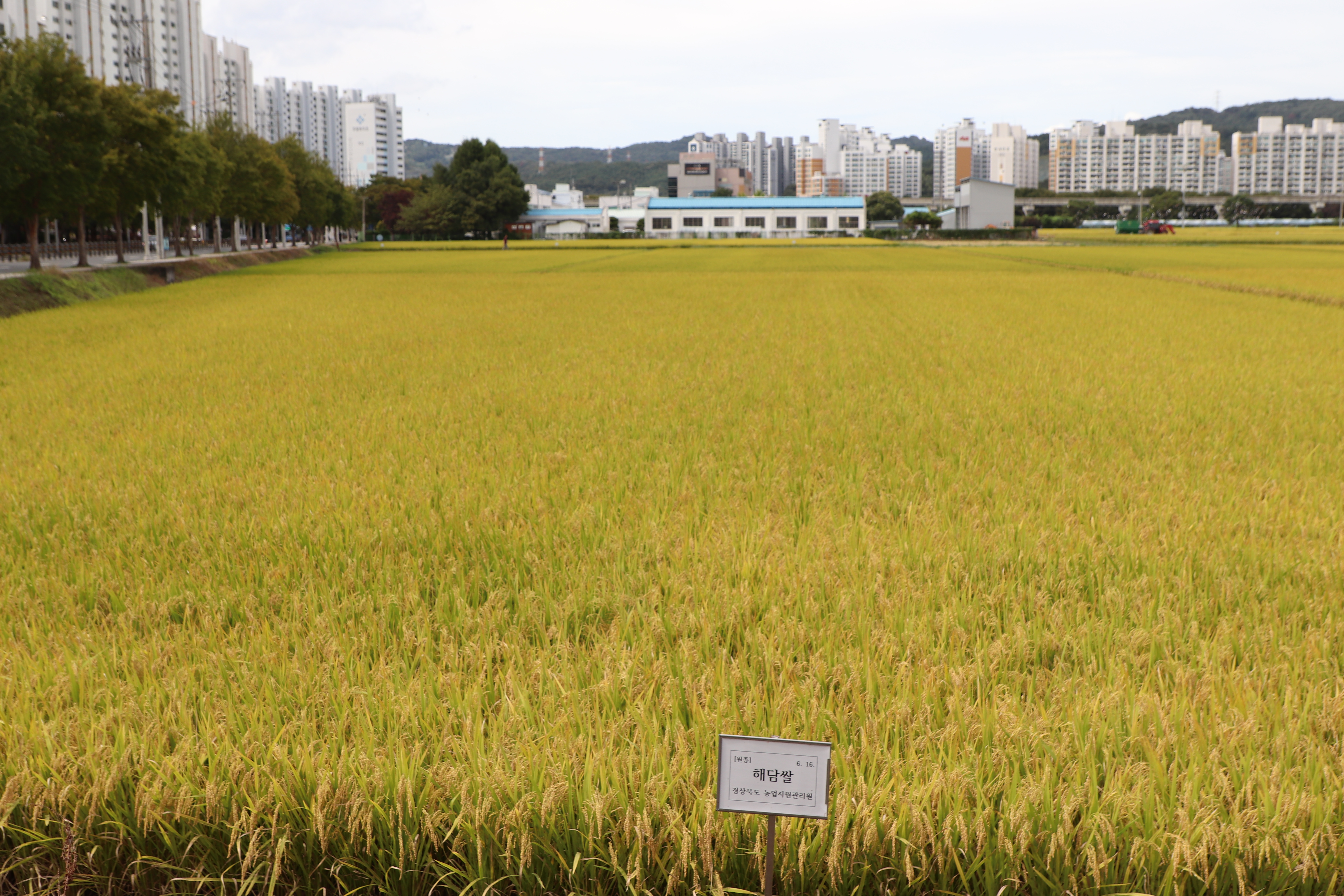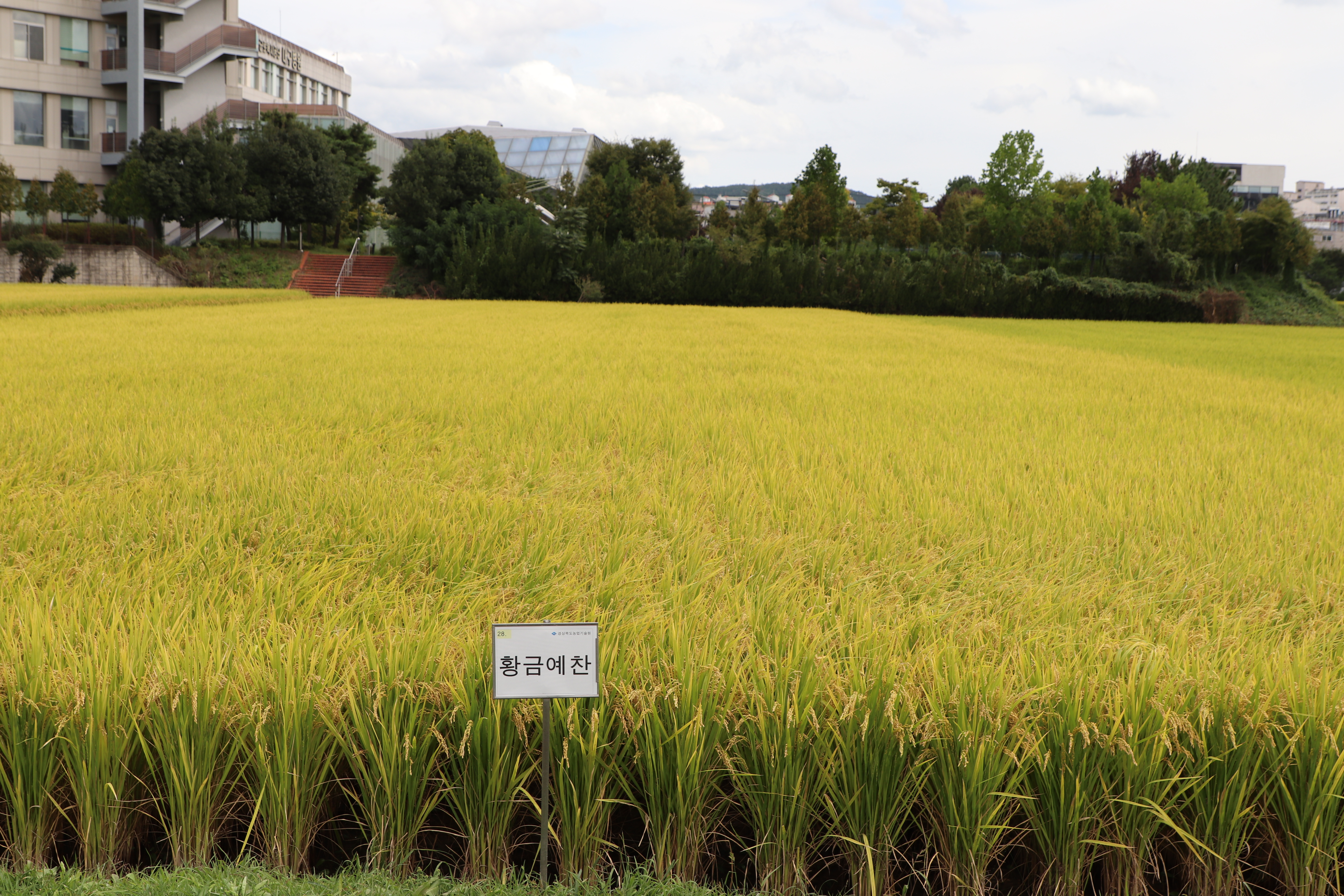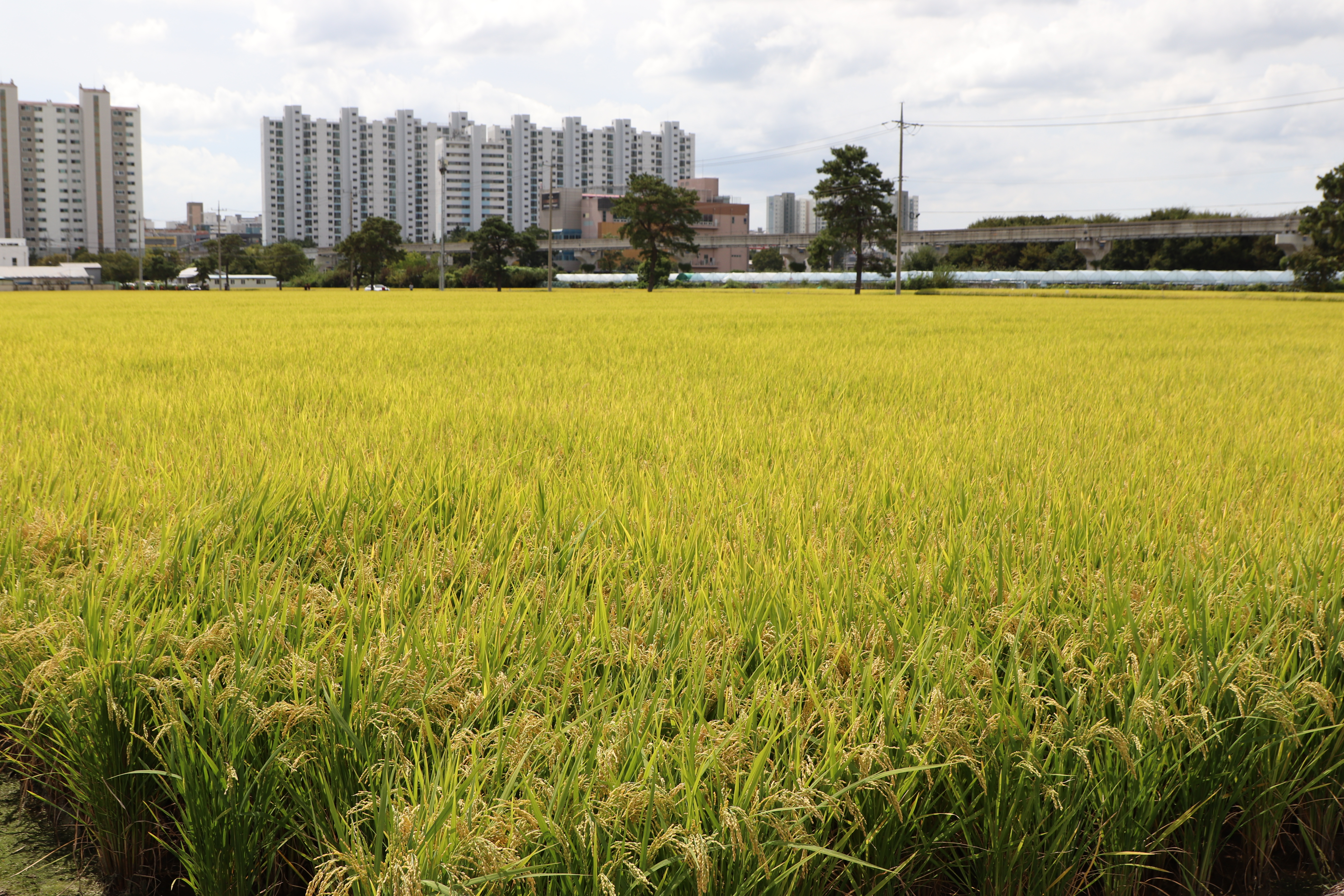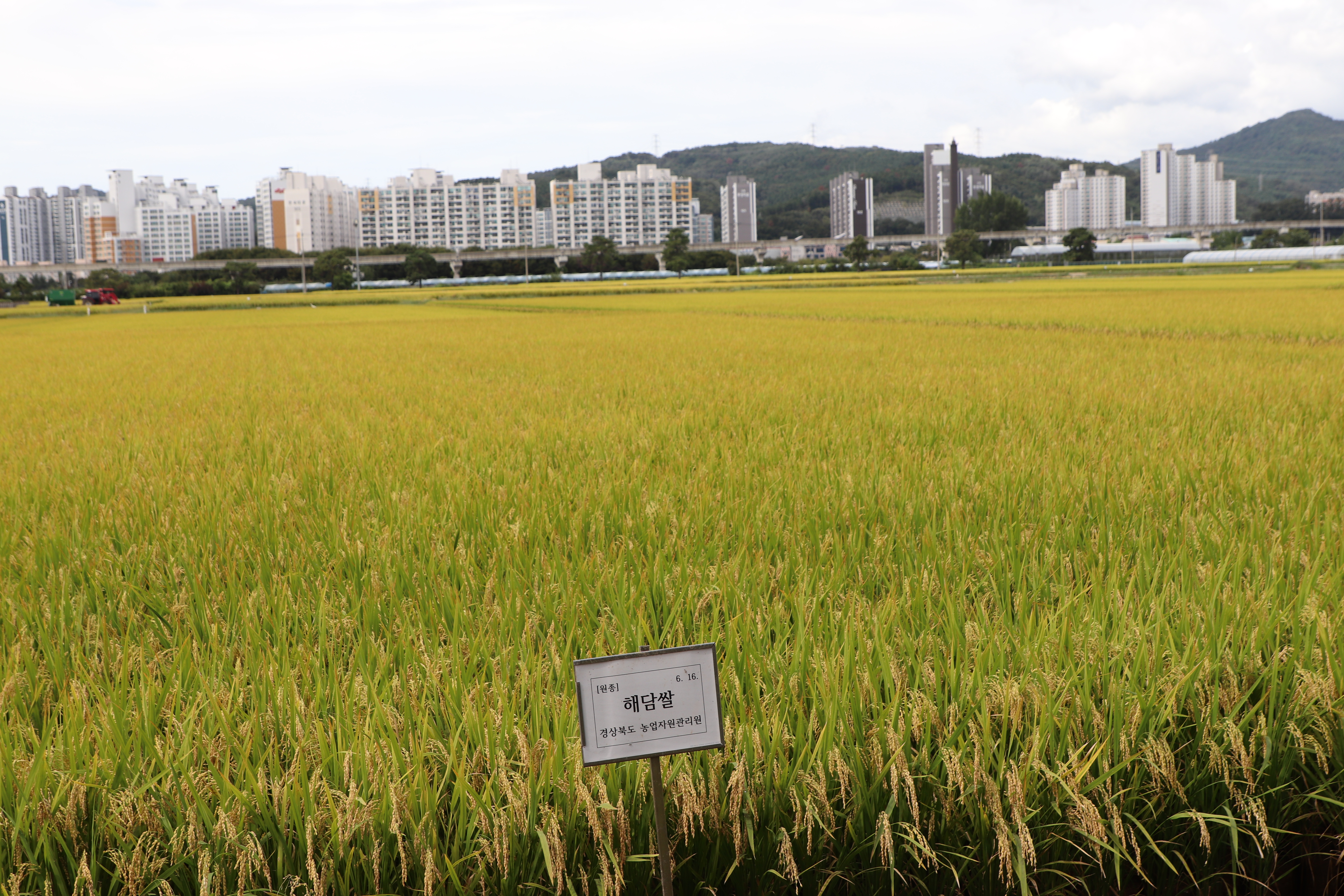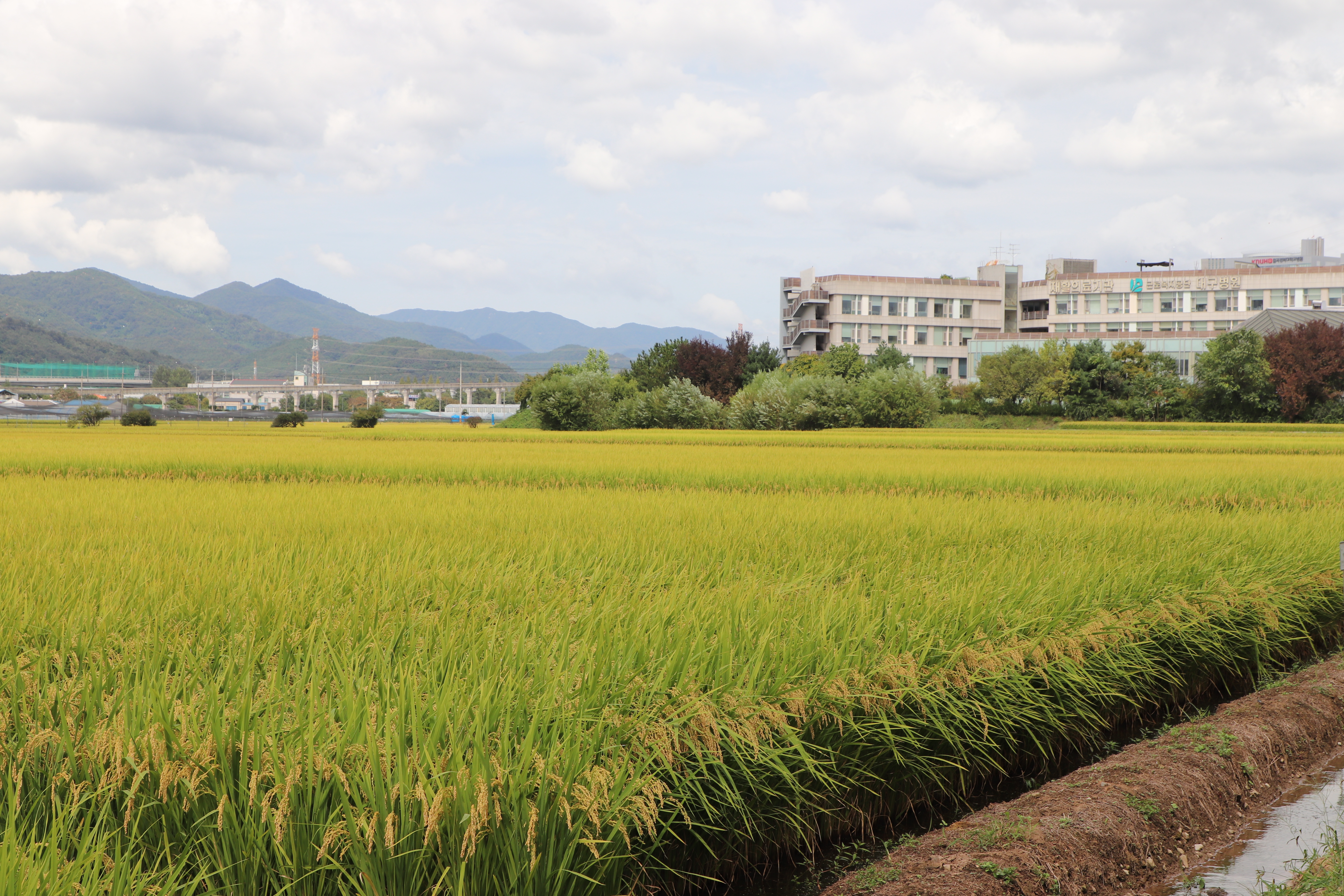 대구광역시 북구 학정동 경상북도 농업기술원 벼 종자(種子) 채종포(採種圃)에, 벼들이 황금색으로 곱게 물들고 있습니다.