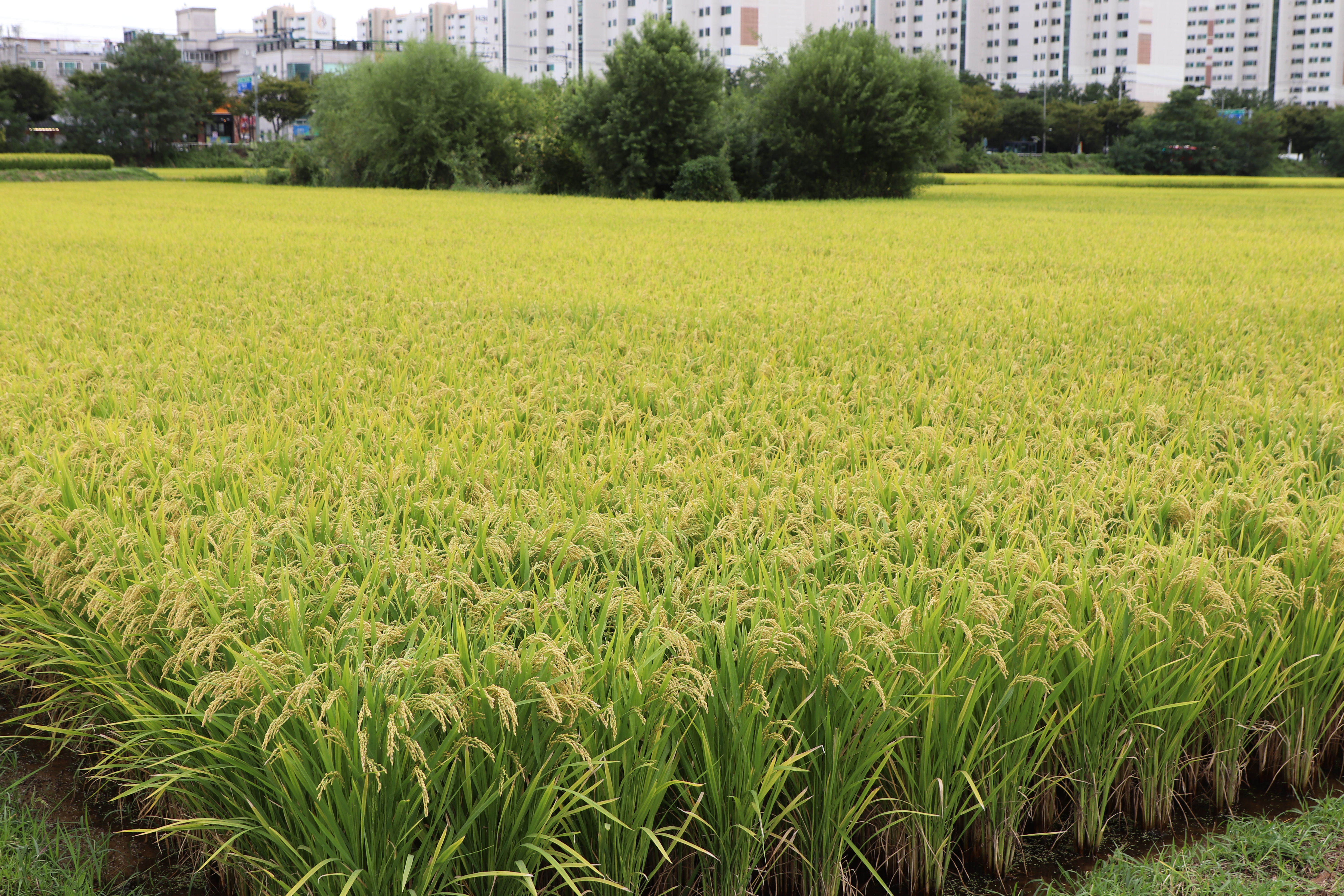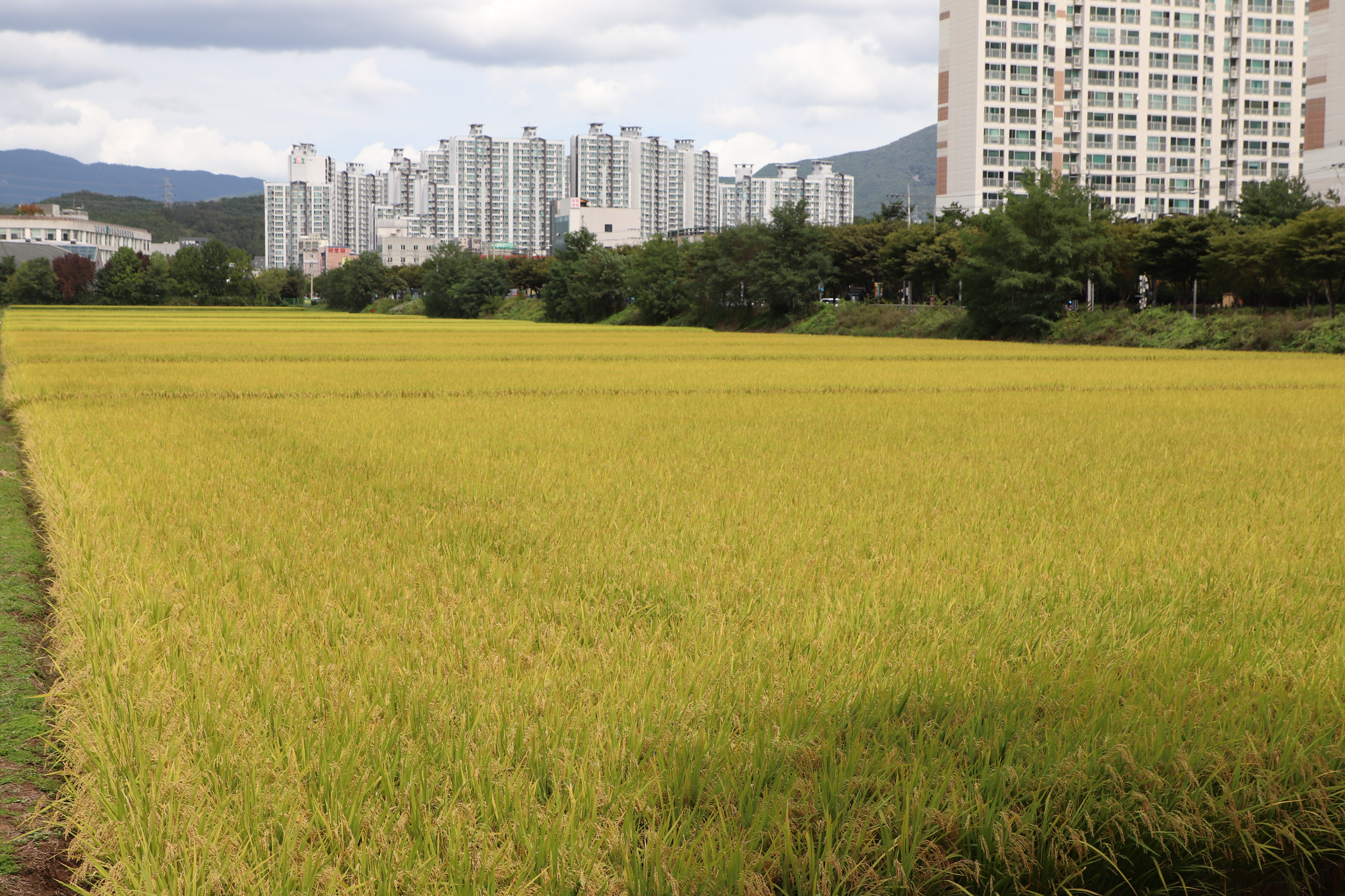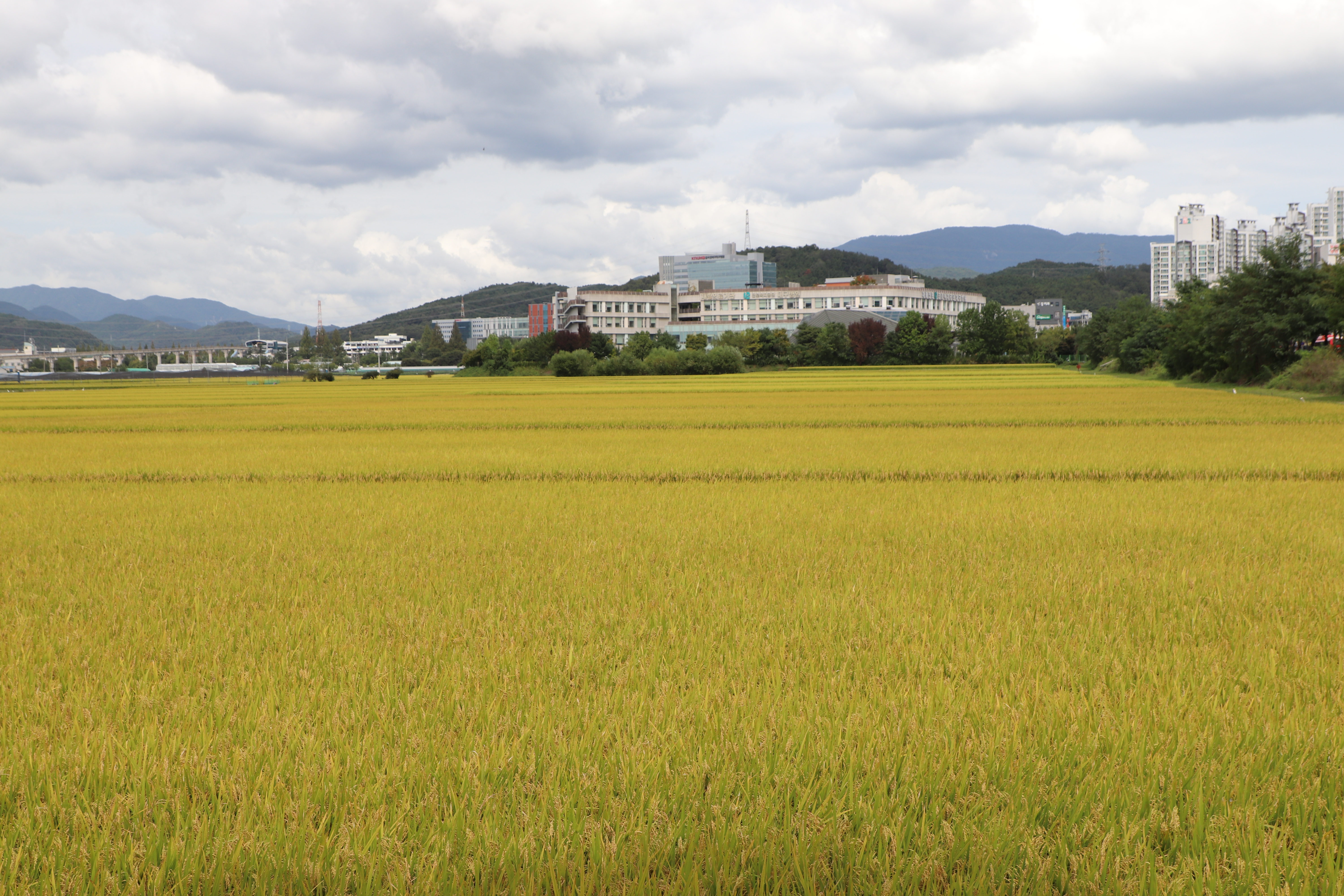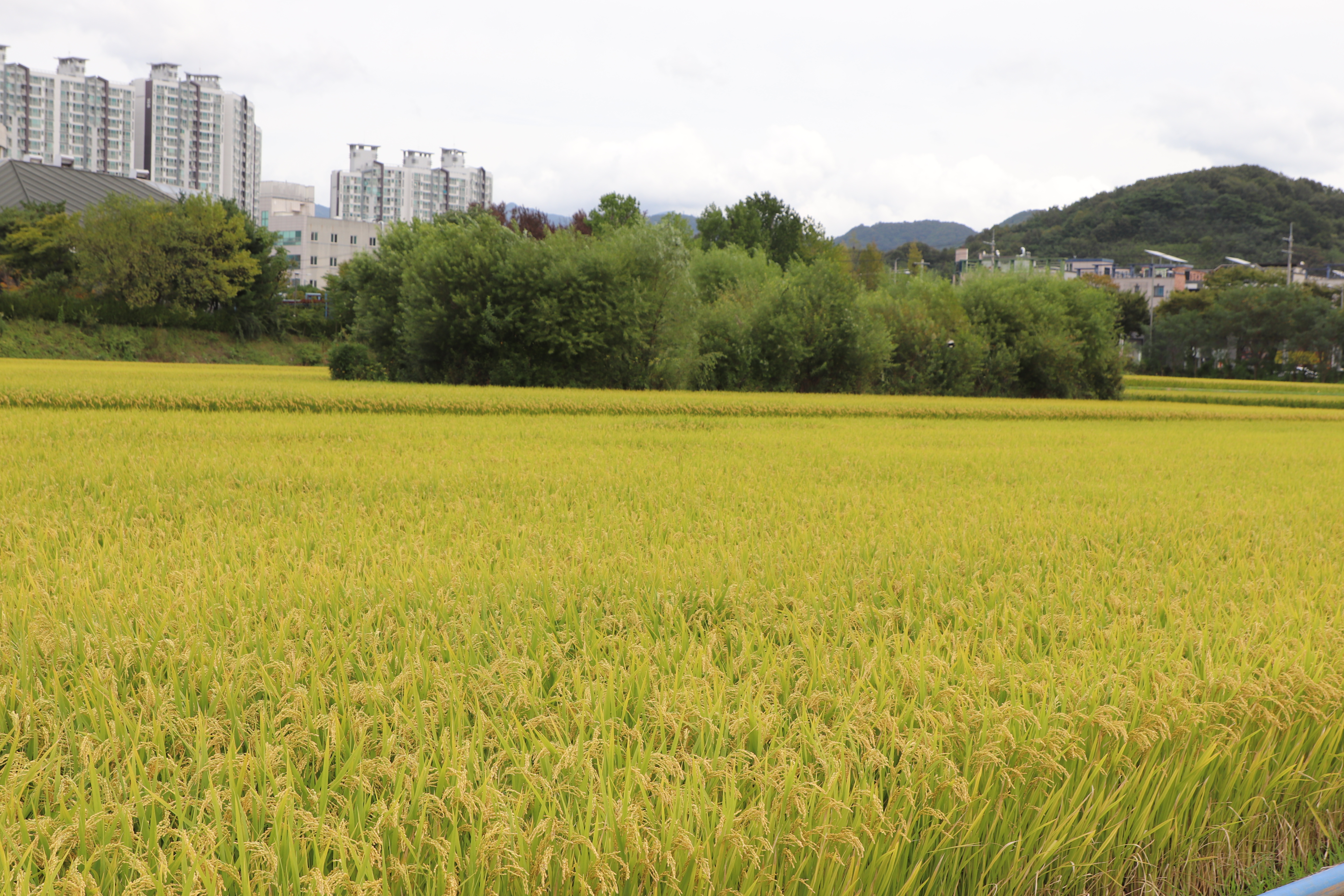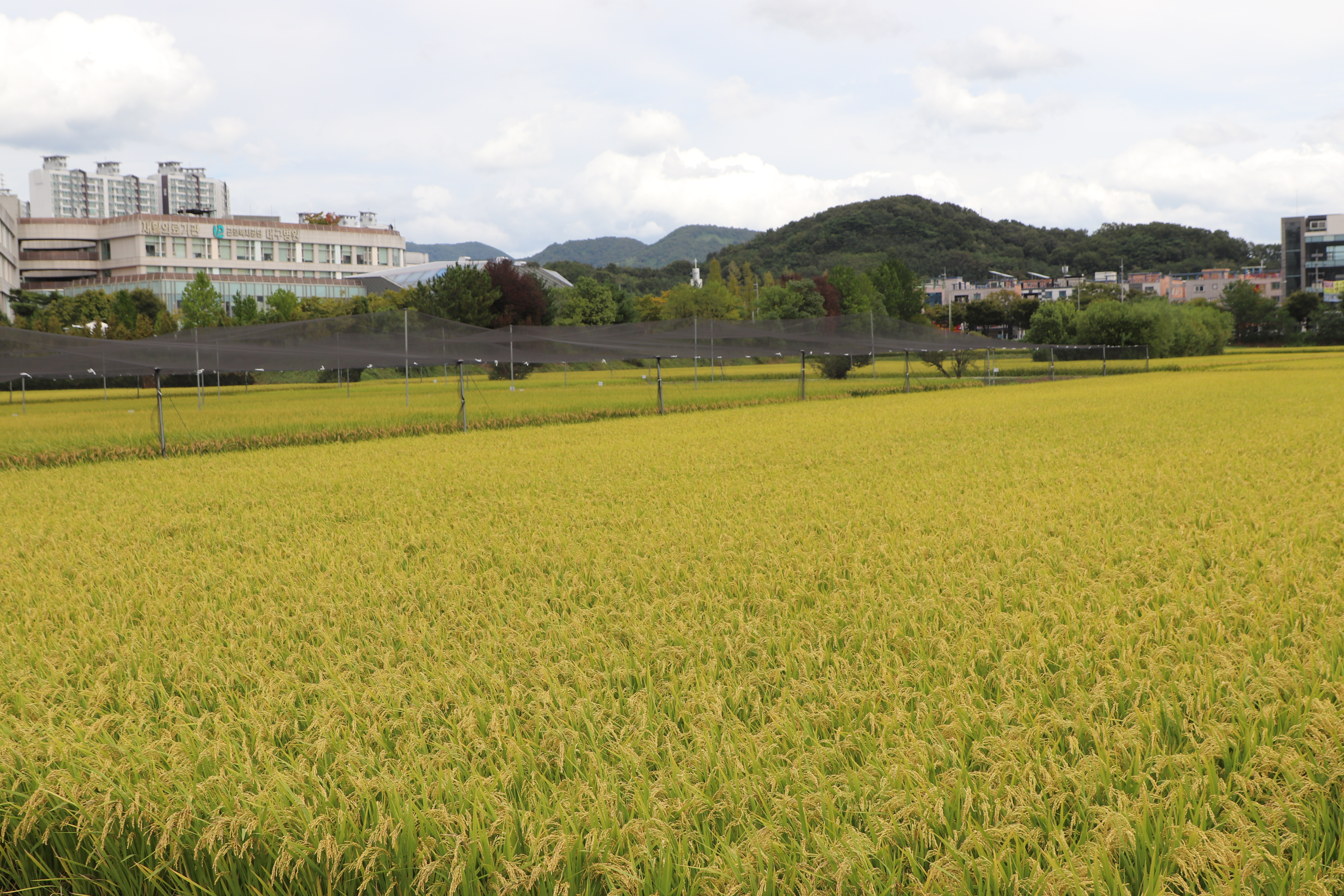 대구광역시 북구 학정동 경상북도 농업기술원 벼 종자(種子) 채종포(採種圃)에, 벼들이 황금색으로 곱게 물들고 있습니다.