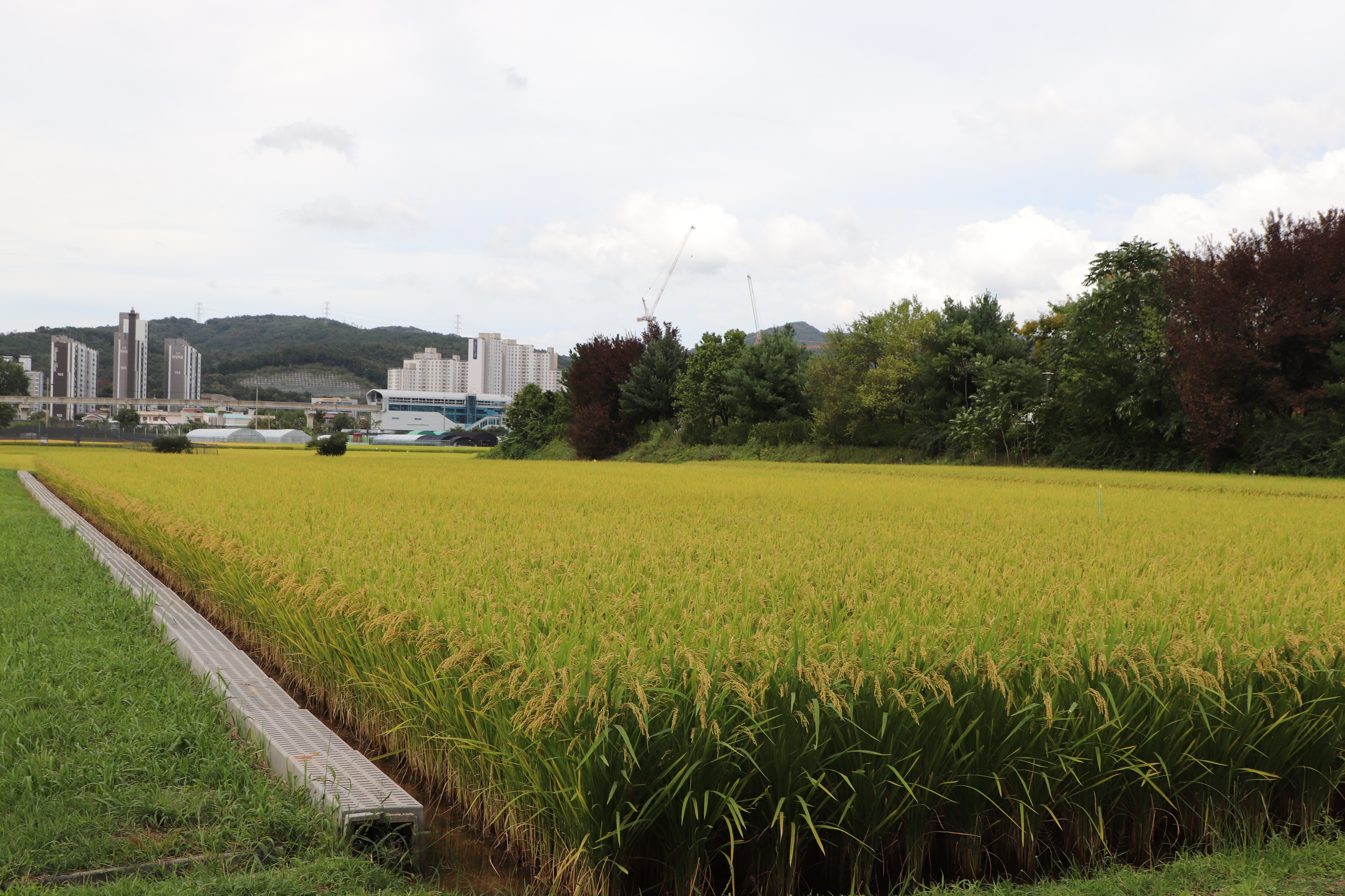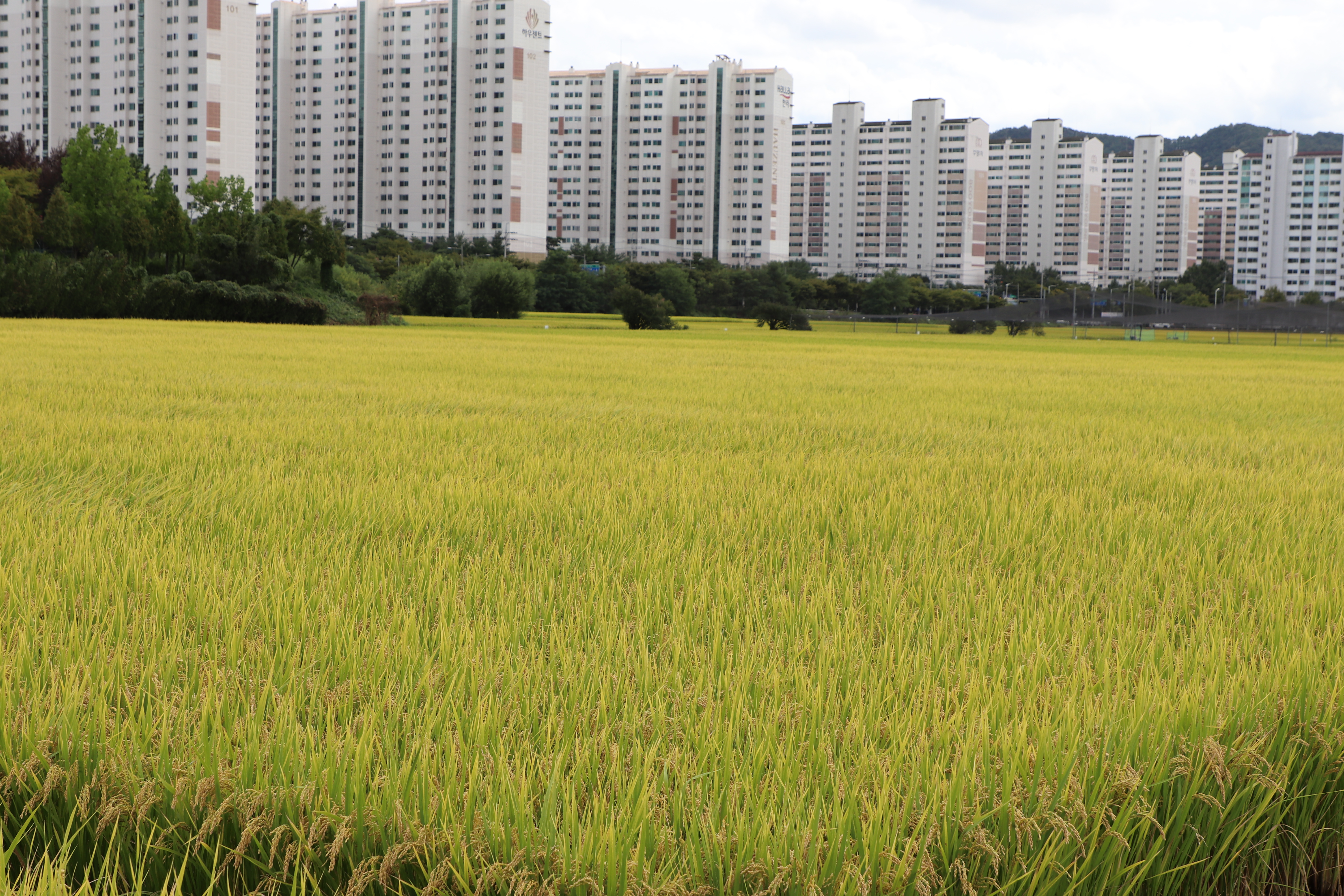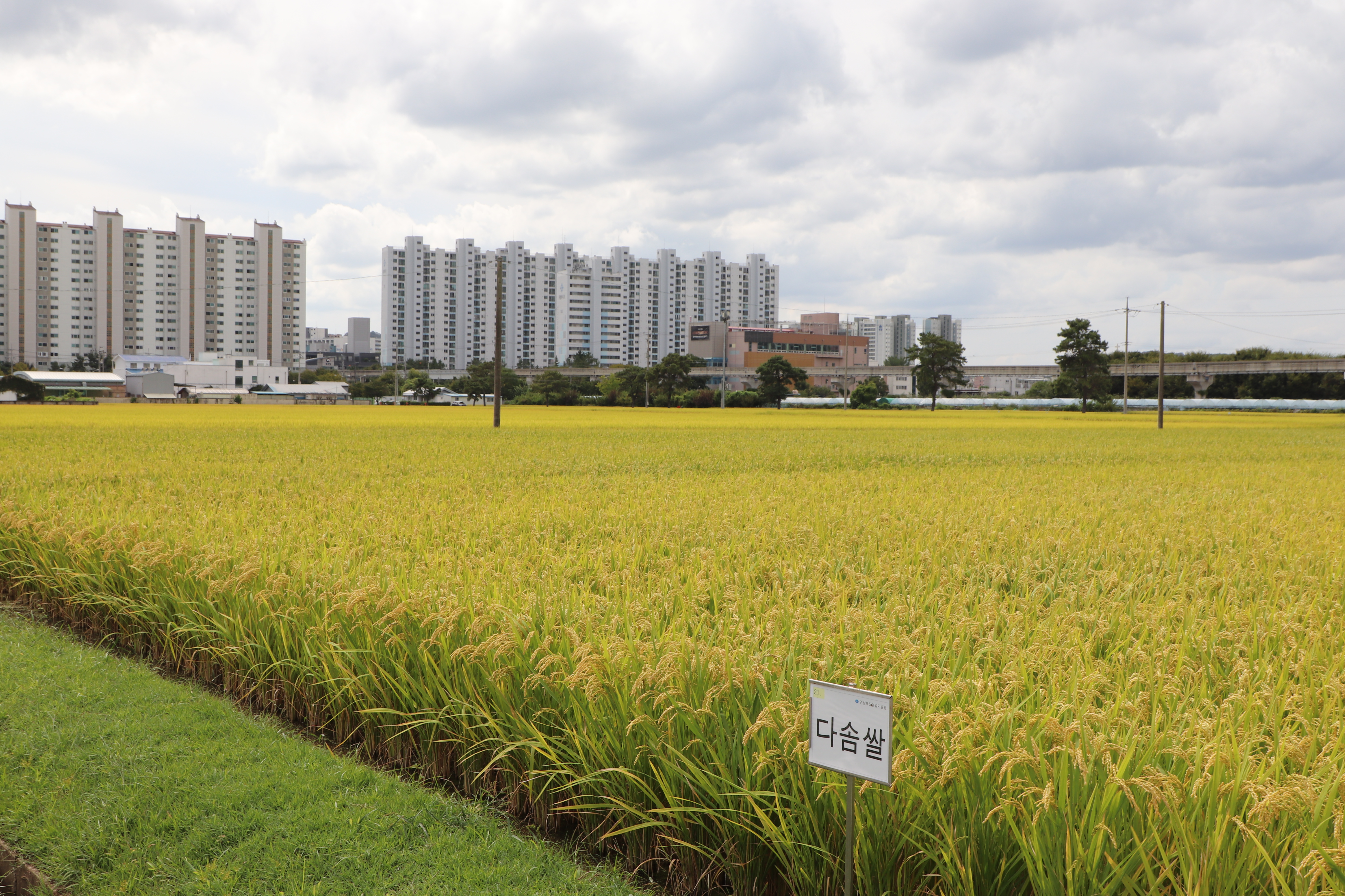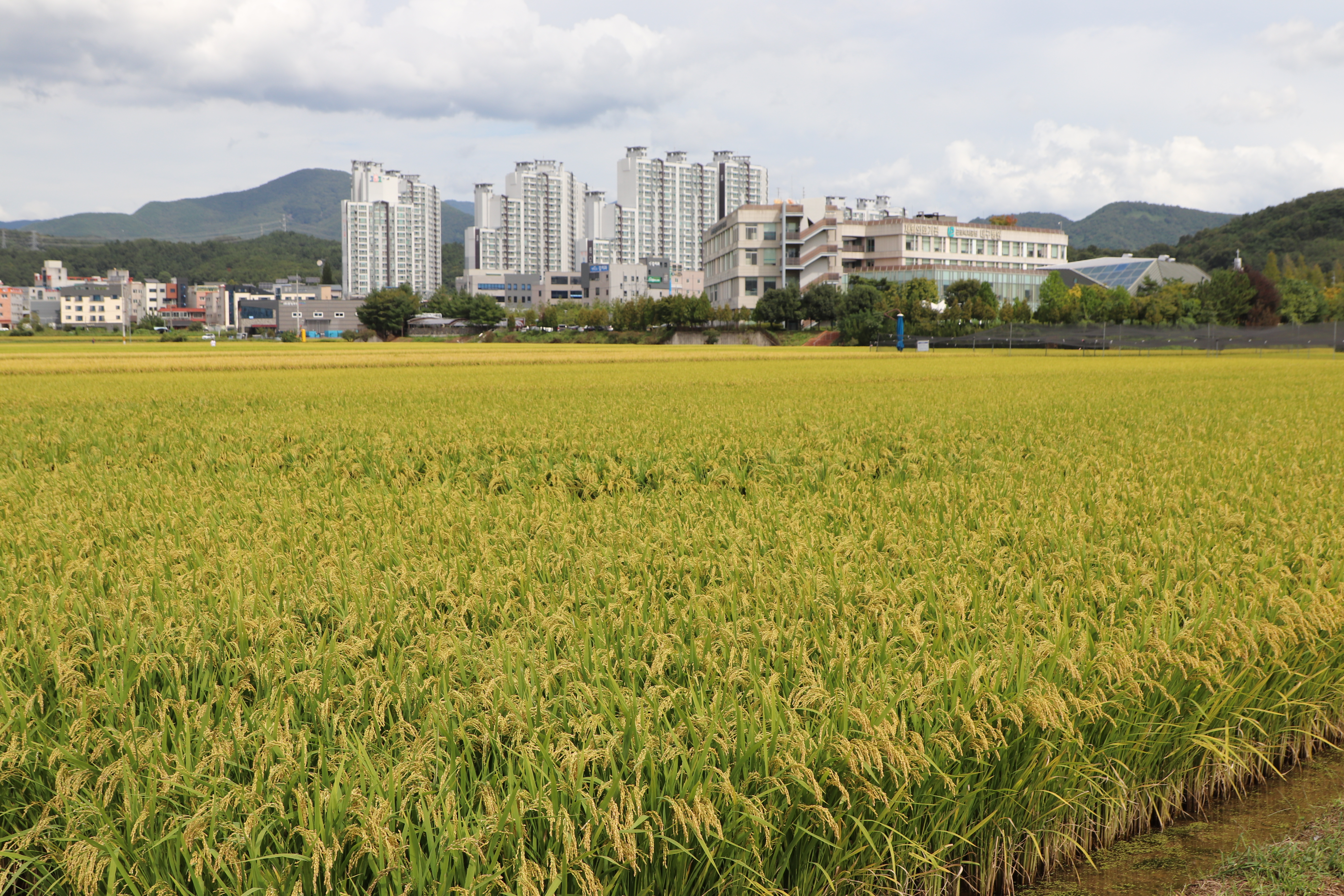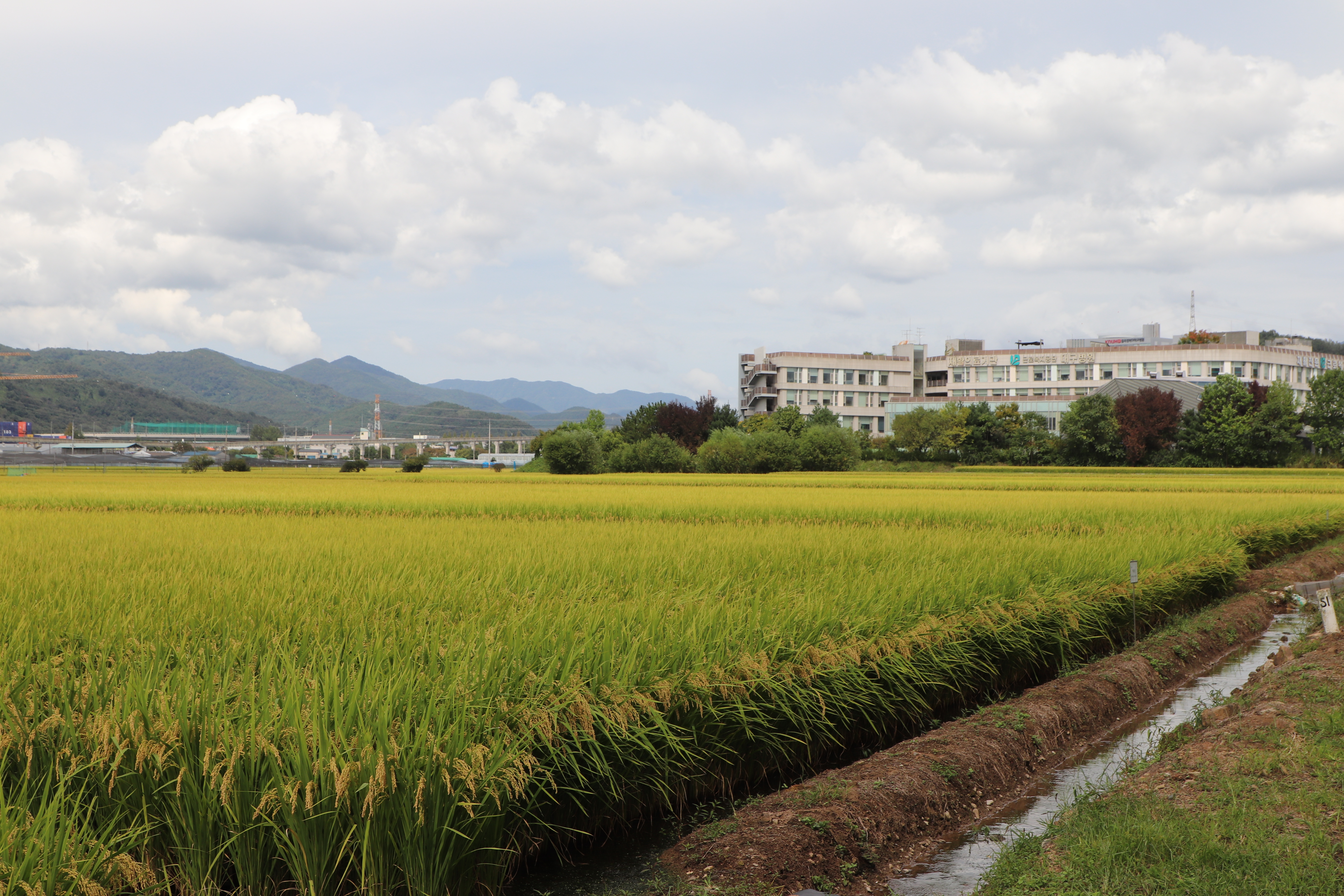 대구광역시 북구 학정동 경상북도 농업기술원 벼 종자(種子) 채종포(採種圃)에, 벼들이 황금색으로 곱게 물들고 있습니다.