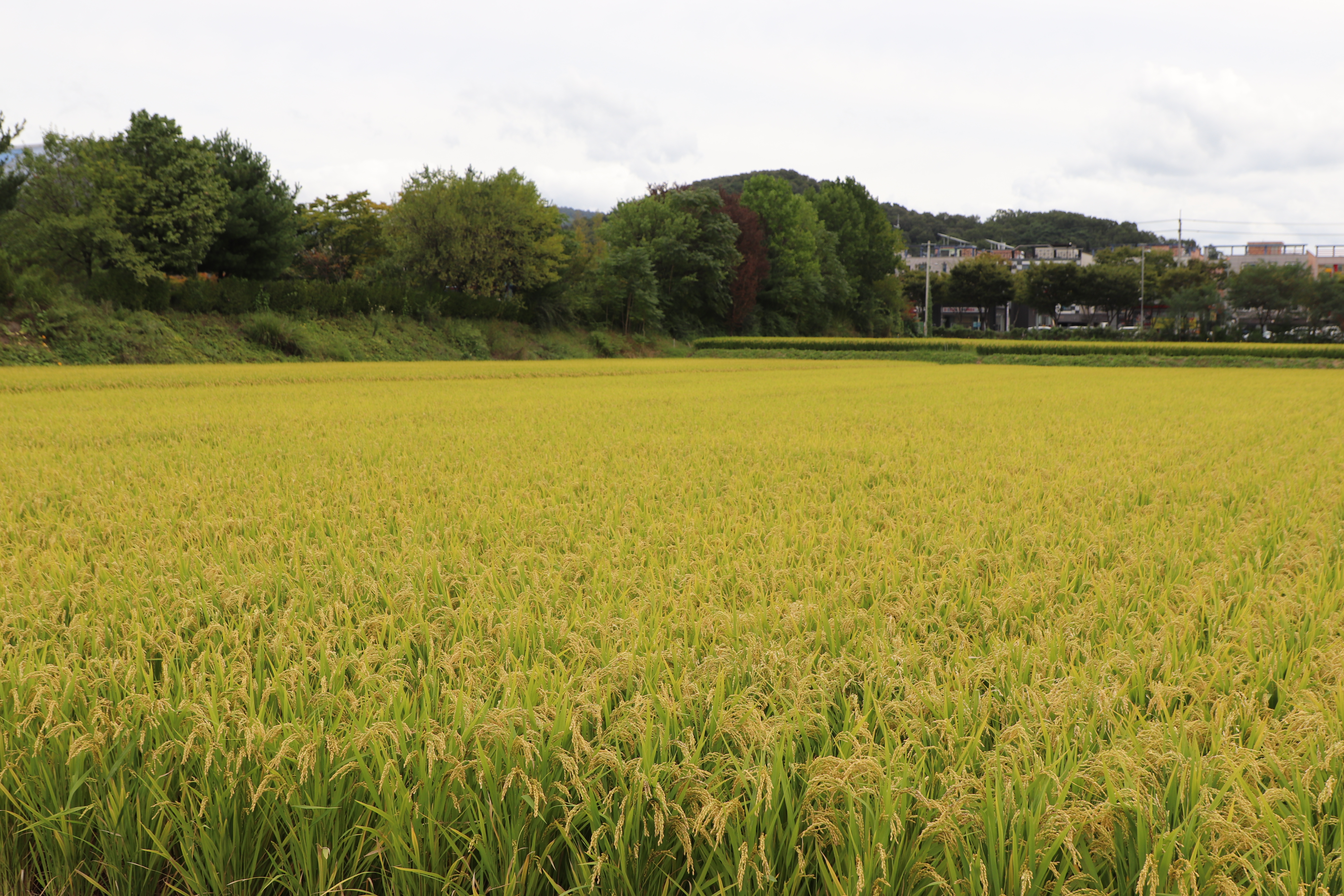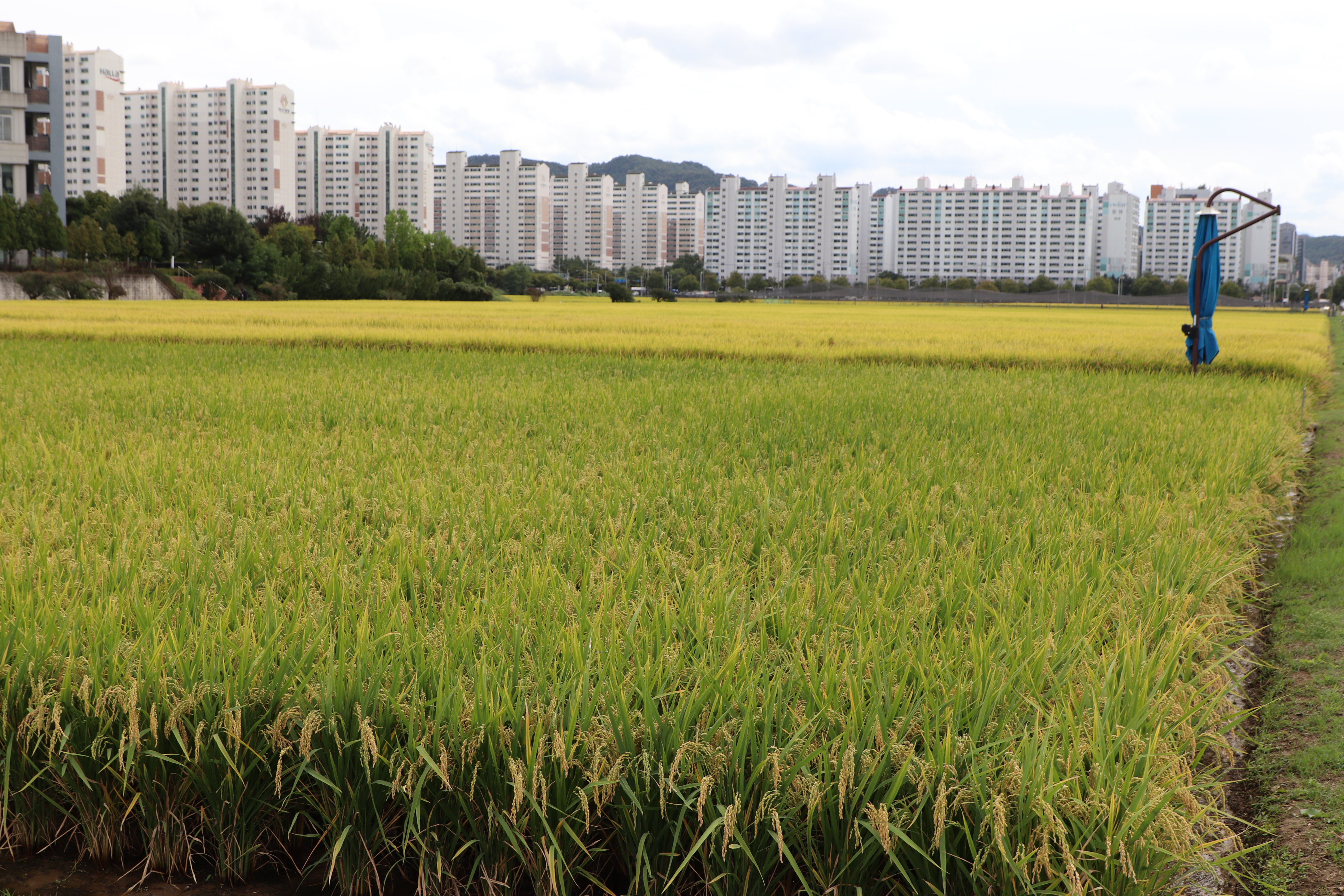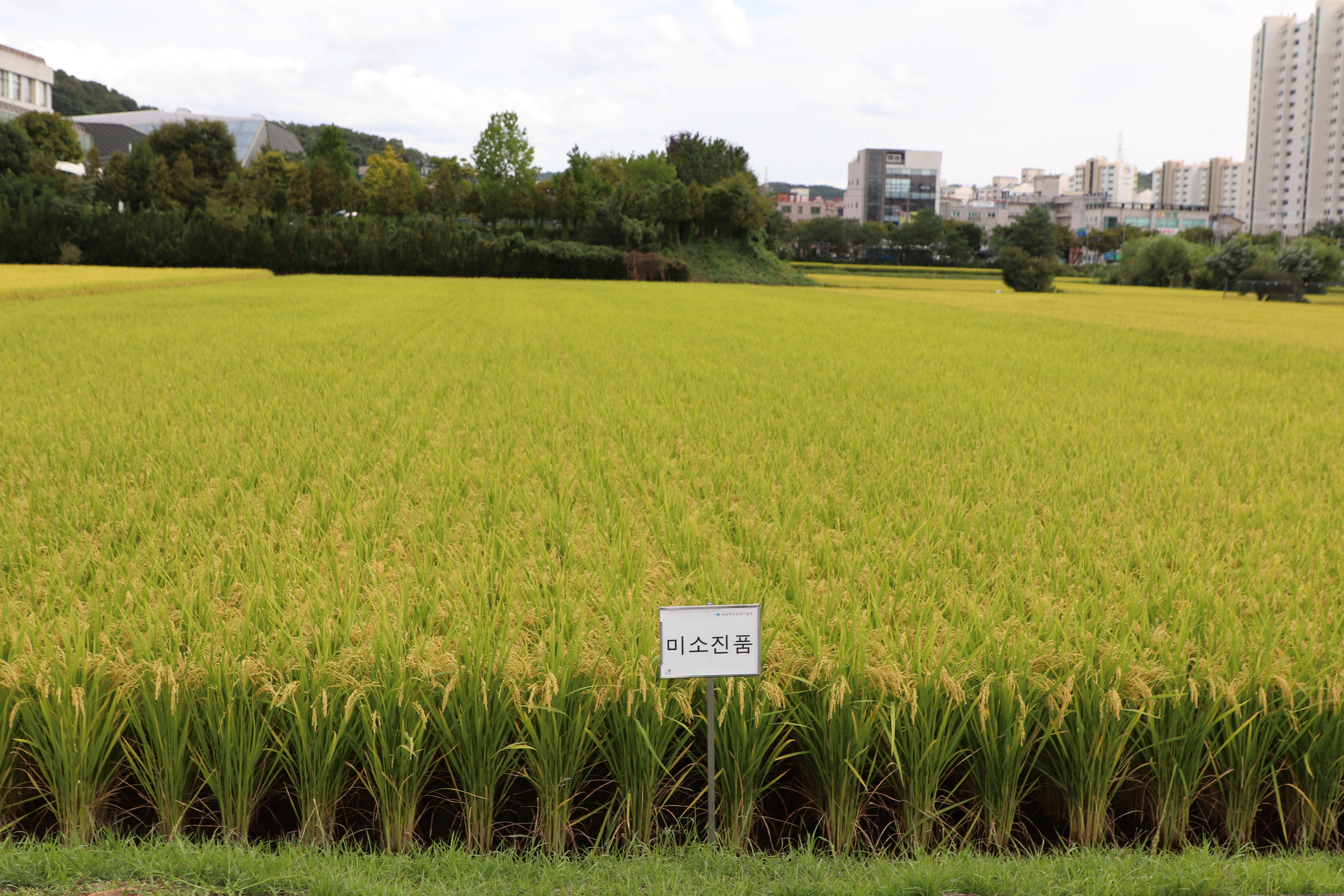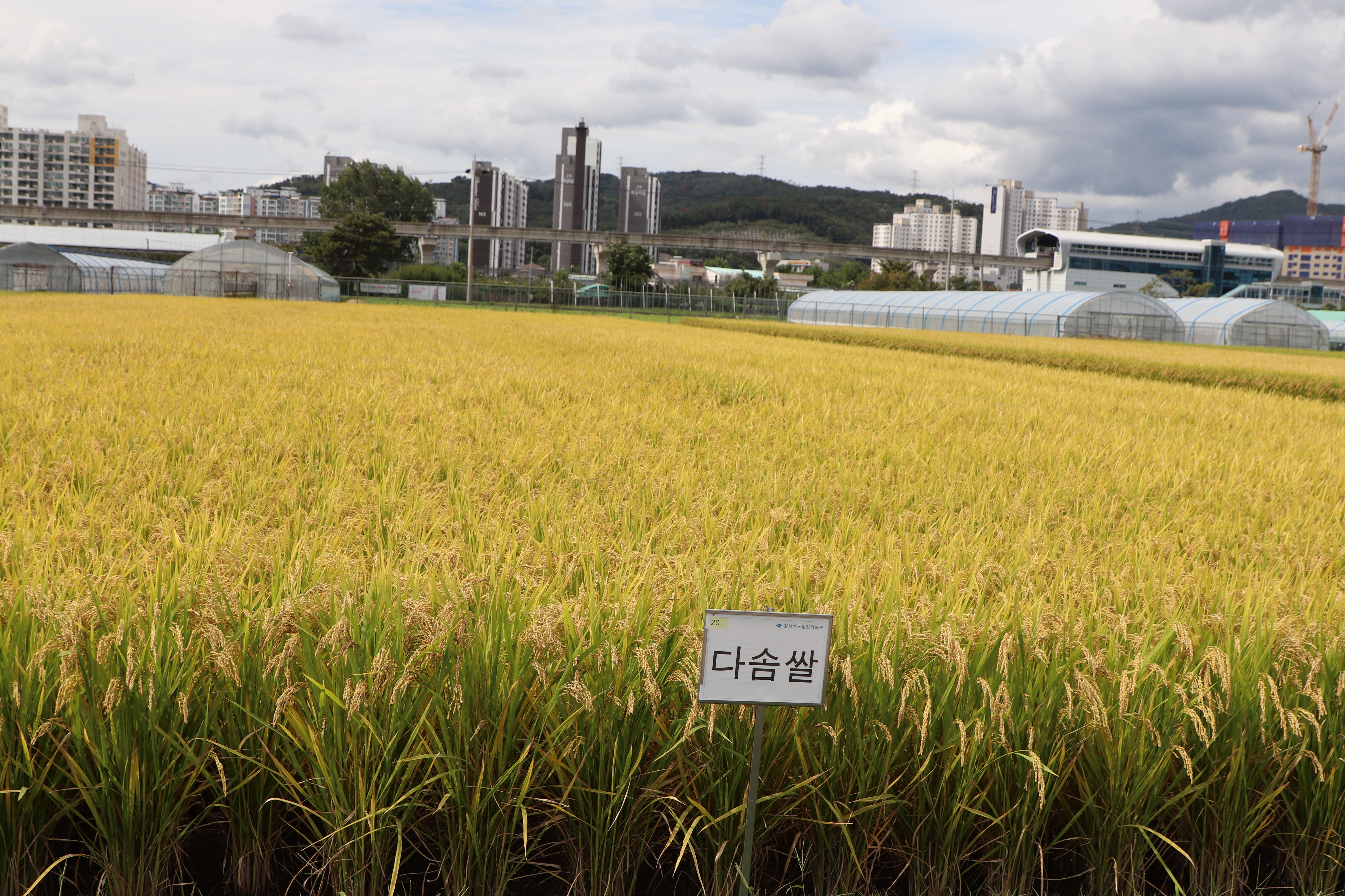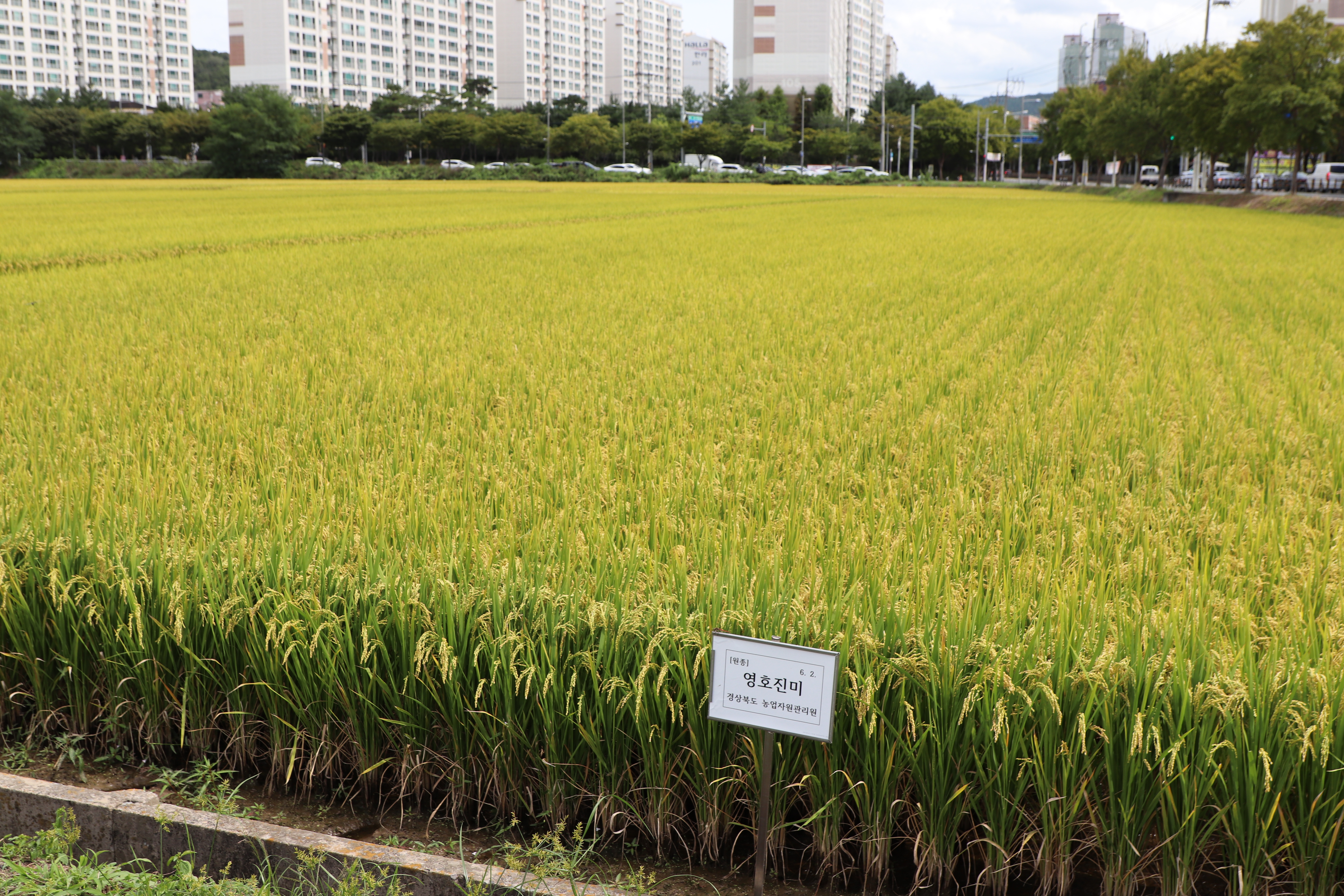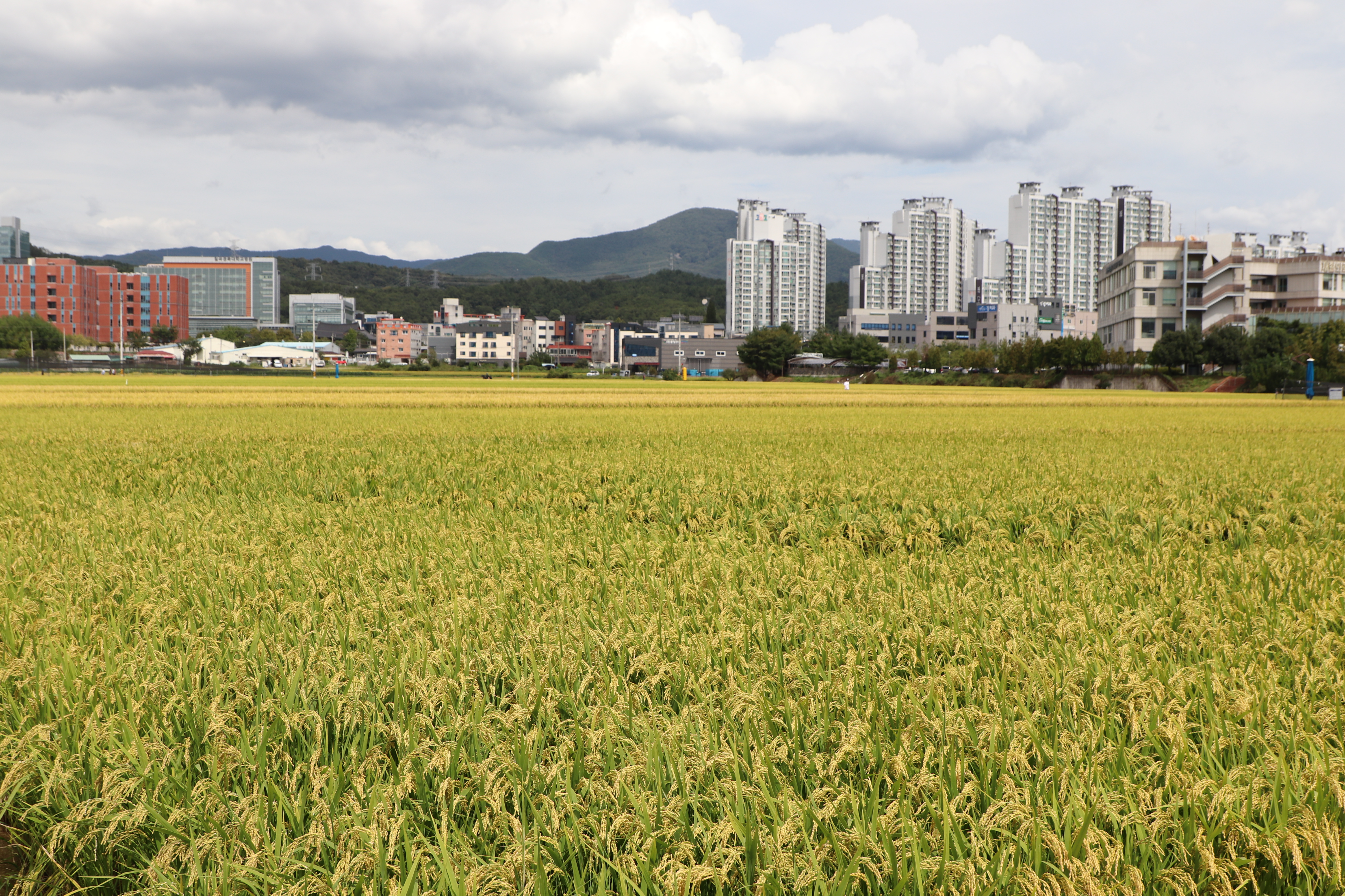대구광역시 북구 학정동 경상북도 농업기술원 벼 종자(種子) 채종포(採種圃)에, 벼들이 황금색으로 곱게 물들고 있습니다.