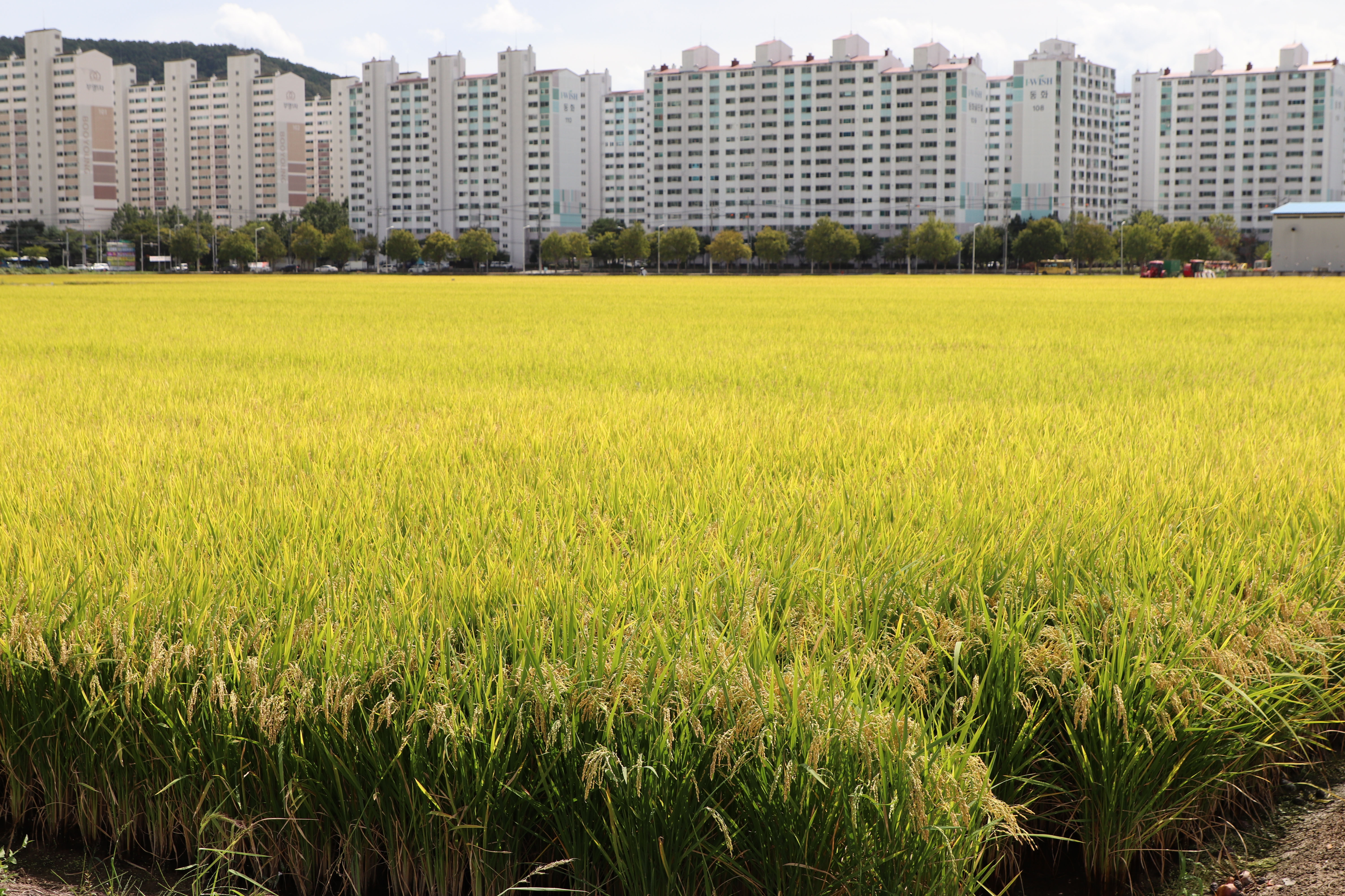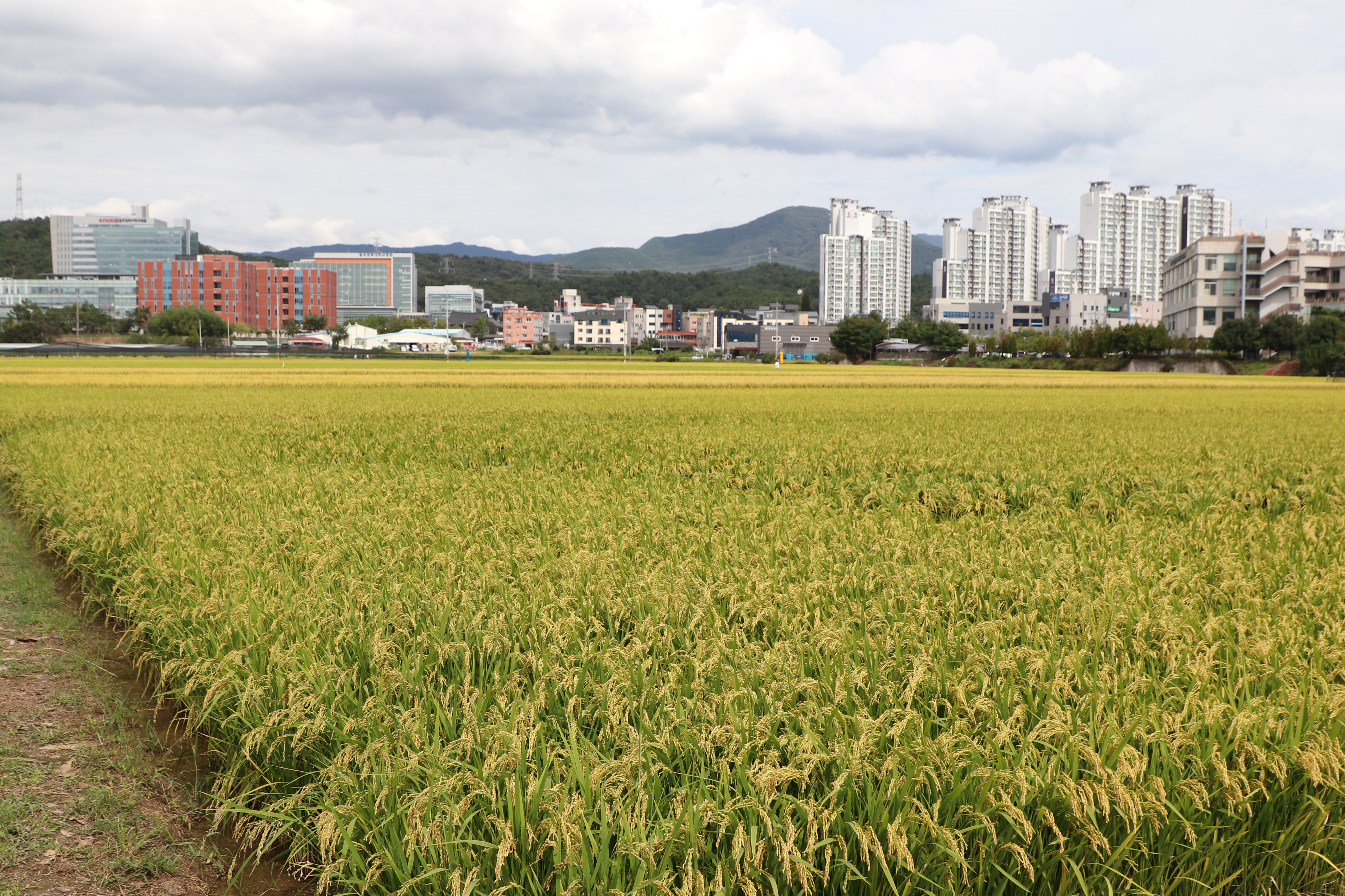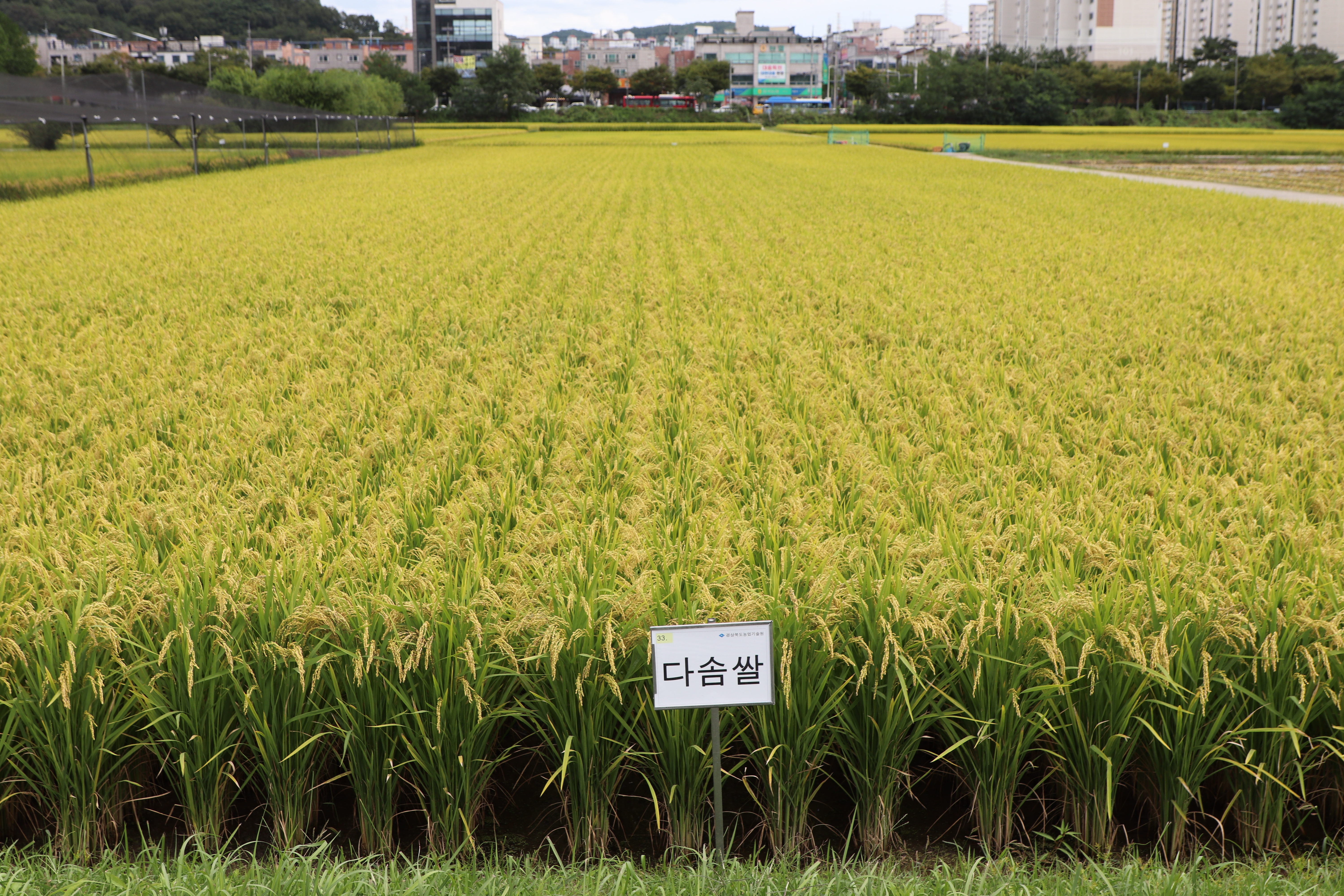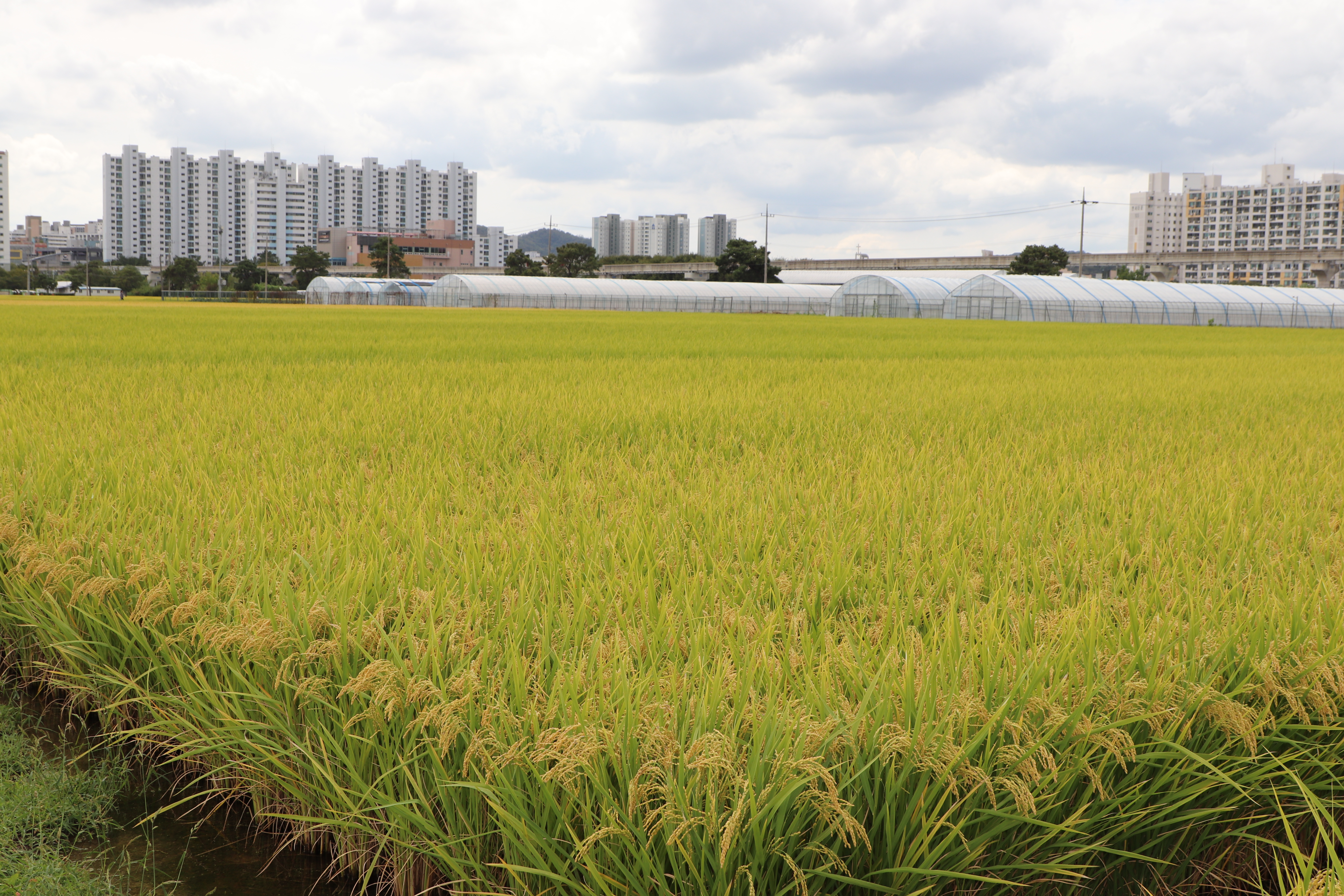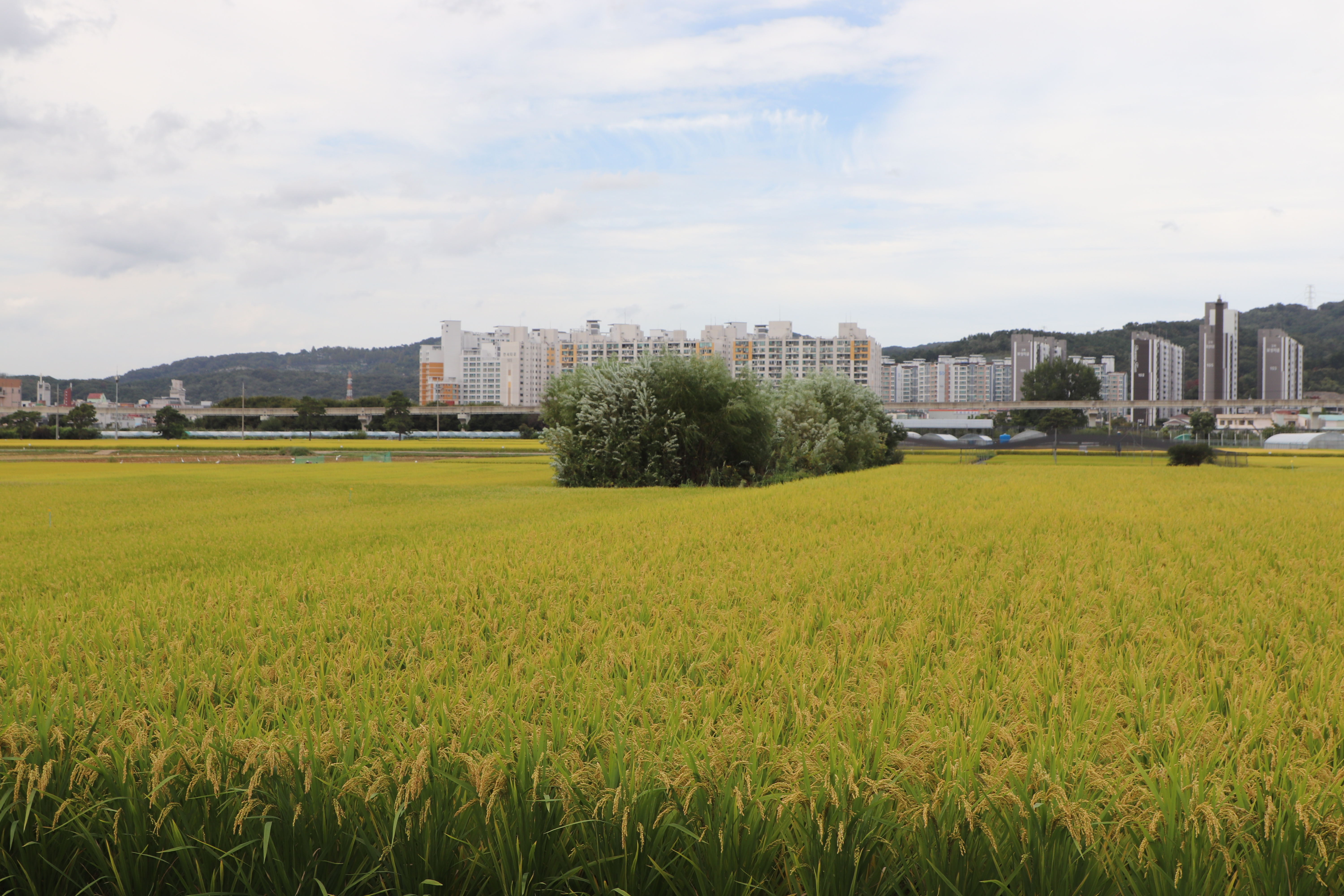 대구광역시 북구 학정동 경상북도 농업기술원 벼 종자(種子) 채종포(採種圃)에, 벼들이 황금색으로 곱게 물들고 있습니다.