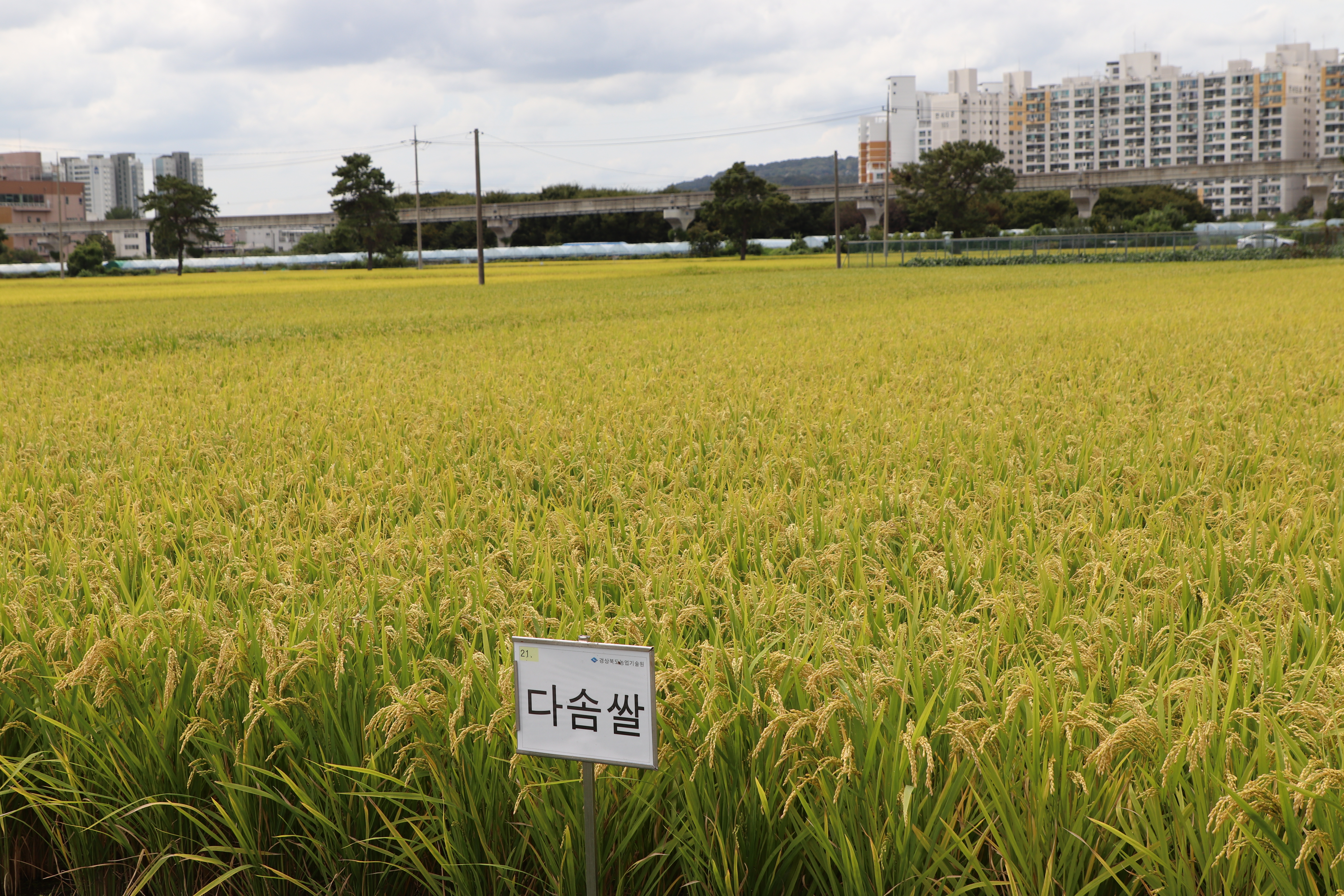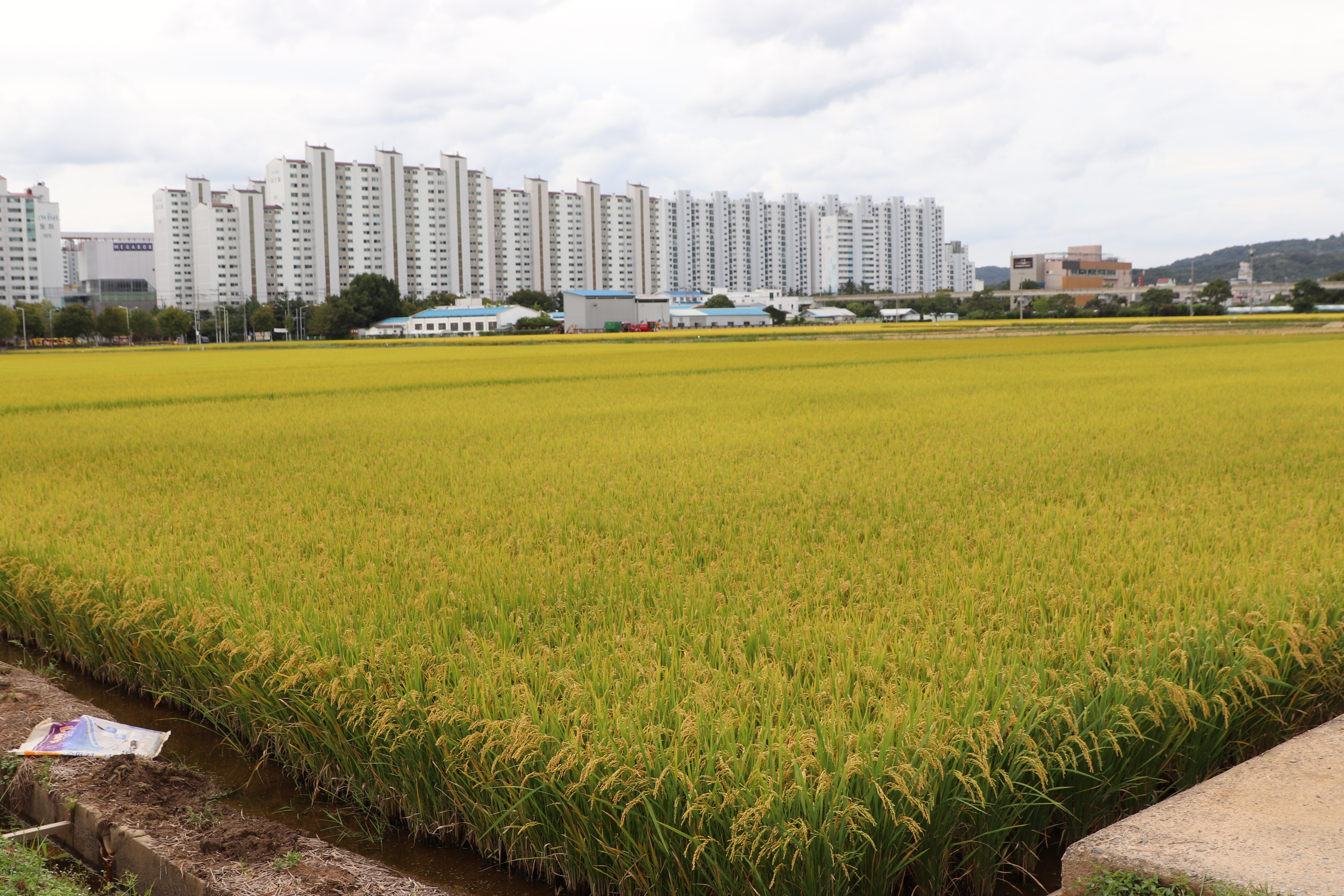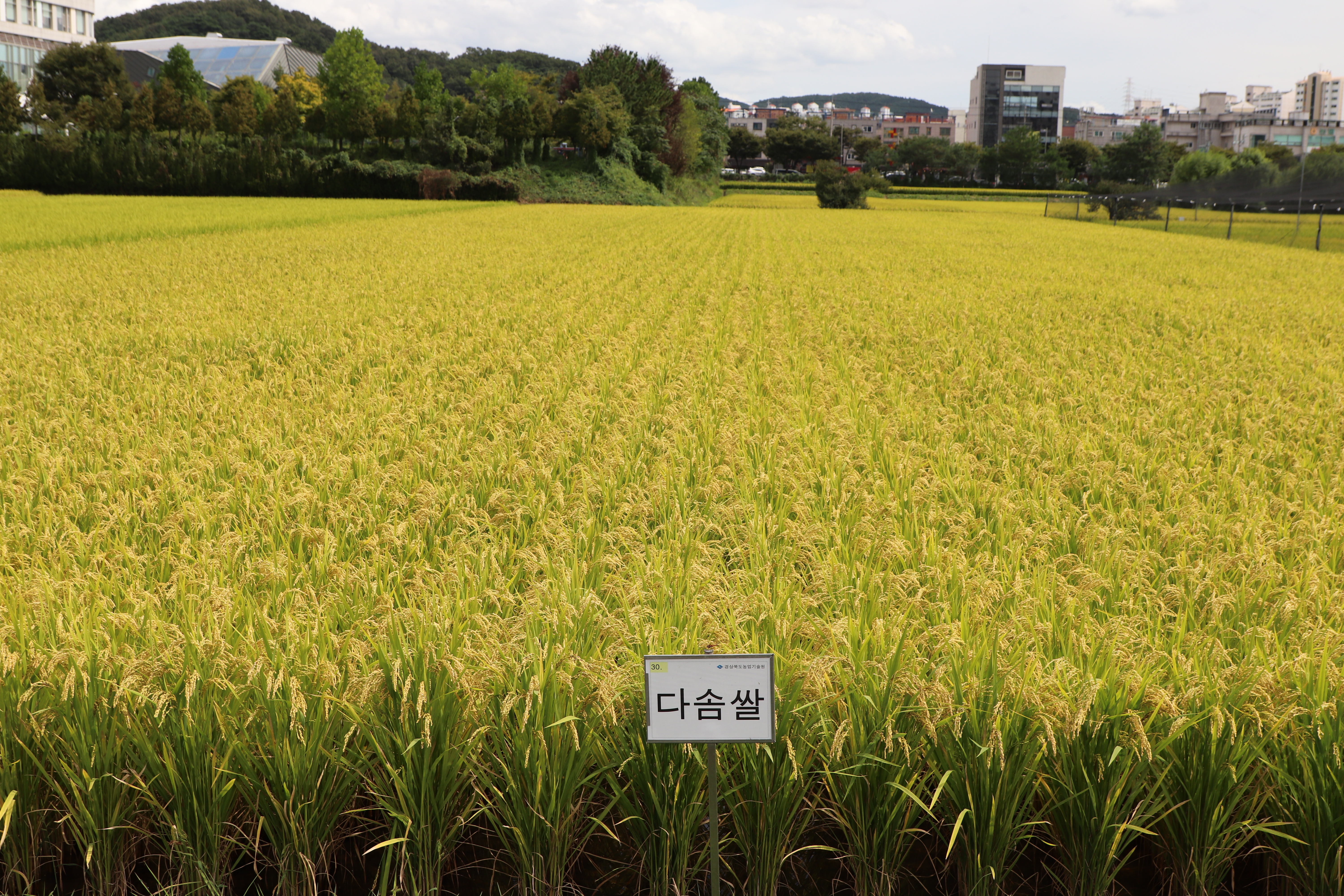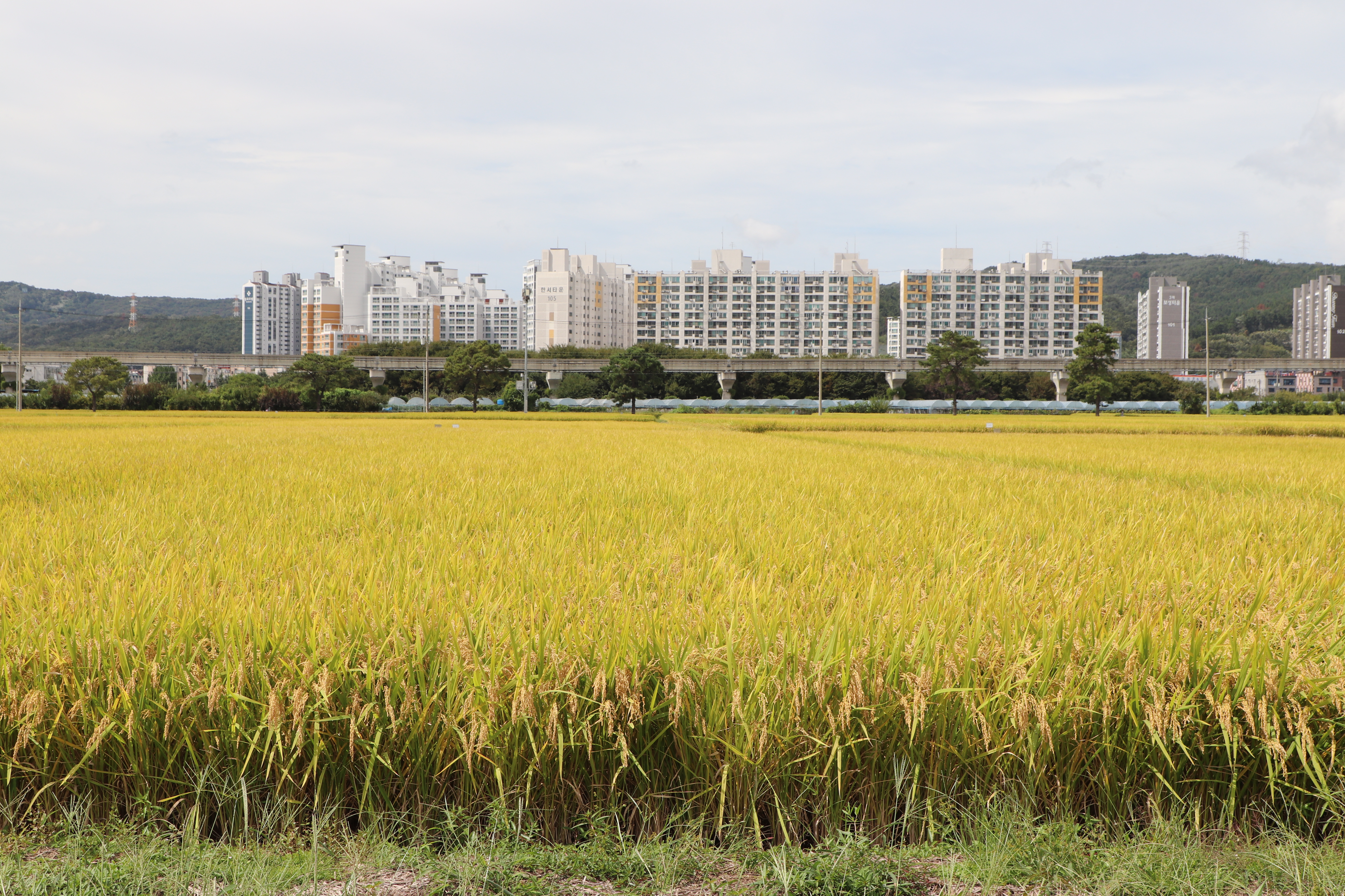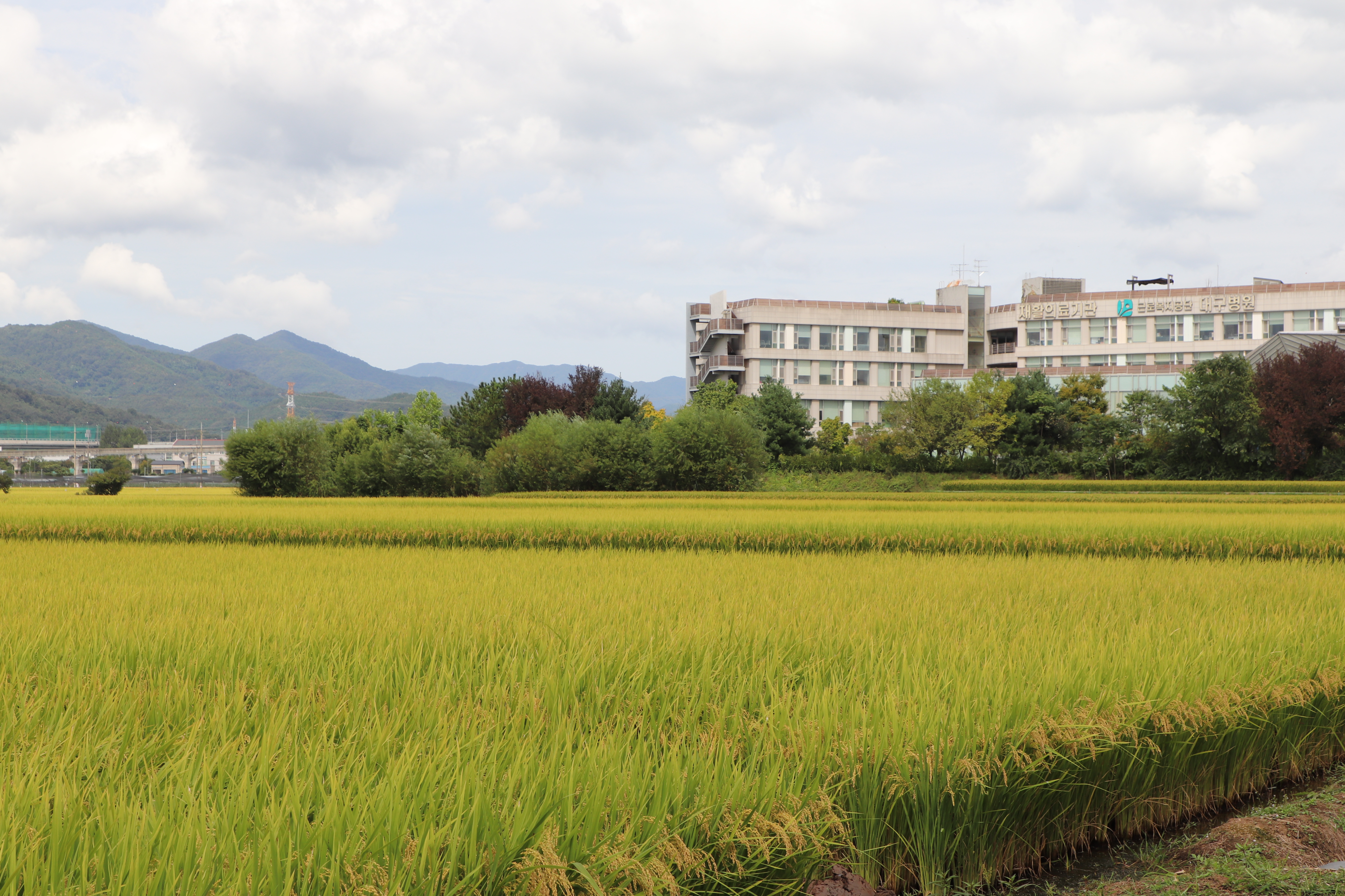 대구광역시 북구 학정동 경상북도 농업기술원 벼 종자(種子) 채종포(採種圃)에, 벼들이 황금색으로 곱게 물들고 있습니다.