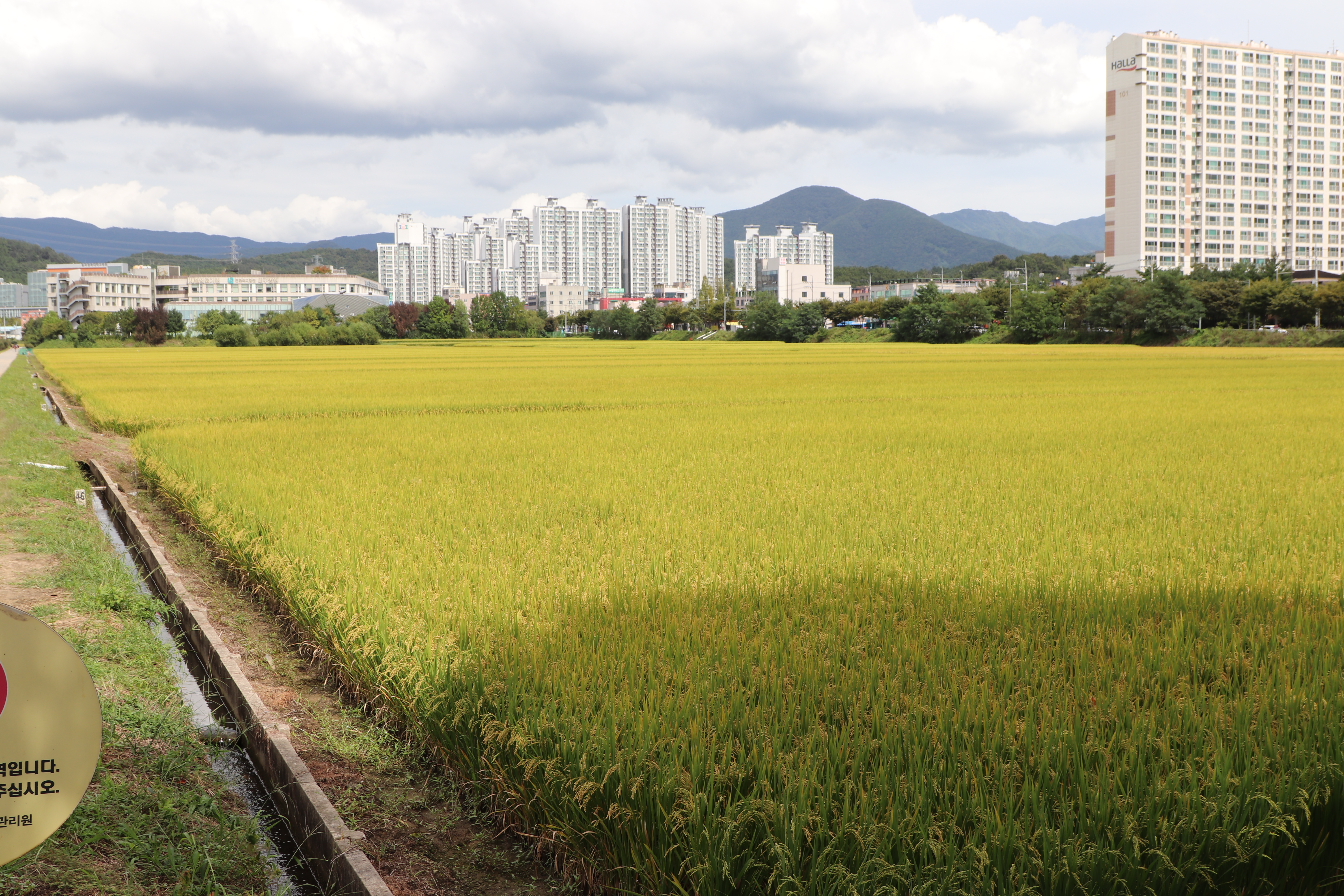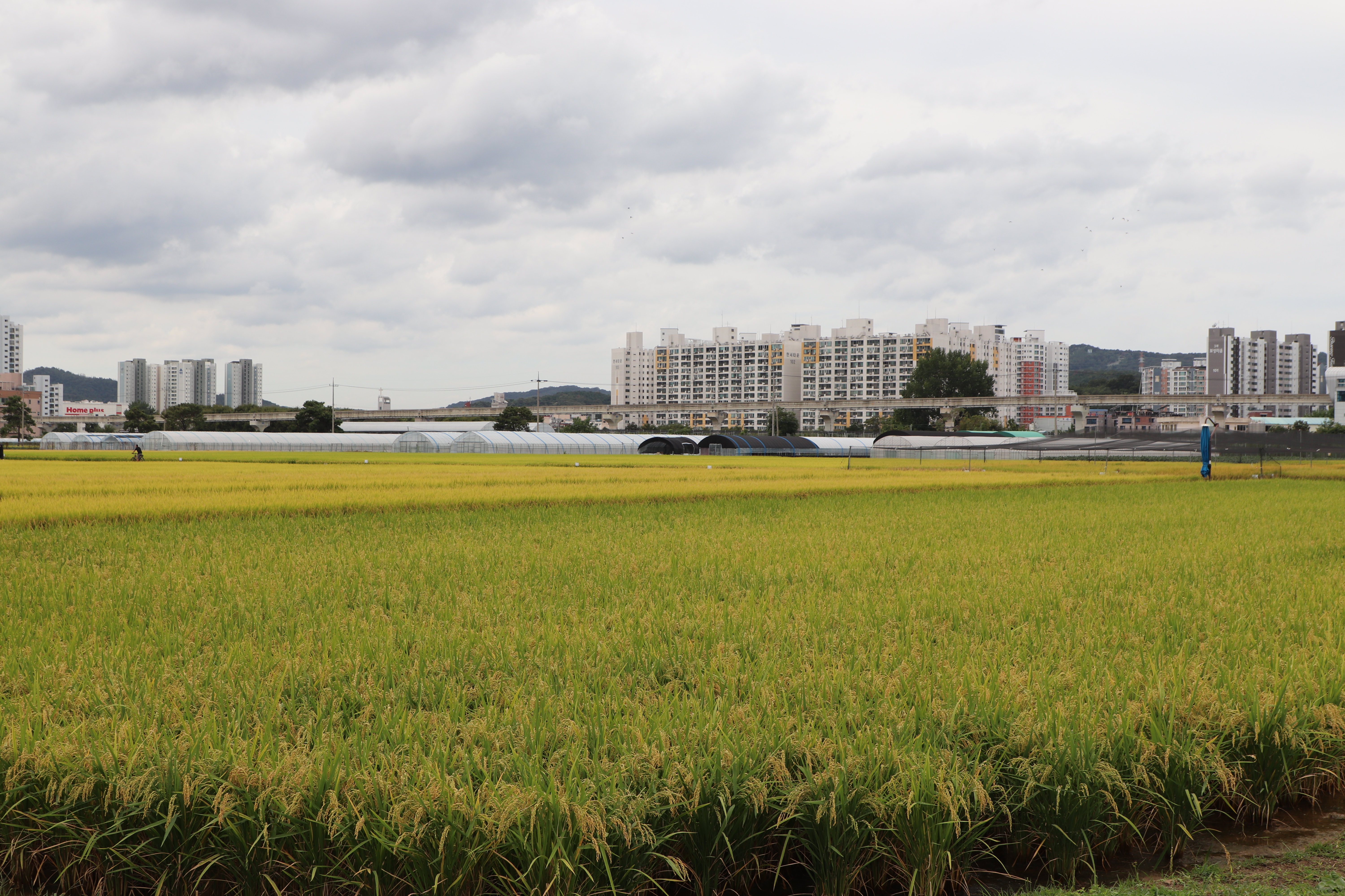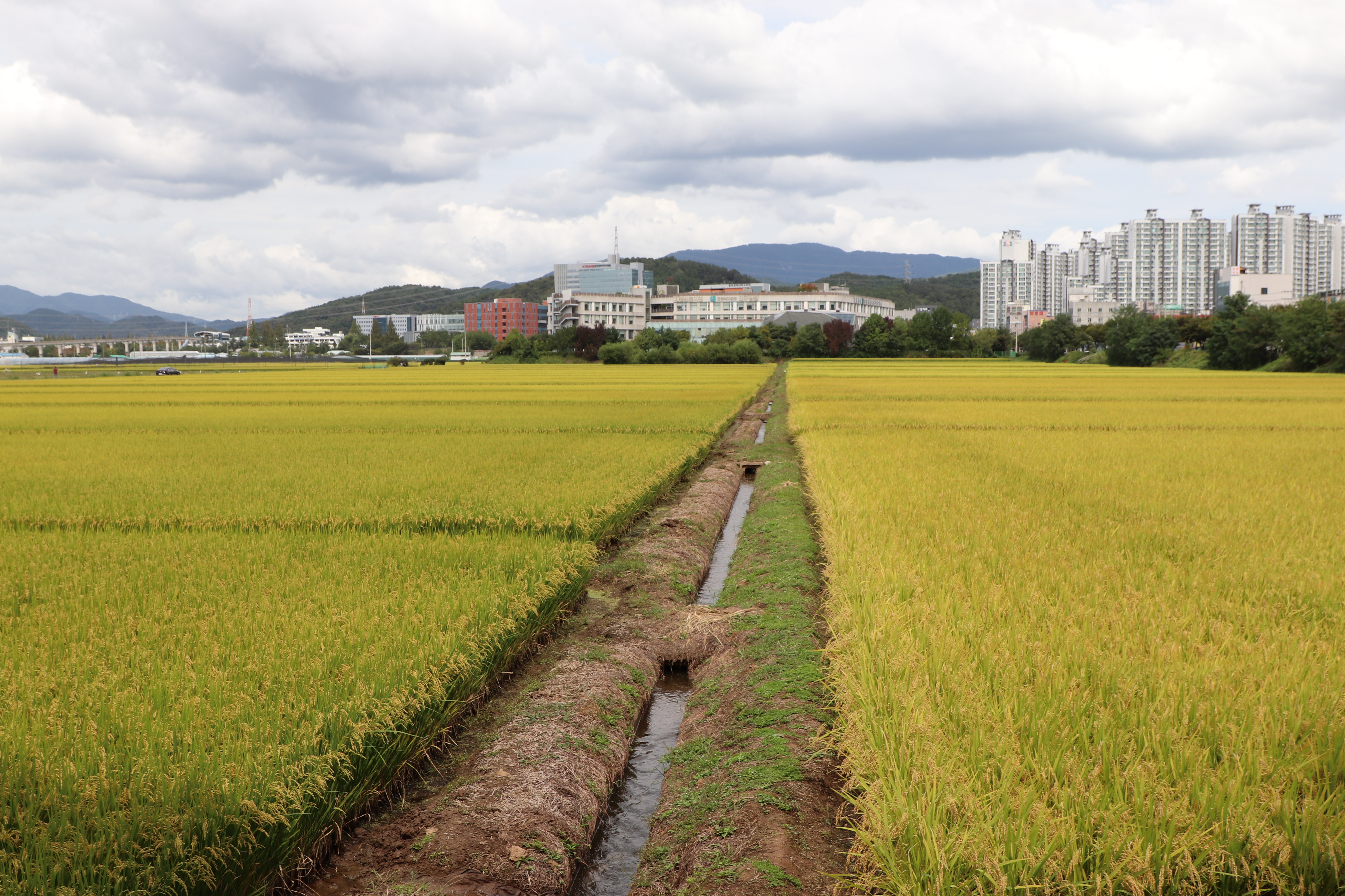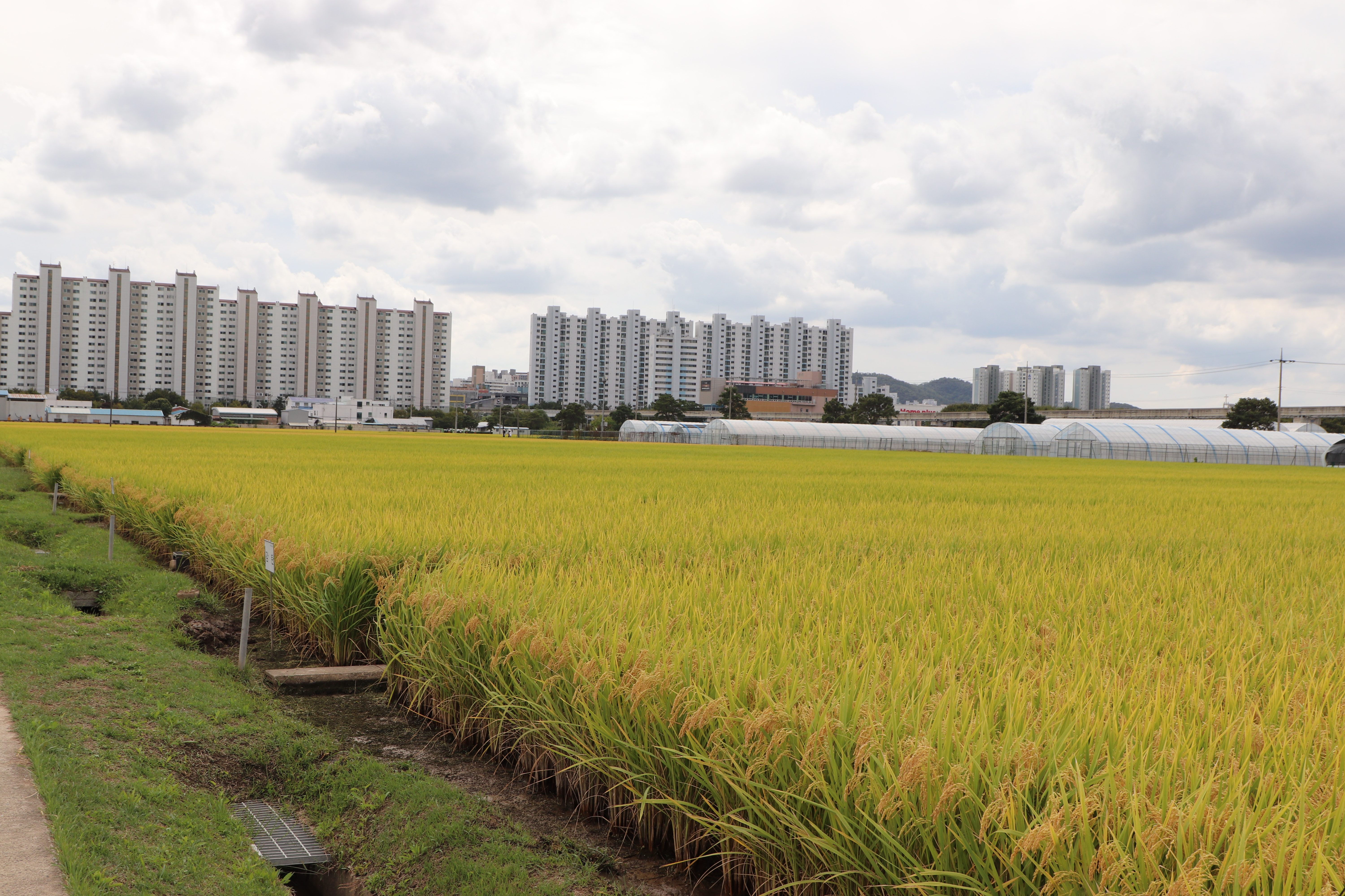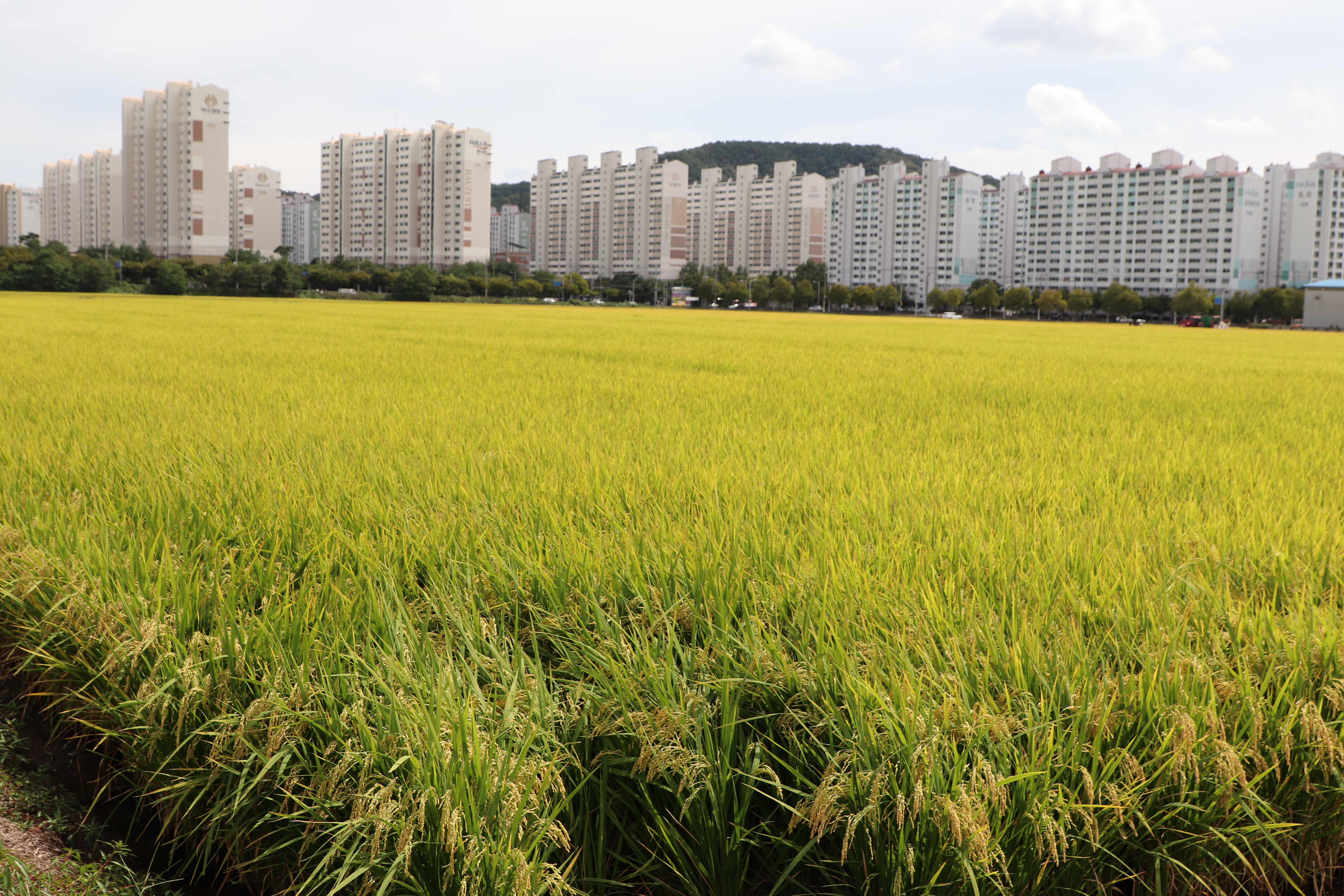 대구광역시 북구 학정동 경상북도 농업기술원 벼 종자(種子) 채종포(採種圃)에, 벼들이 황금색으로 곱게 물들고 있습니다.