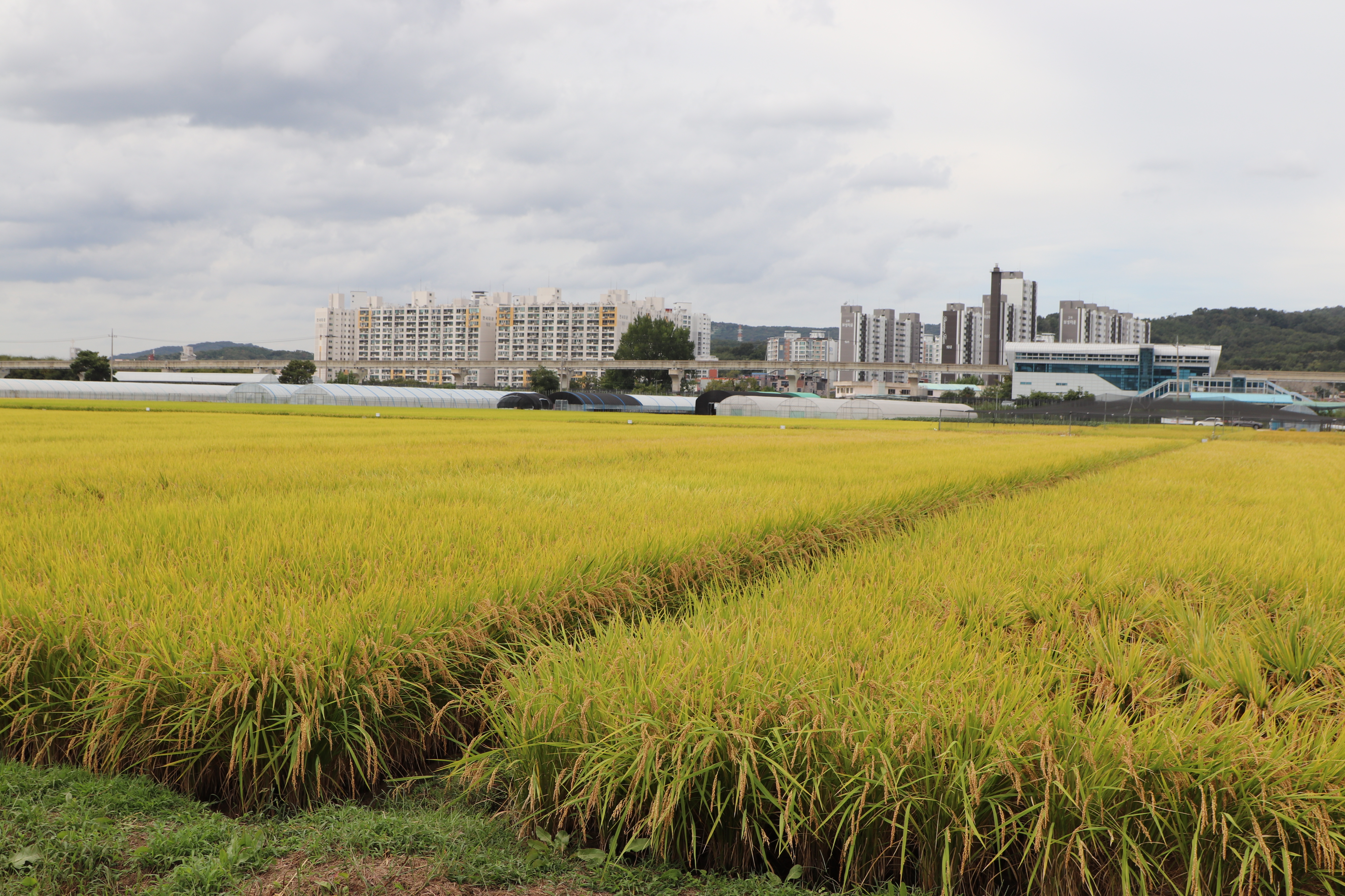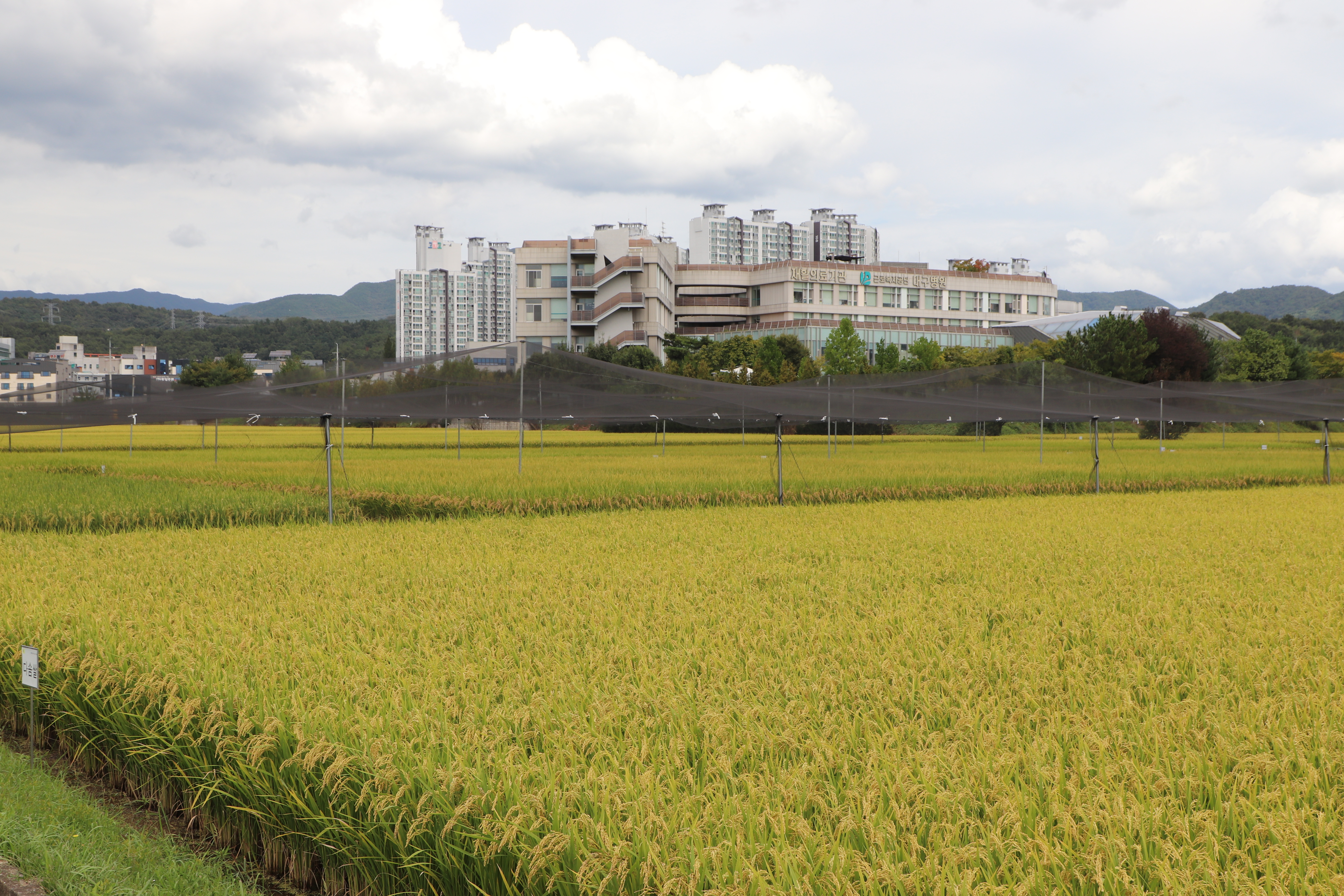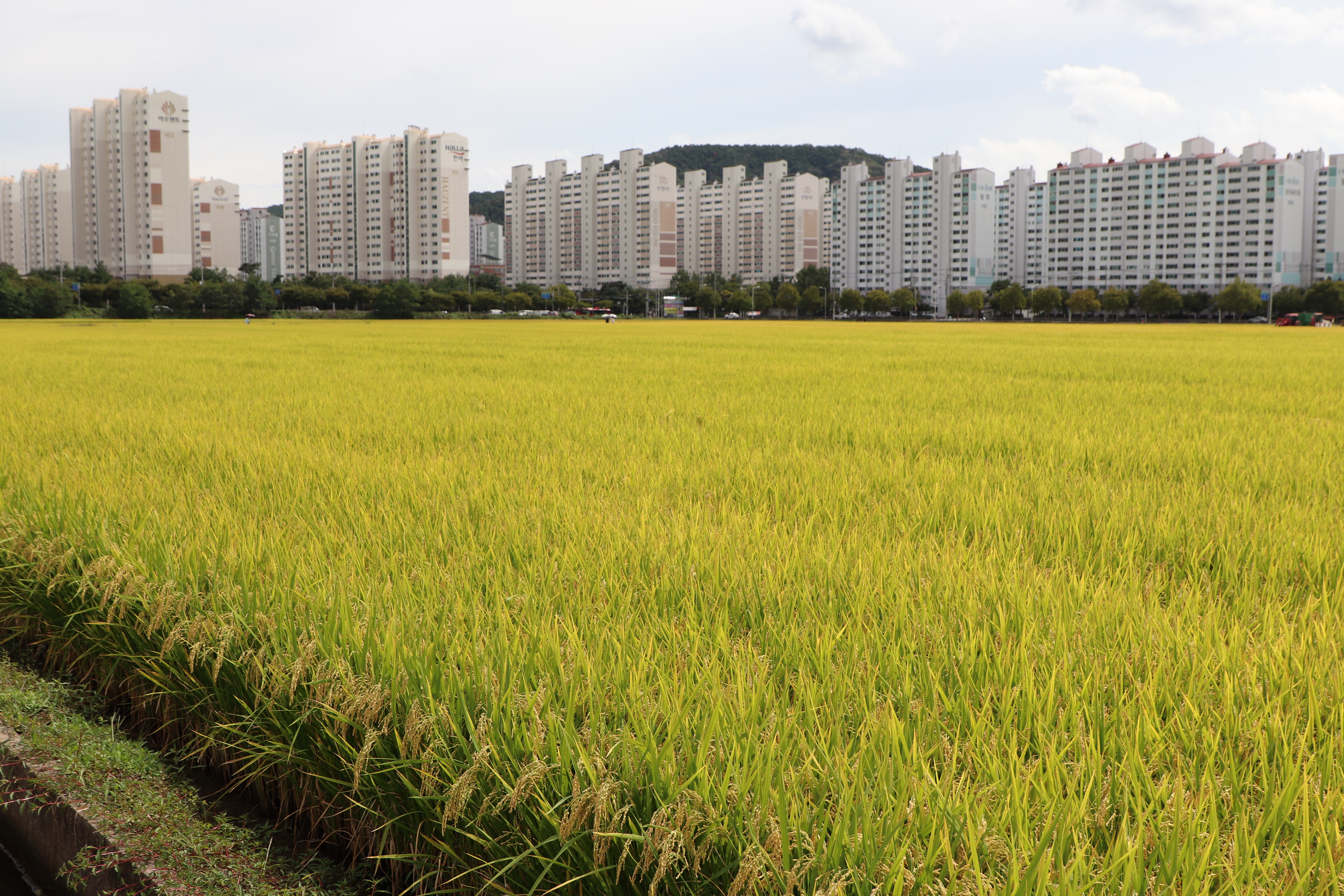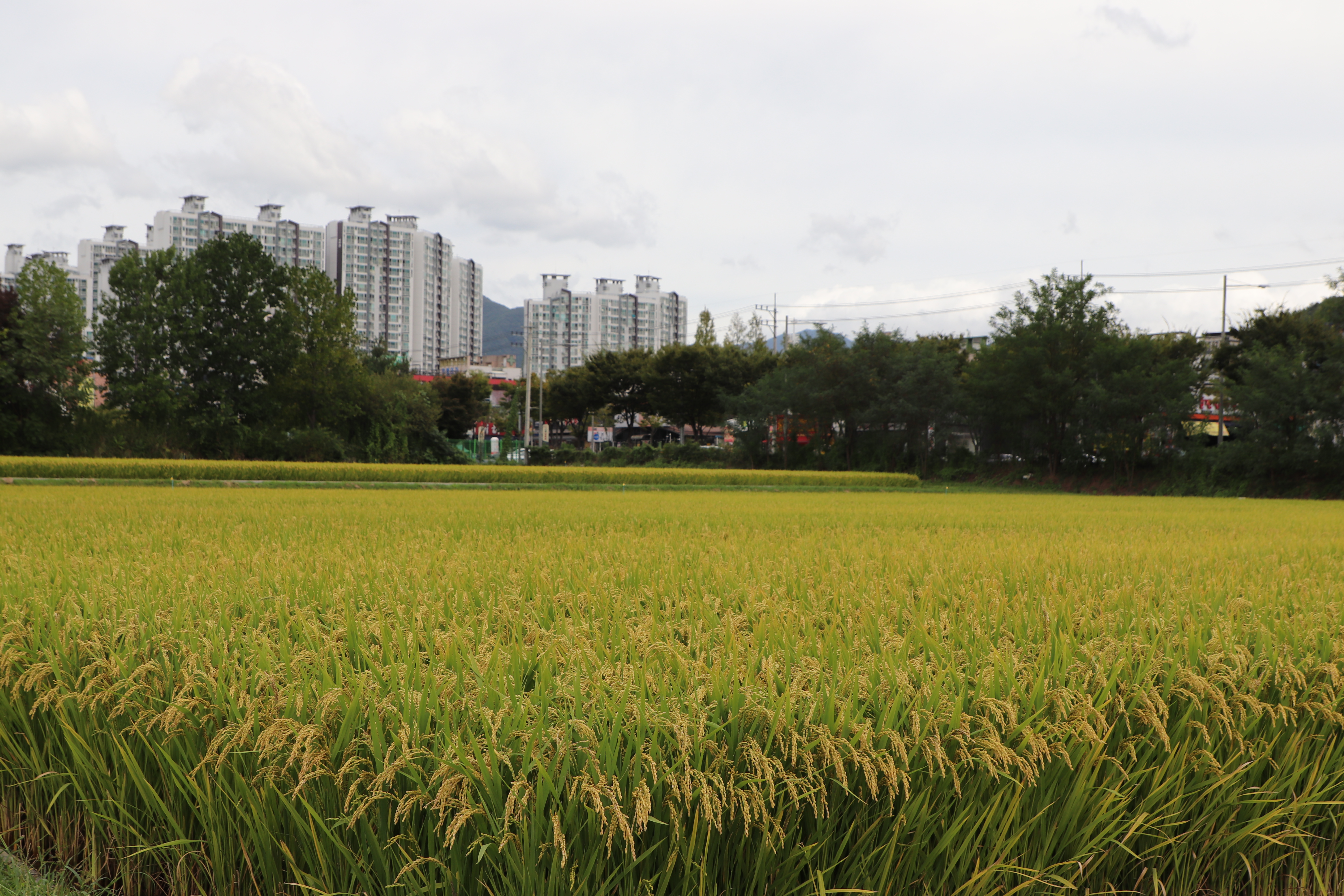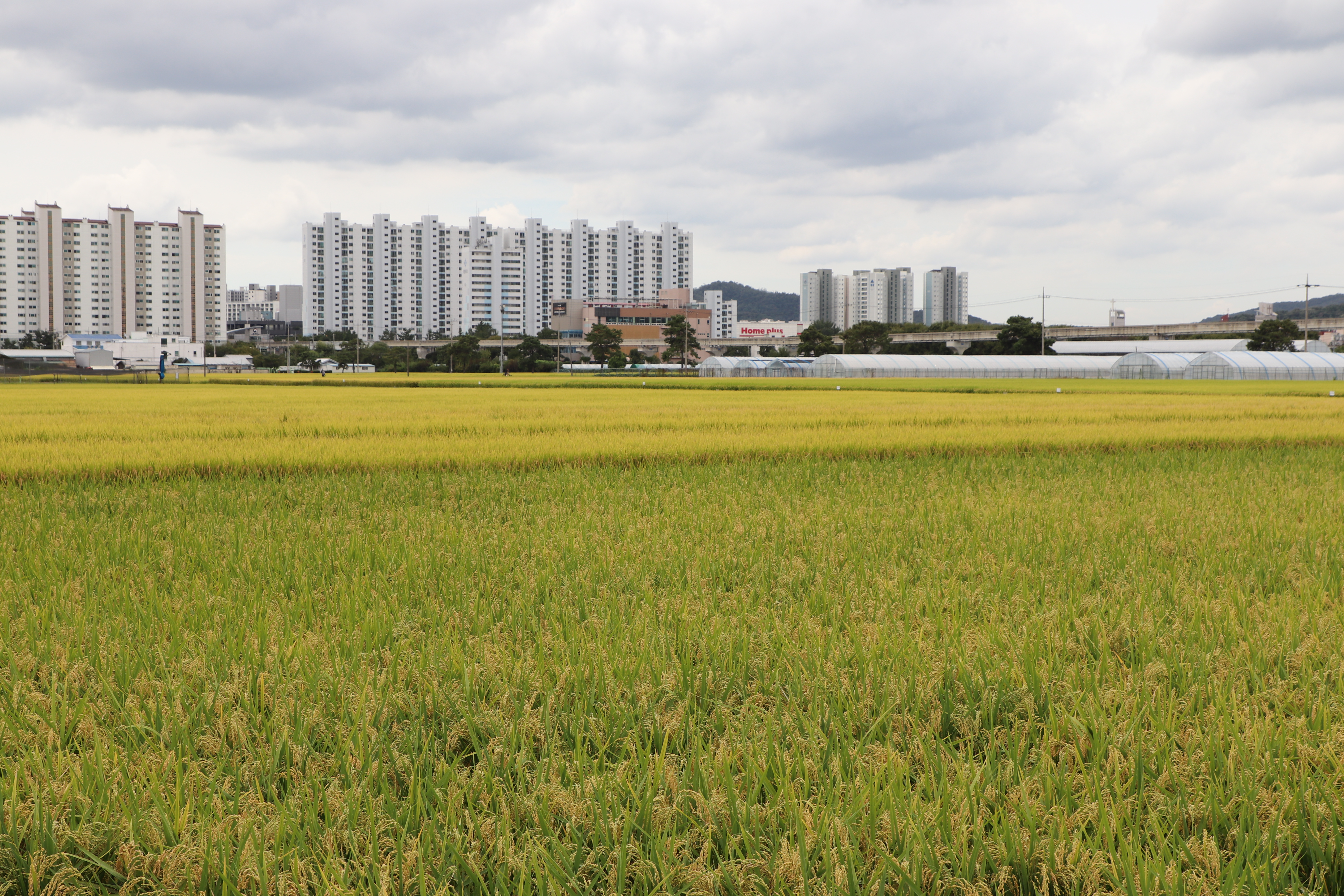 대구광역시 북구 학정동 경상북도 농업기술원 벼 종자(種子) 채종포(採種圃)에, 벼들이 황금색으로 곱게 물들고 있습니다.