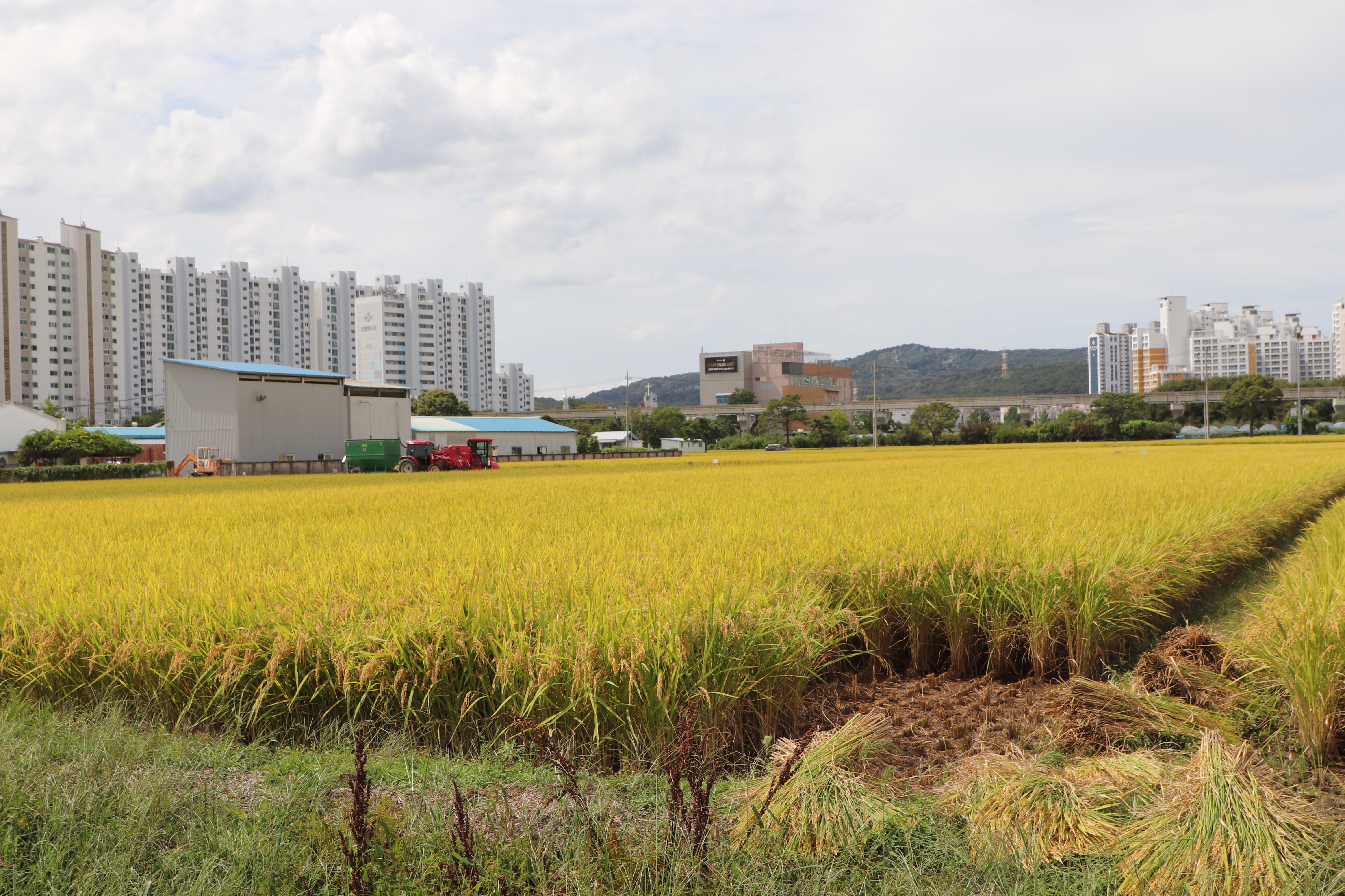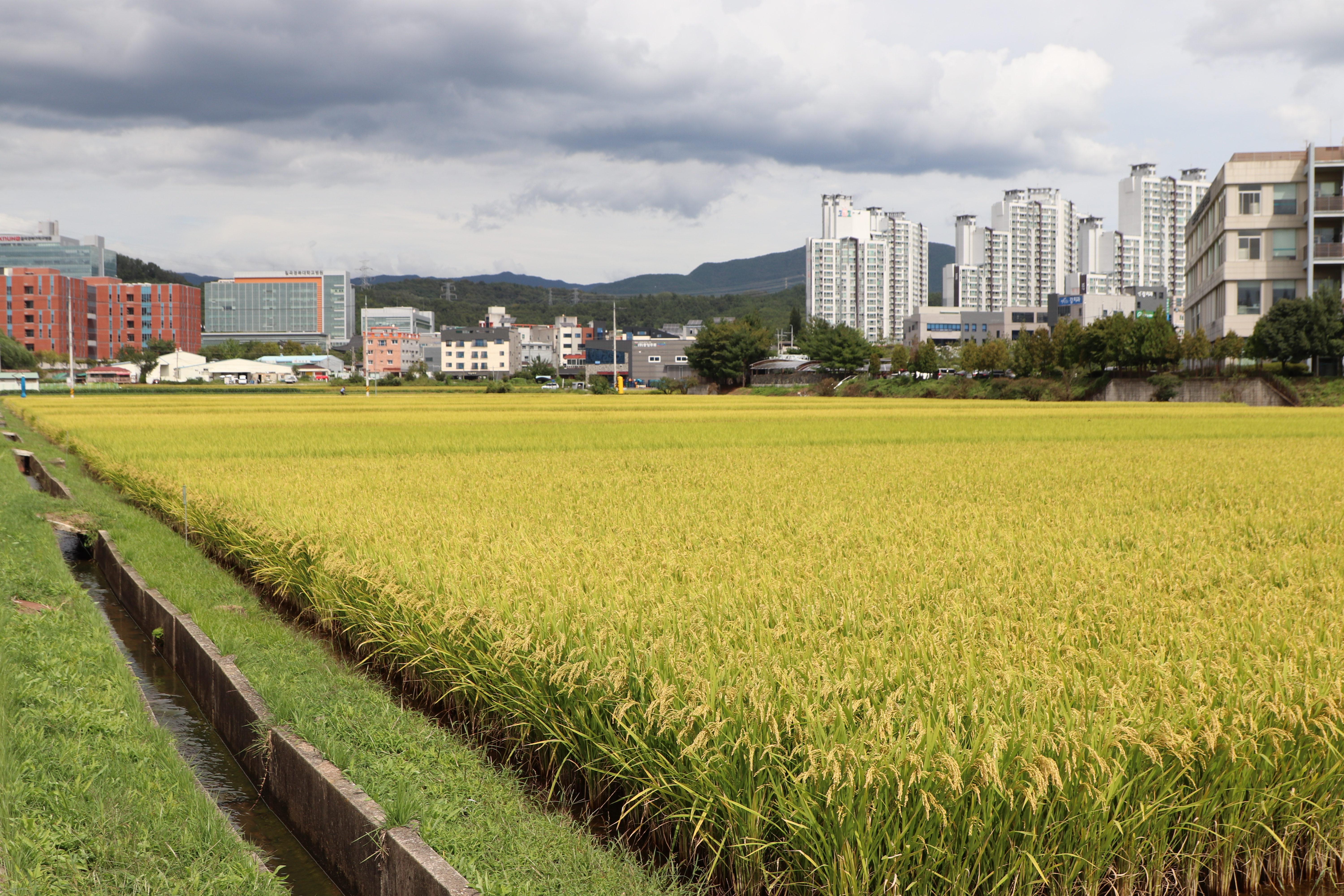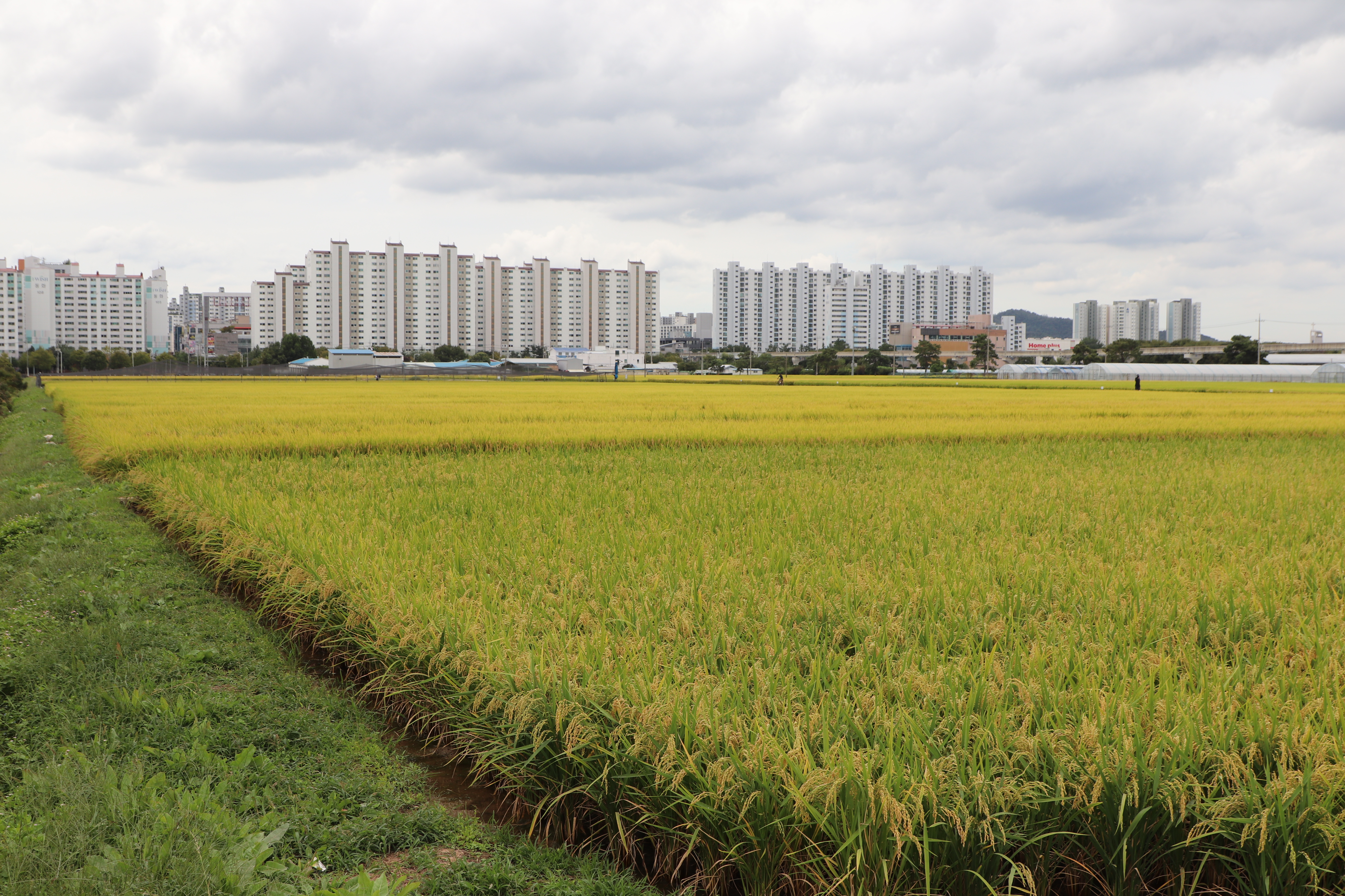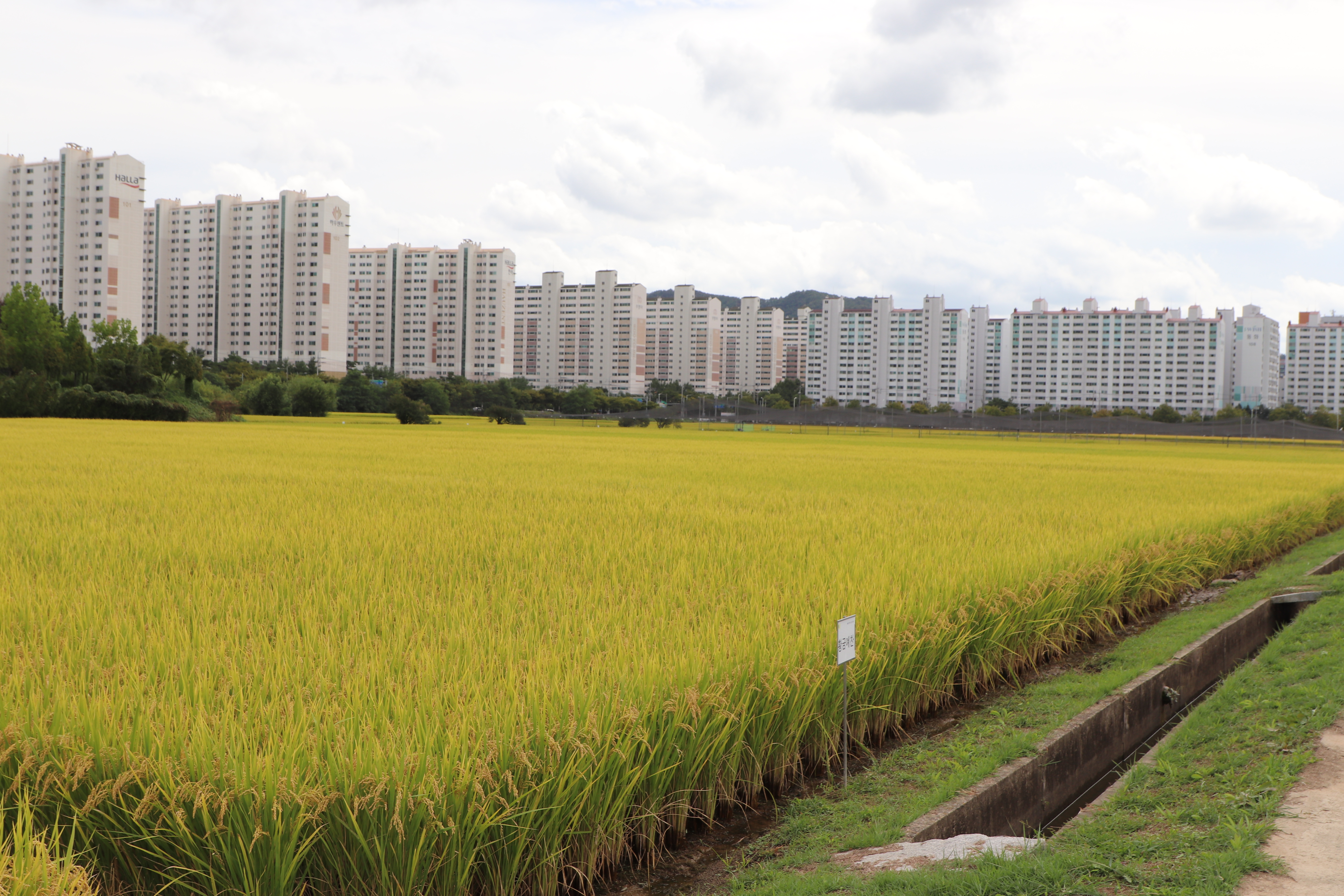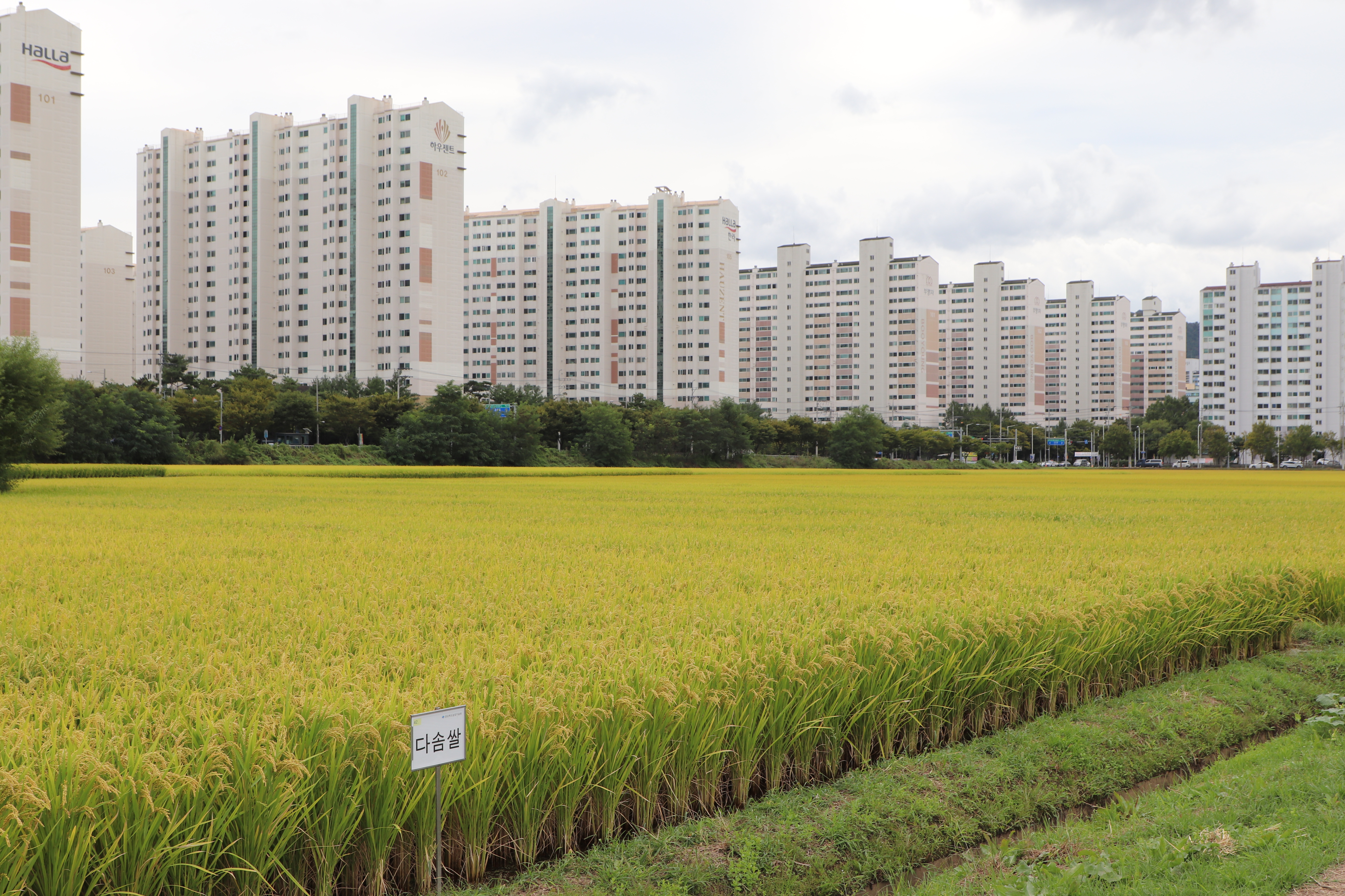 대구광역시 북구 학정동 경상북도 농업기술원 벼 종자(種子) 채종포(採種圃)에, 벼들이 황금색으로 곱게 물들고 있습니다.