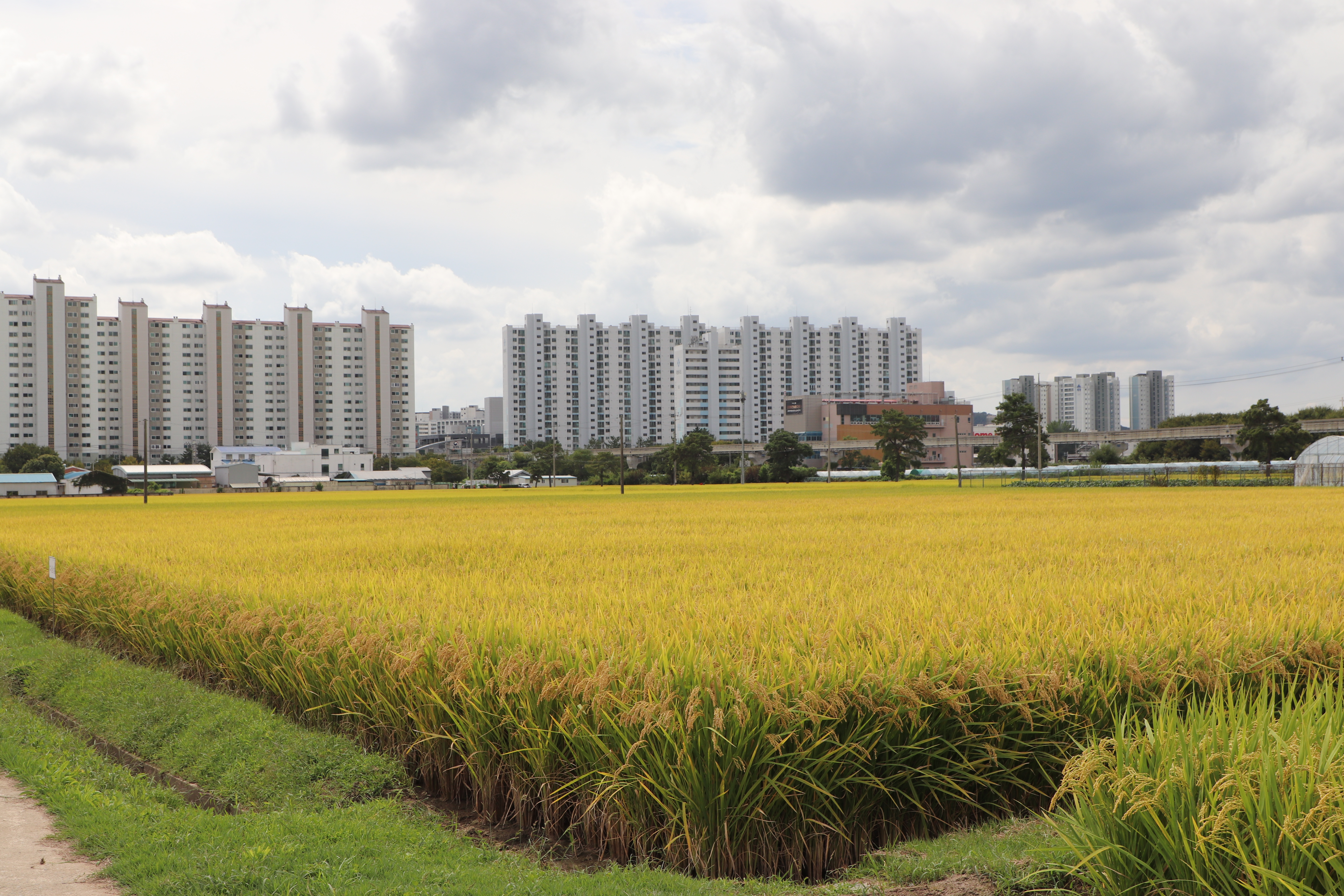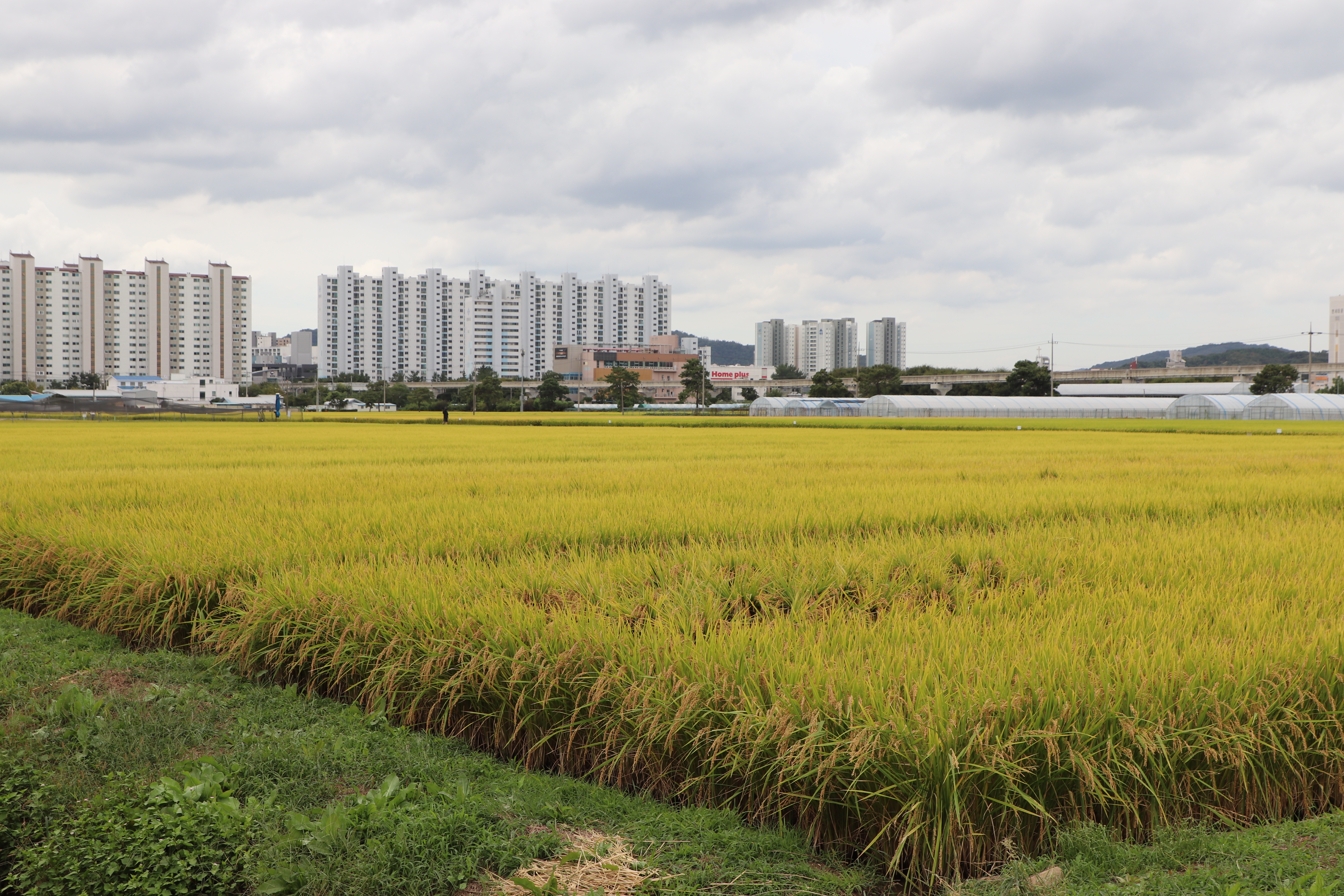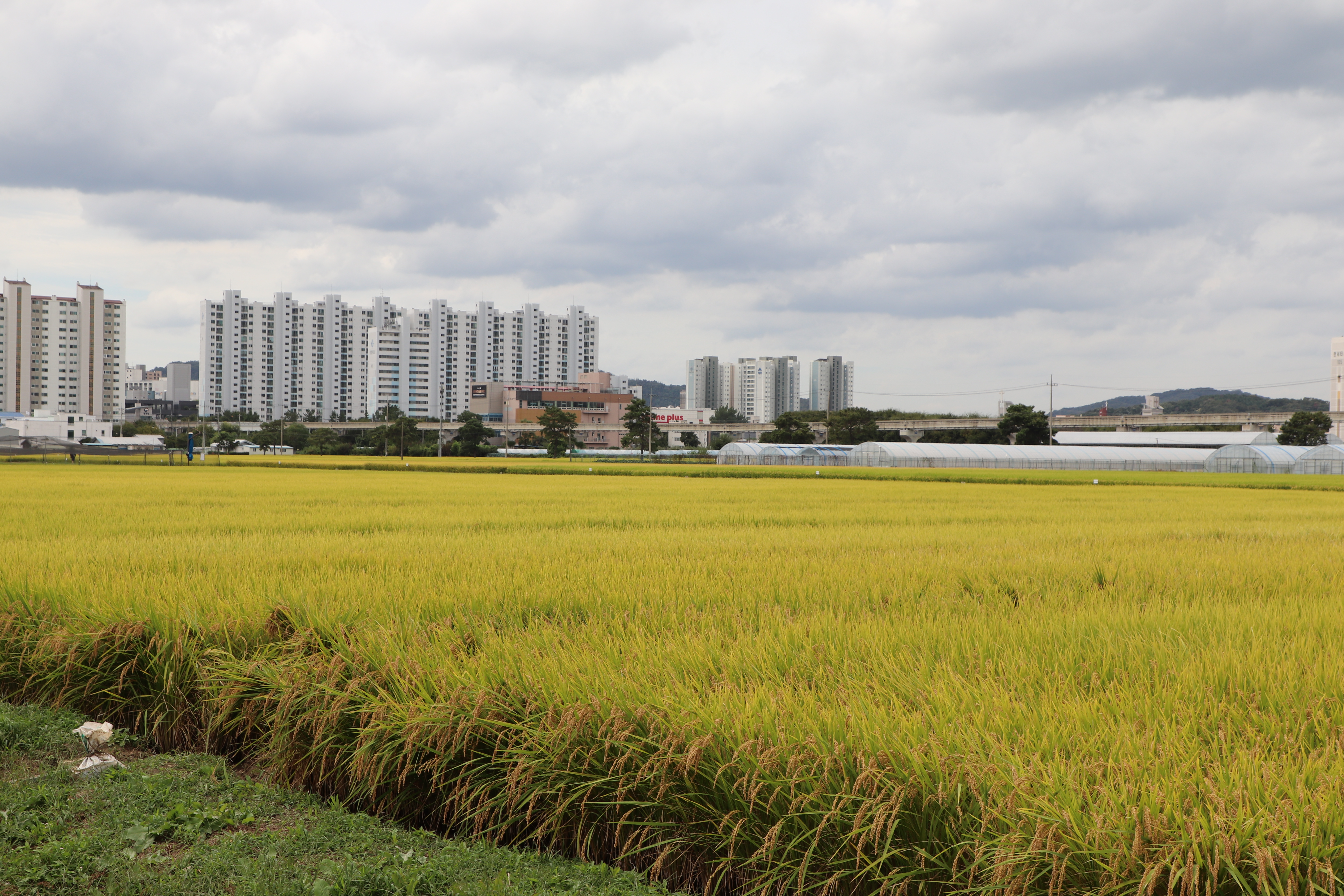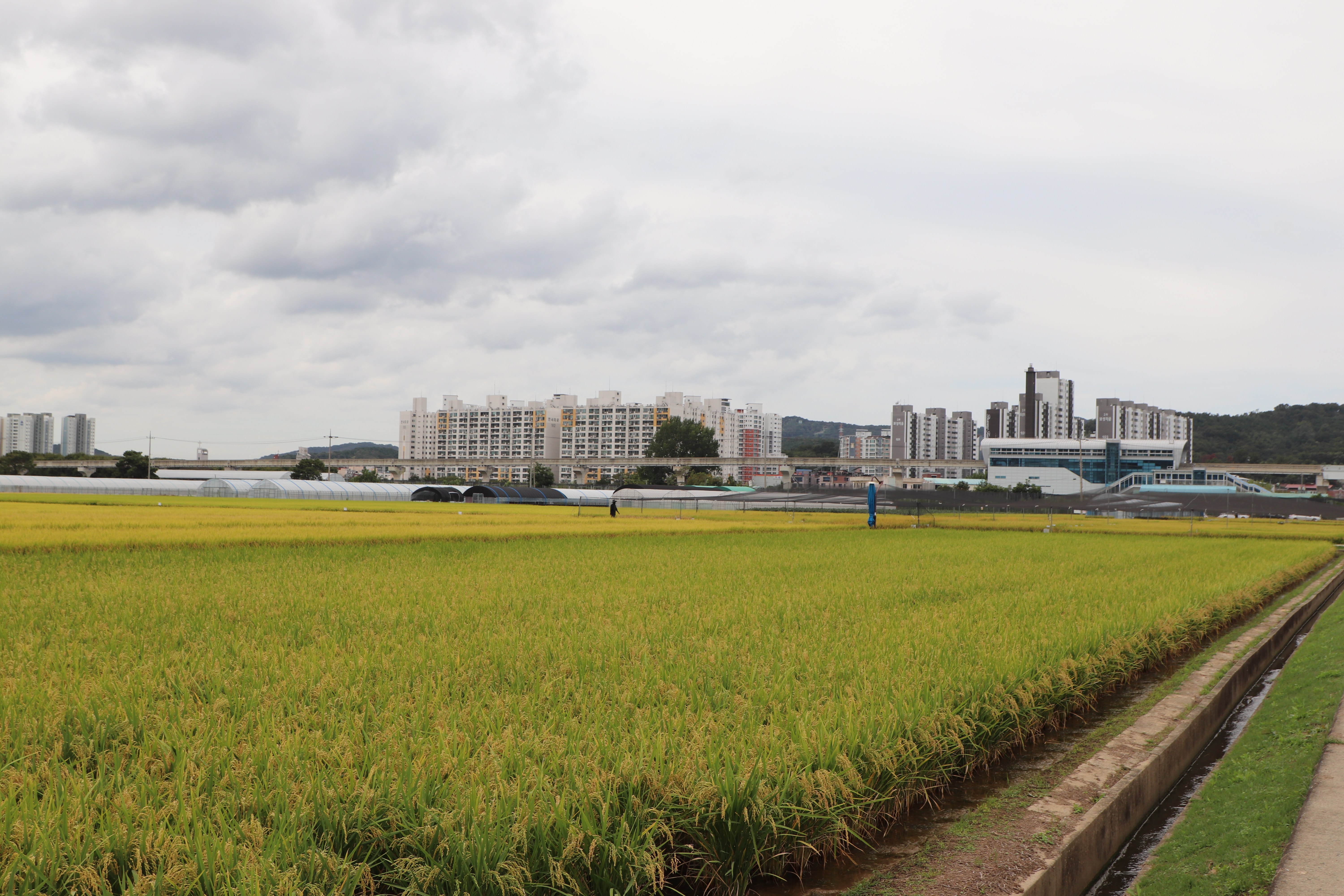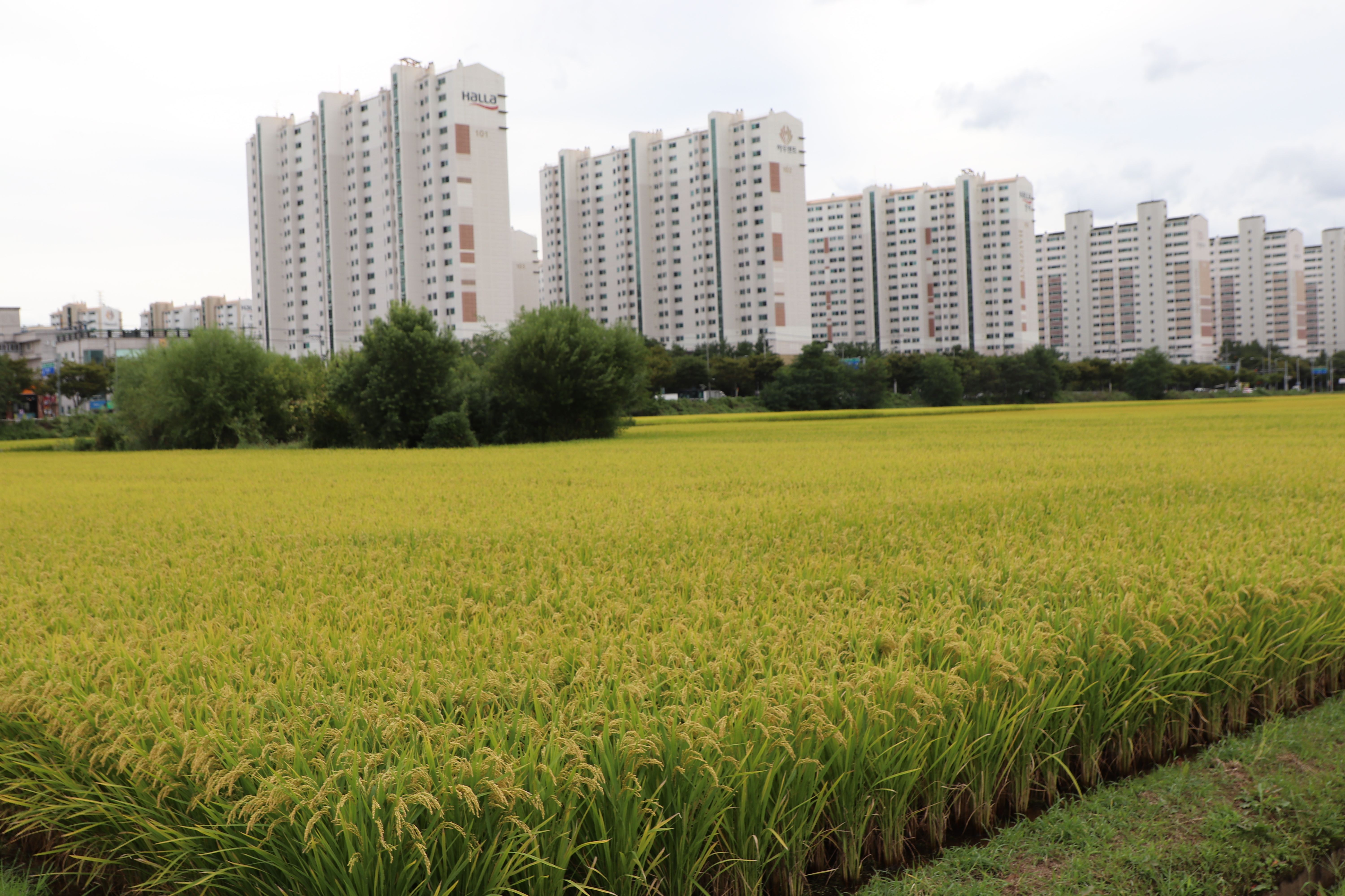 대구광역시 북구 학정동 경상북도 농업기술원 벼 종자(種子) 채종포(採種圃)에, 벼들이 황금색으로 곱게 물들고 있습니다.