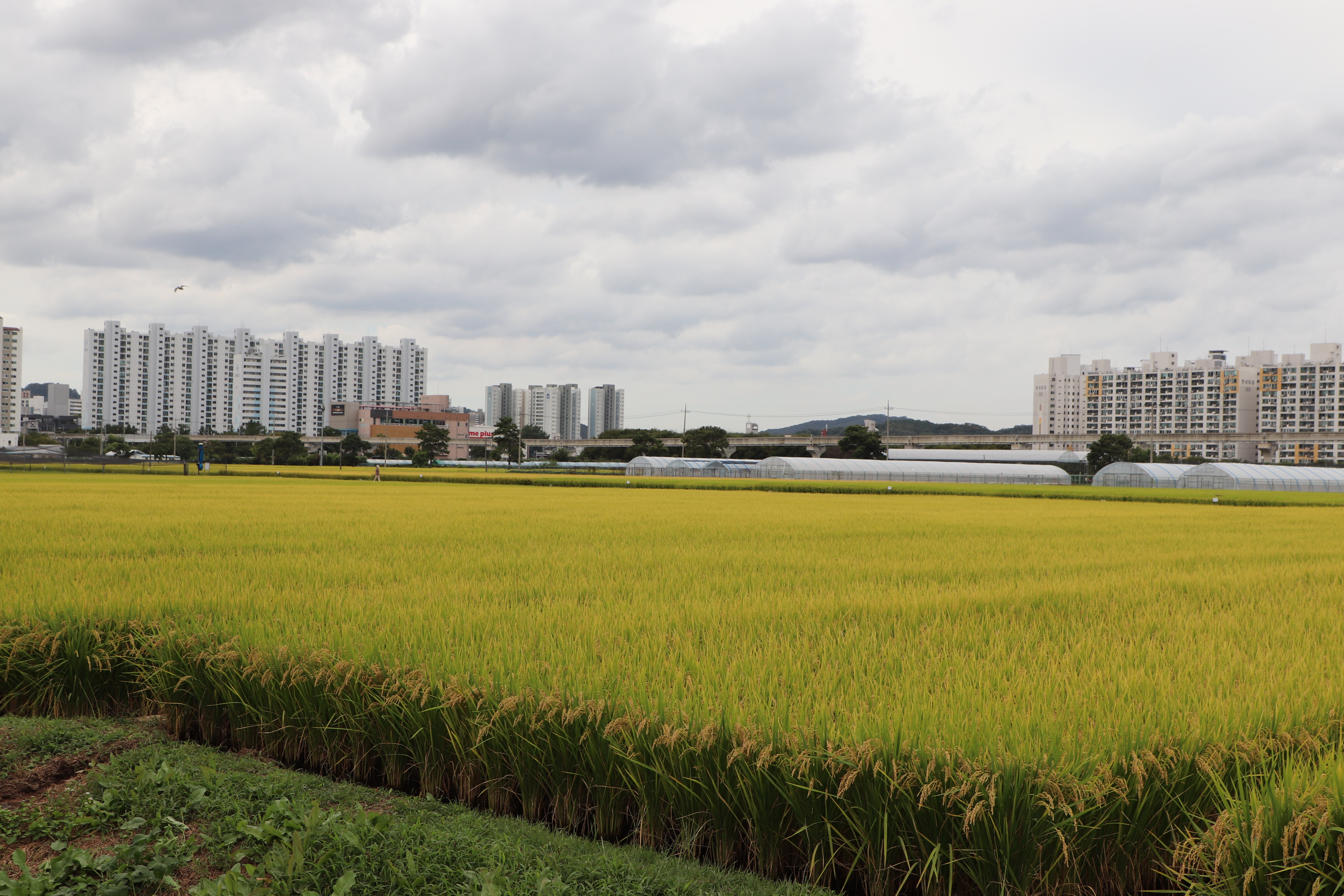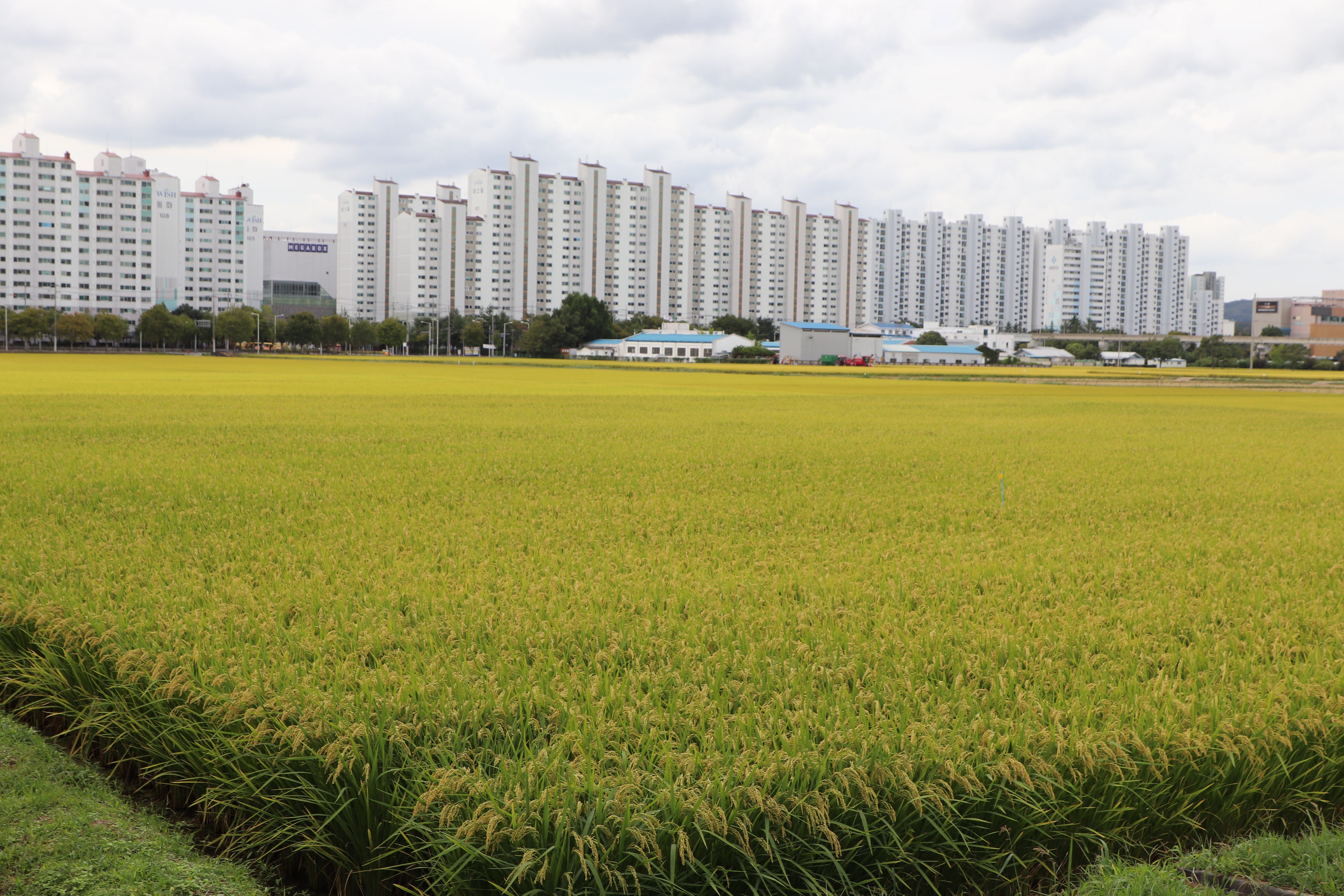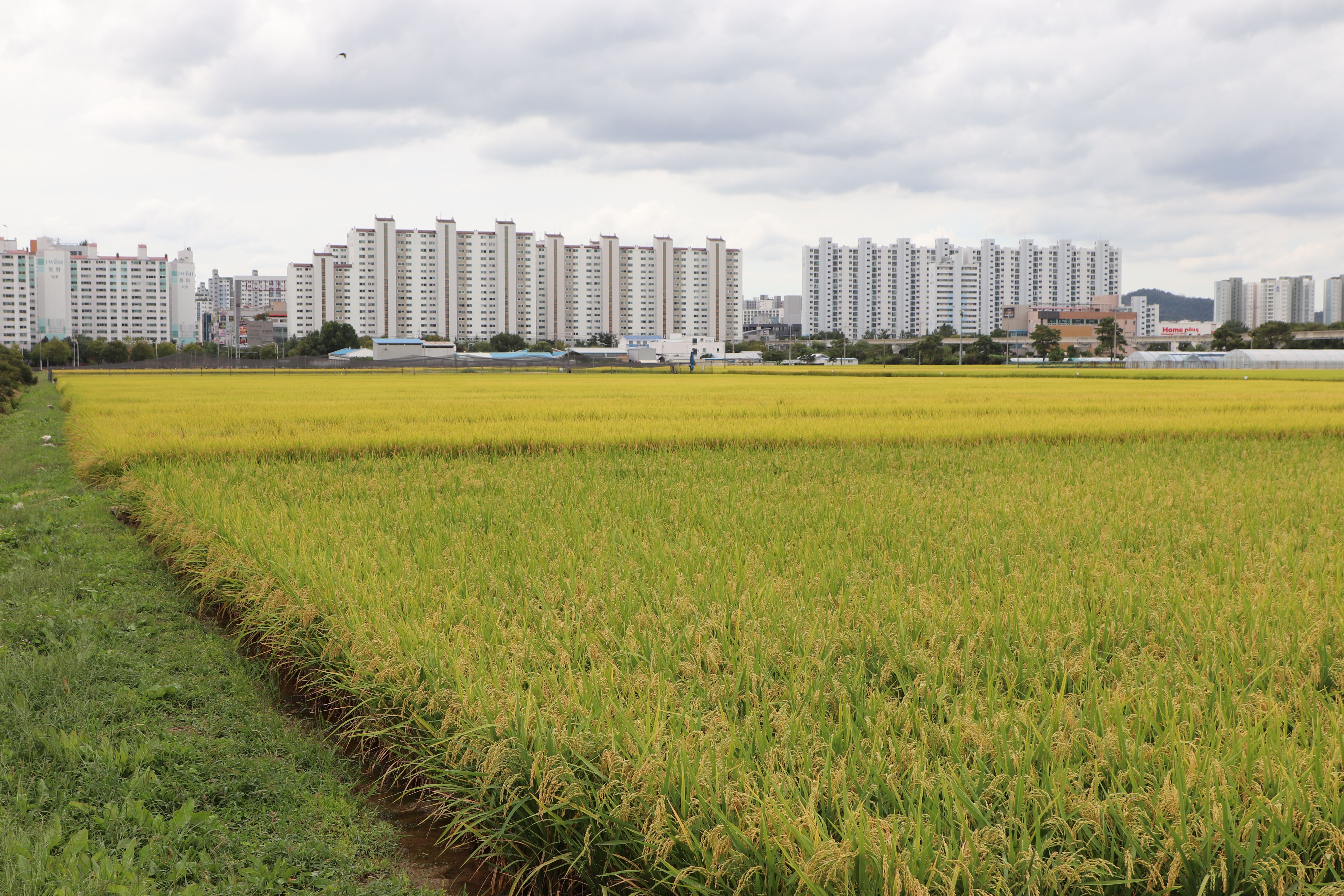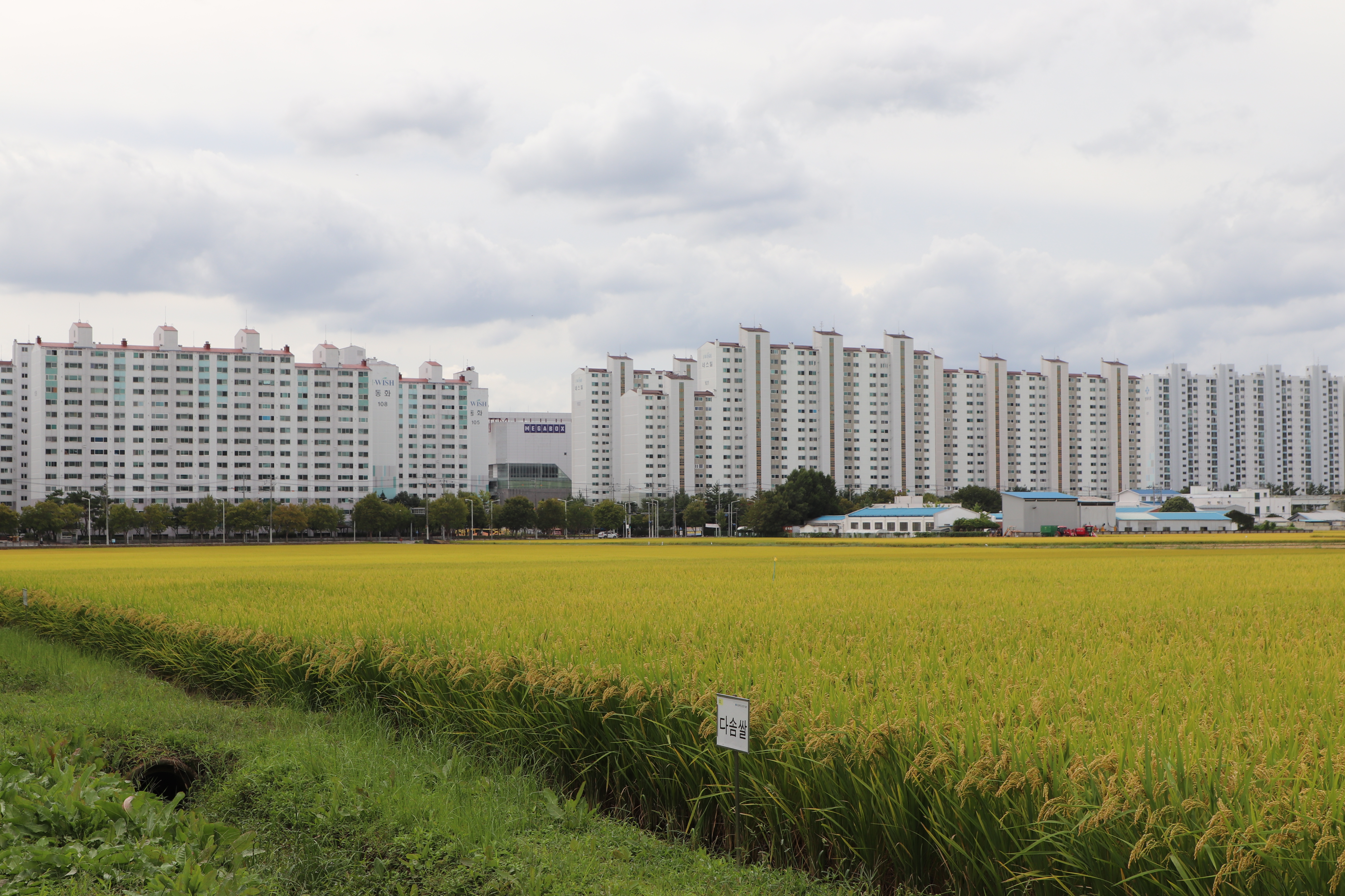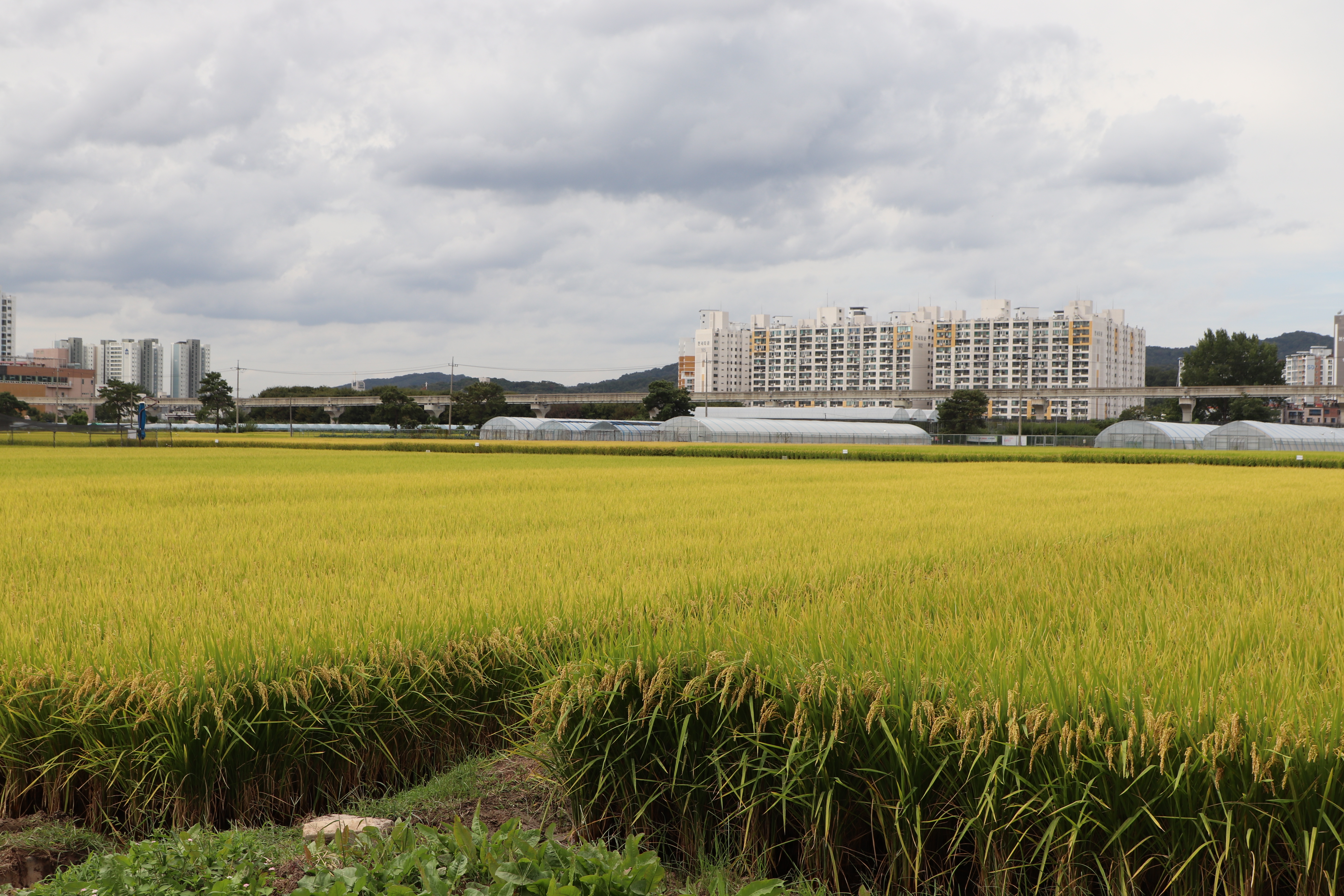 대구광역시 북구 학정동 경상북도 농업기술원 벼 종자(種子) 채종포(採種圃)에, 벼들이 황금색으로 곱게 물들고 있습니다.