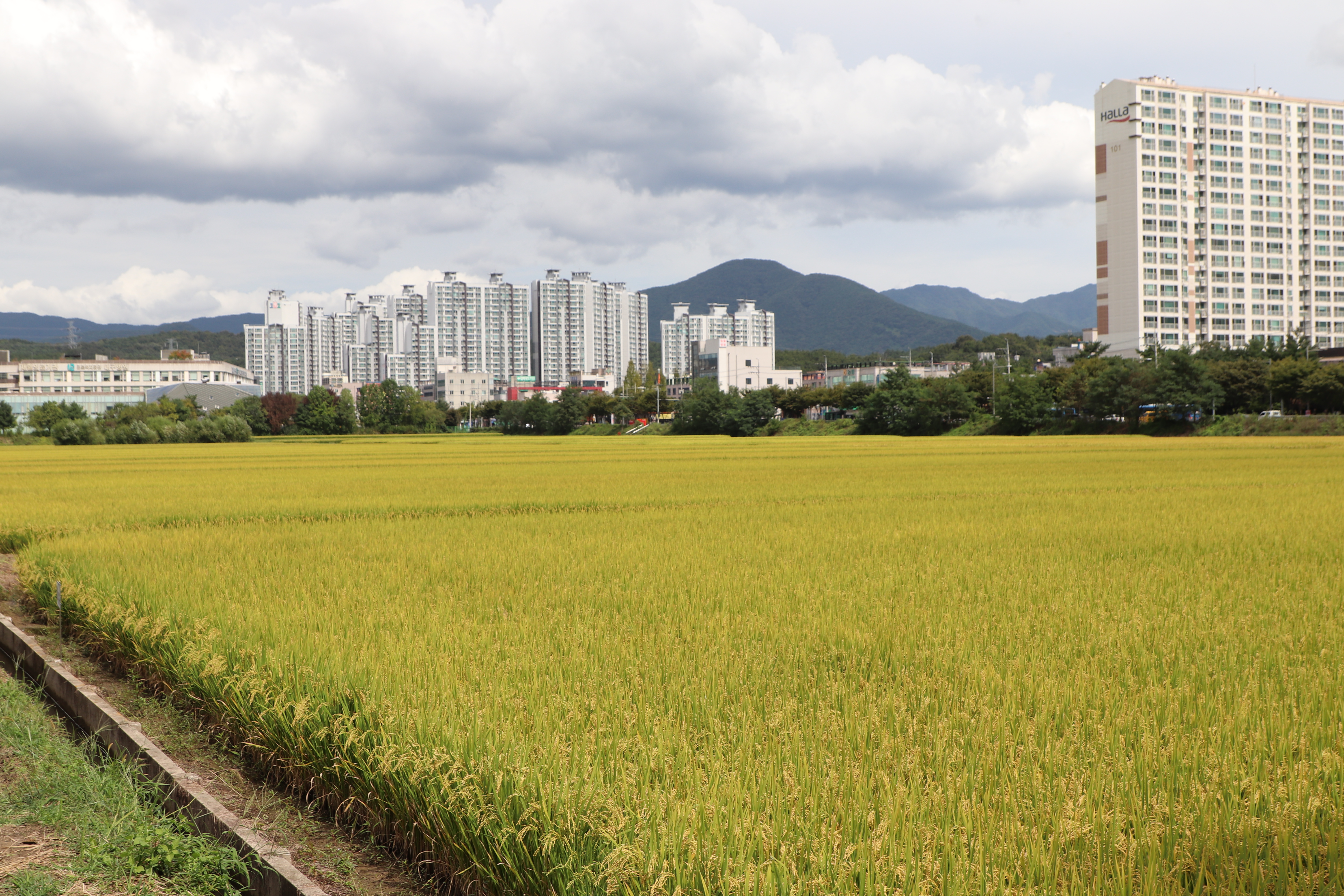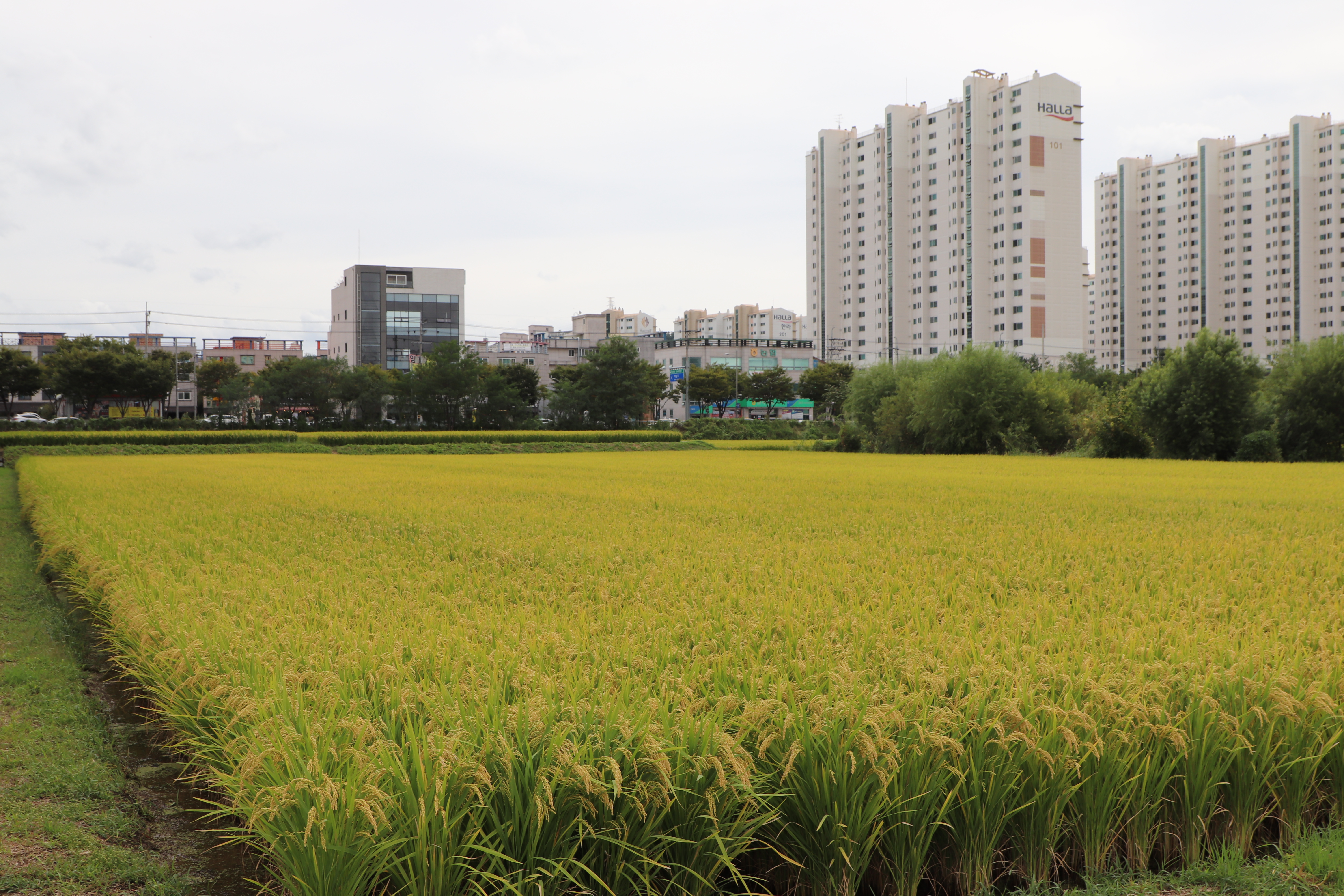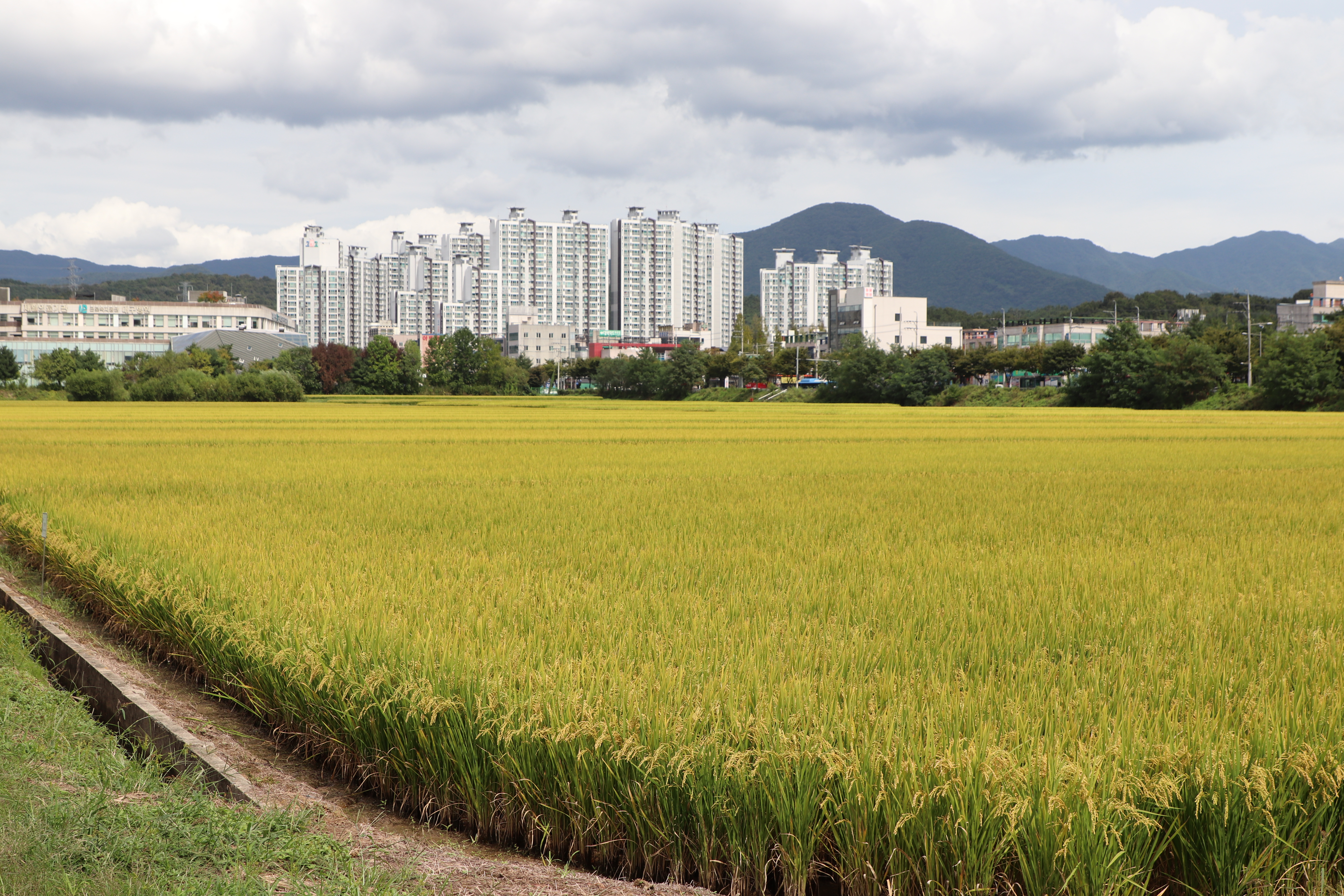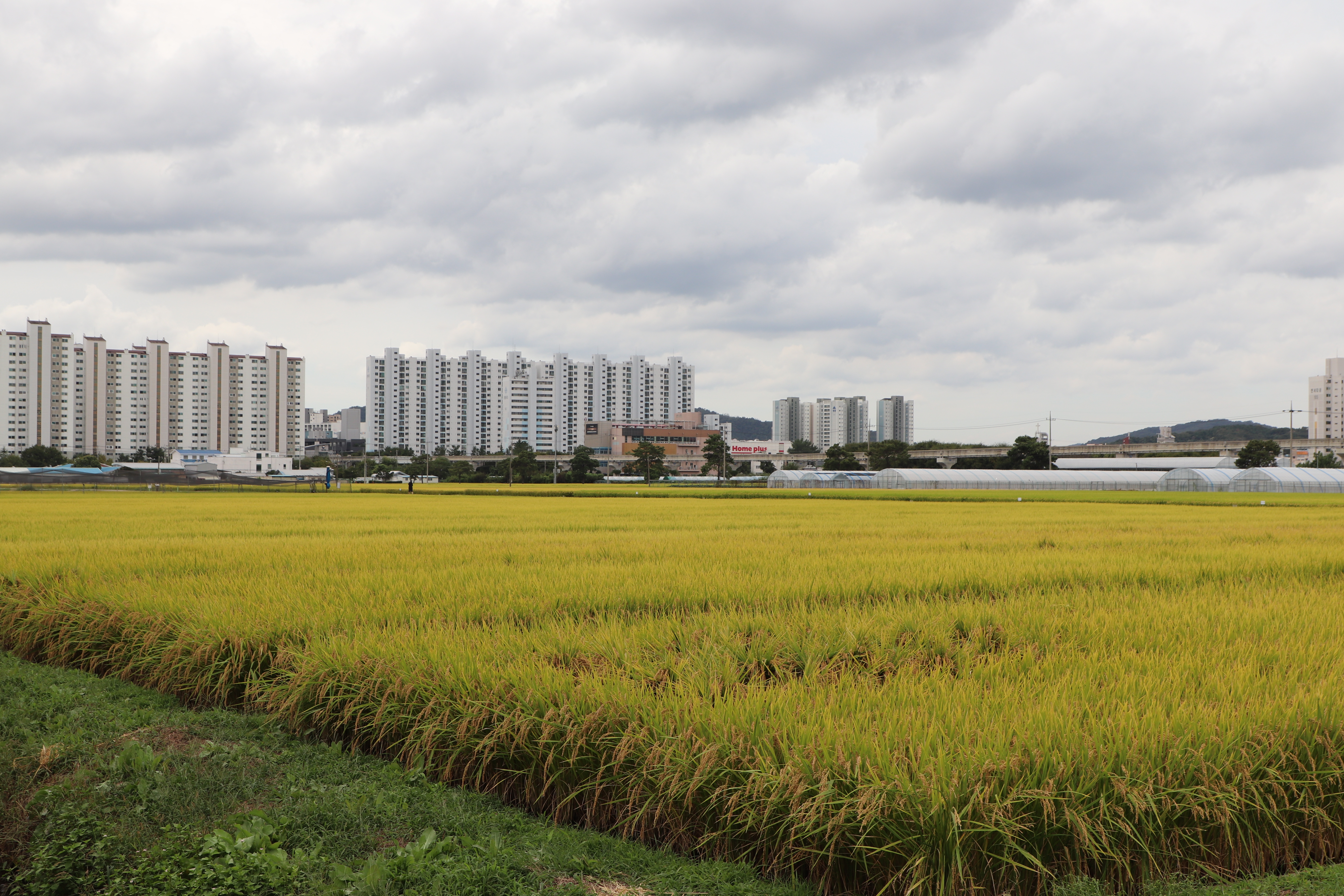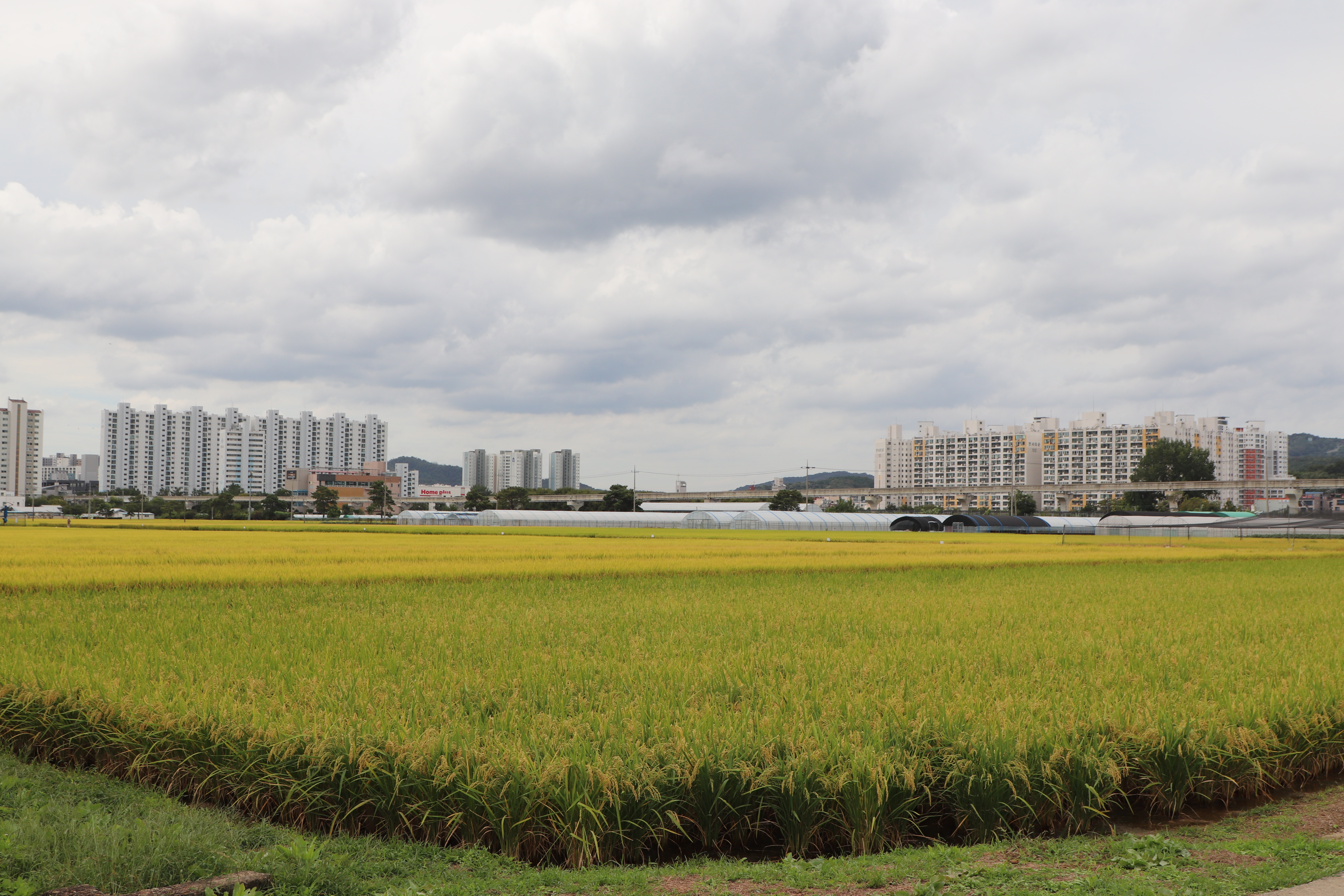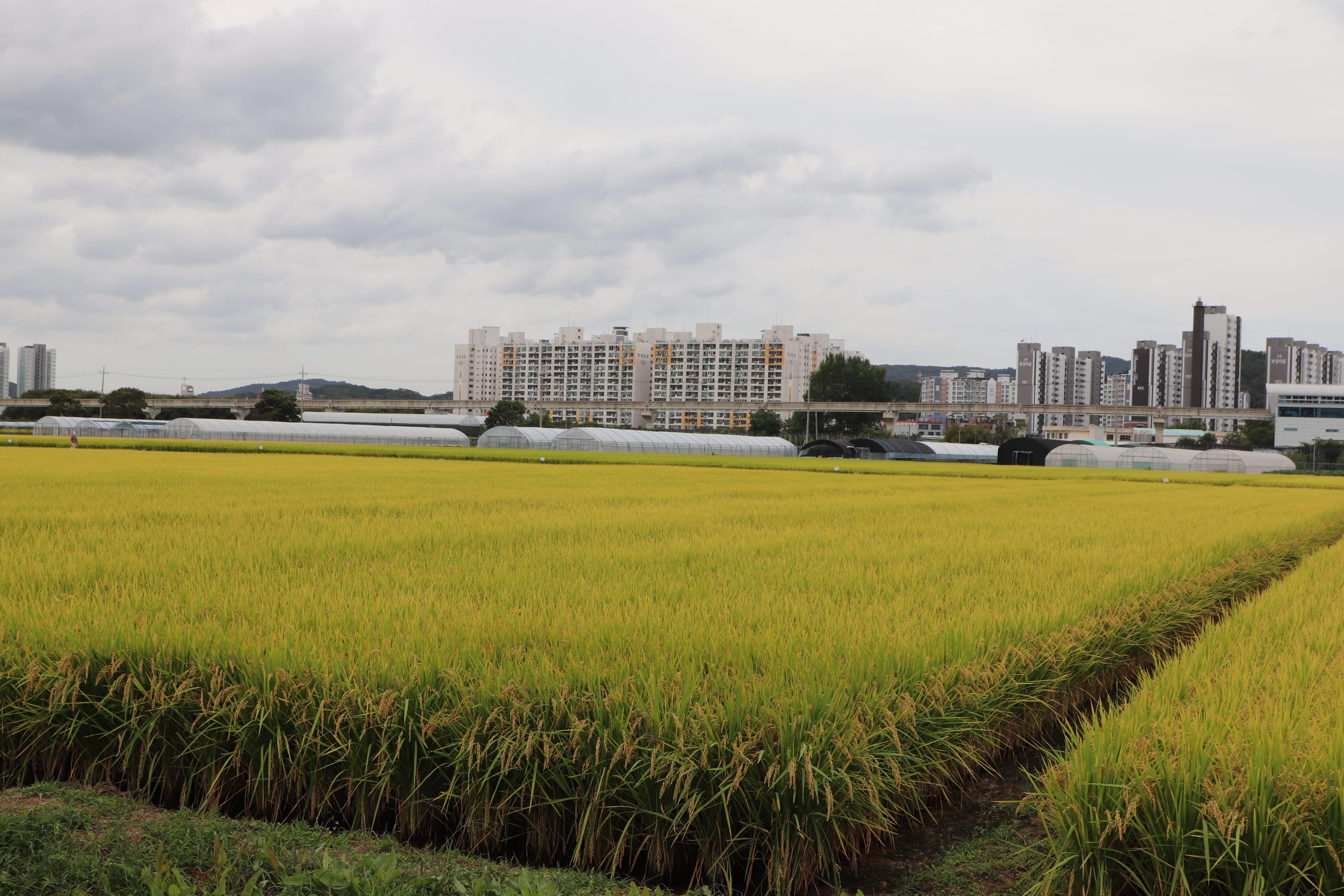 대구광역시 북구 학정동 경상북도 농업기술원 벼 종자(種子) 채종포(採種圃)에, 벼들이 황금색으로 곱게 물들고 있습니다.