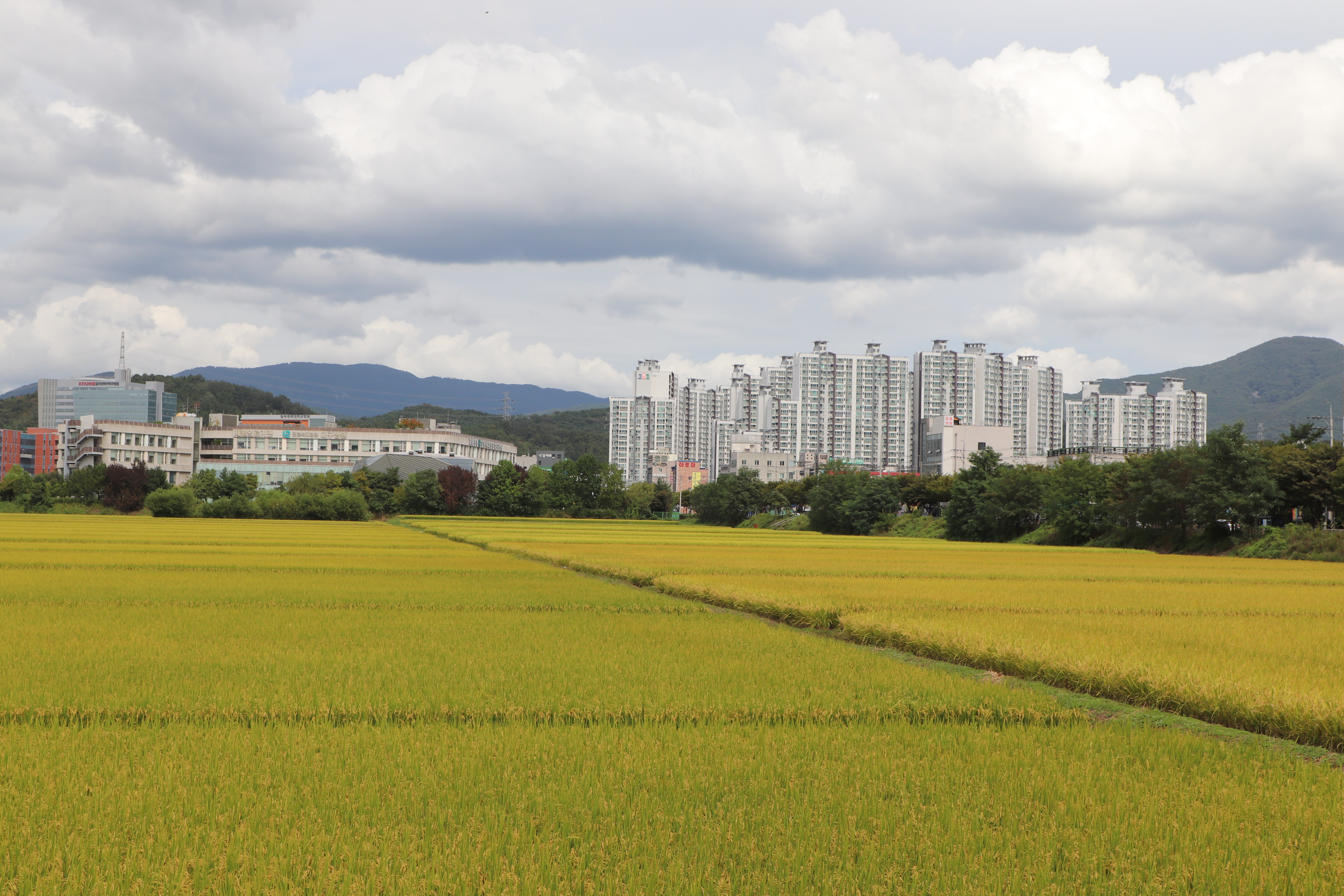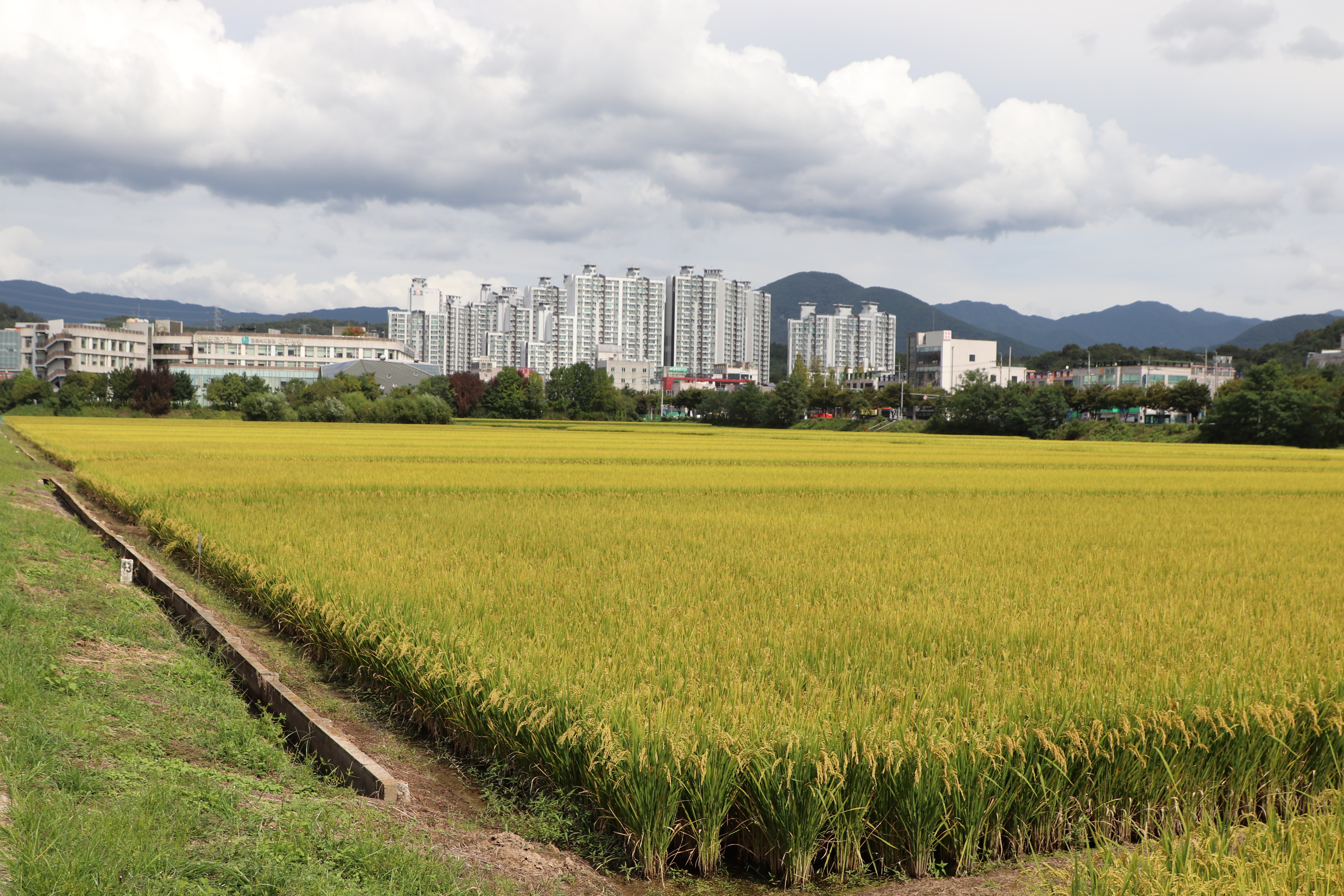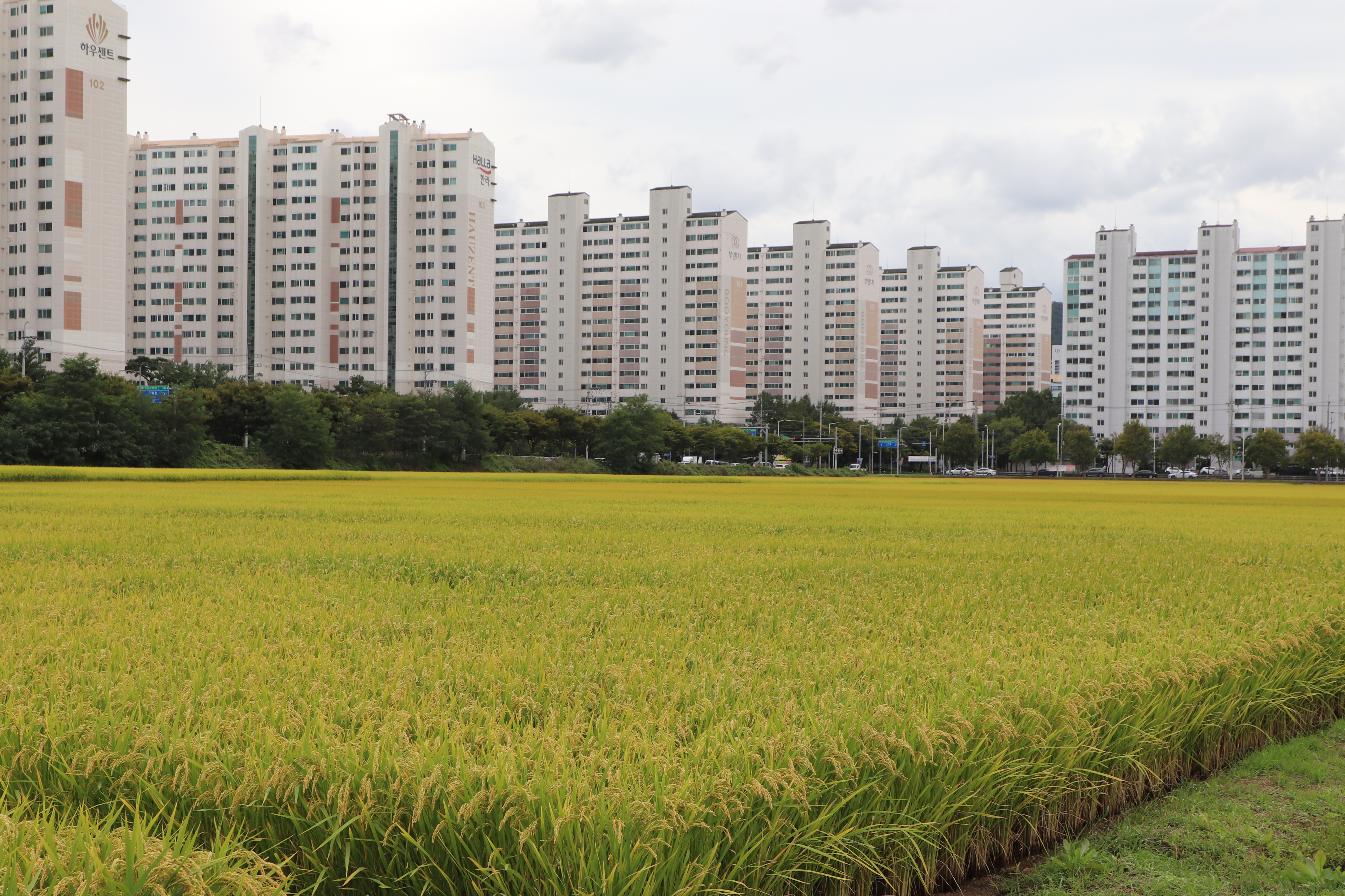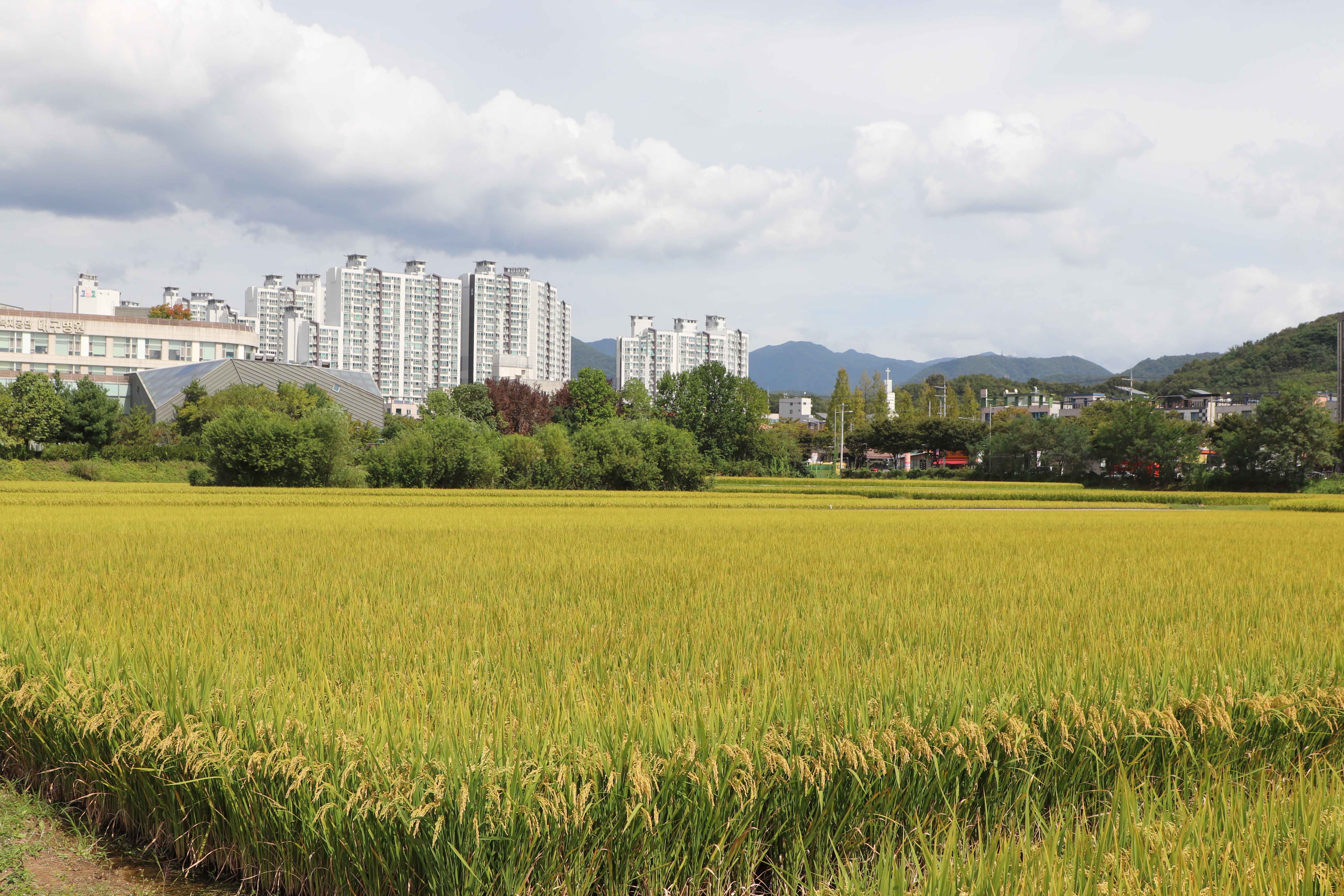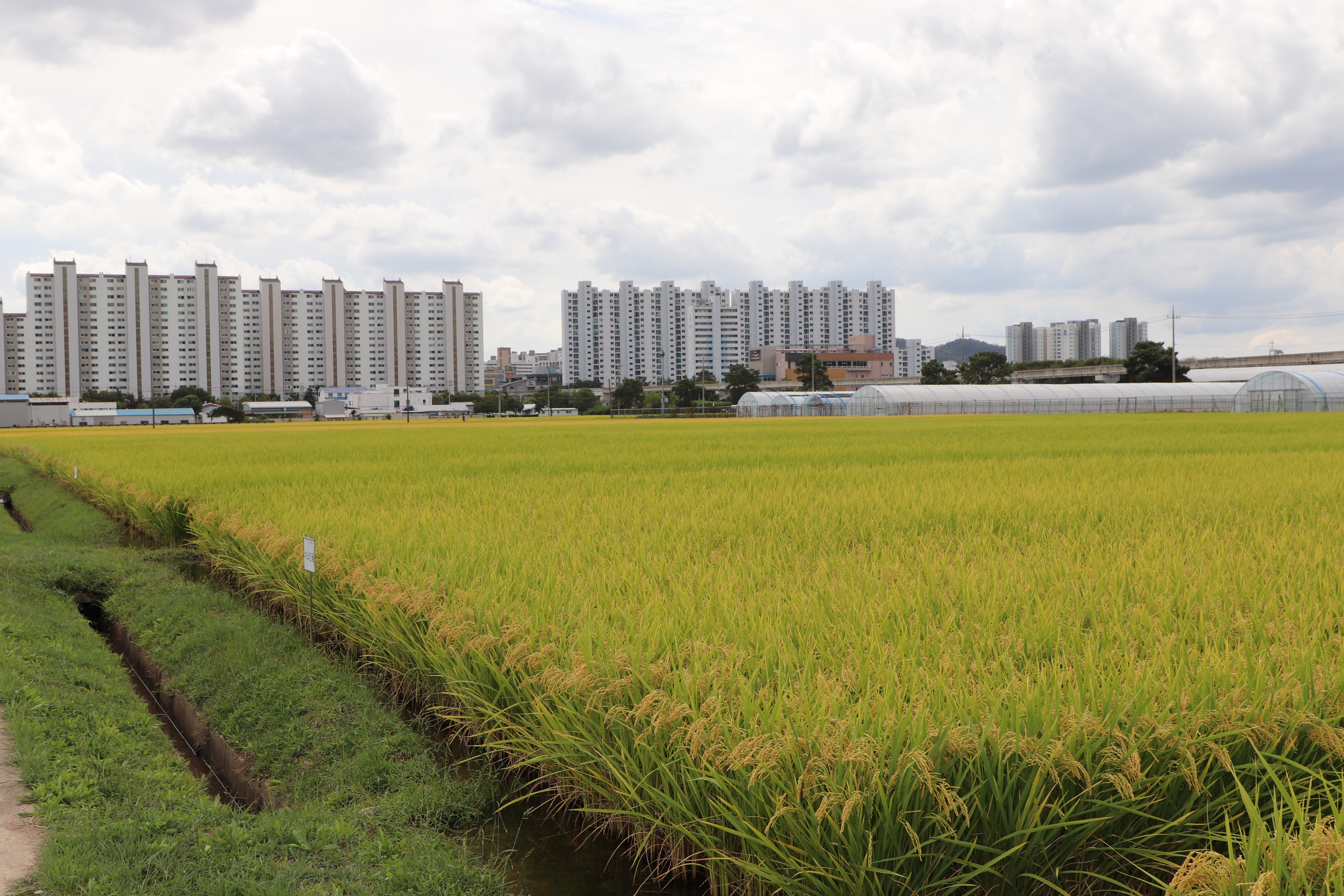 대구광역시 북구 학정동 경상북도 농업기술원 벼 종자(種子) 채종포(採種圃)에, 벼들이 황금색으로 곱게 물들고 있습니다.