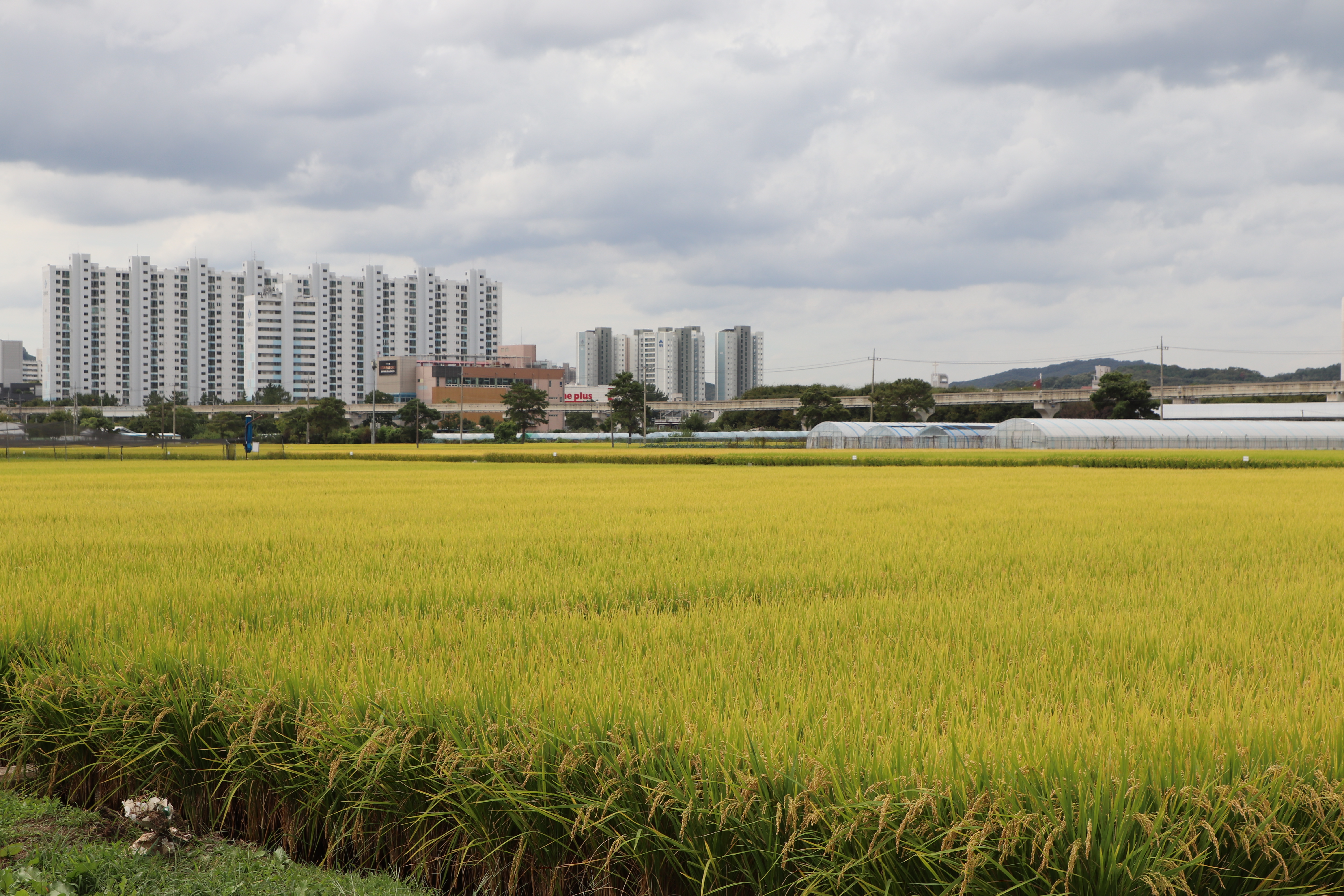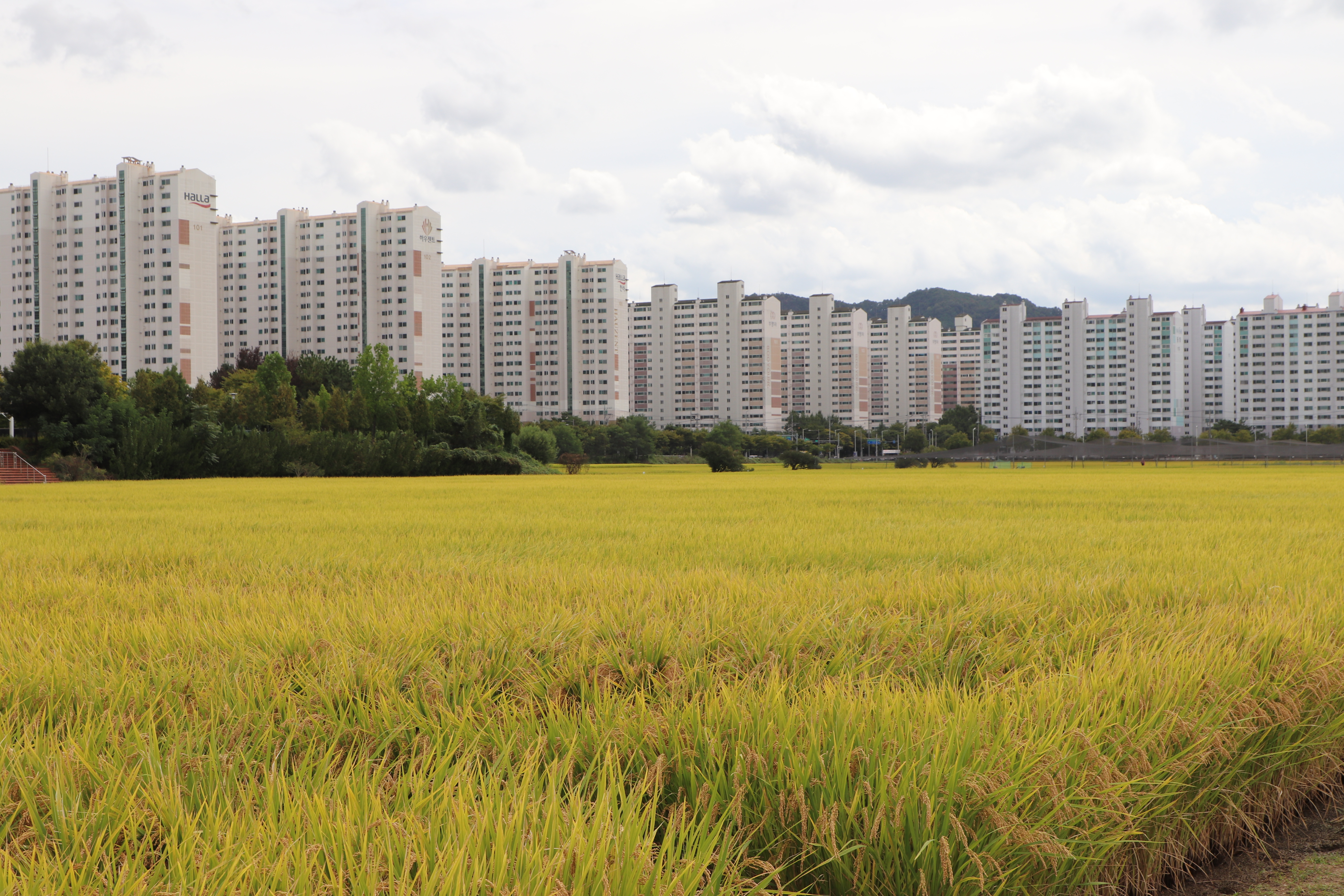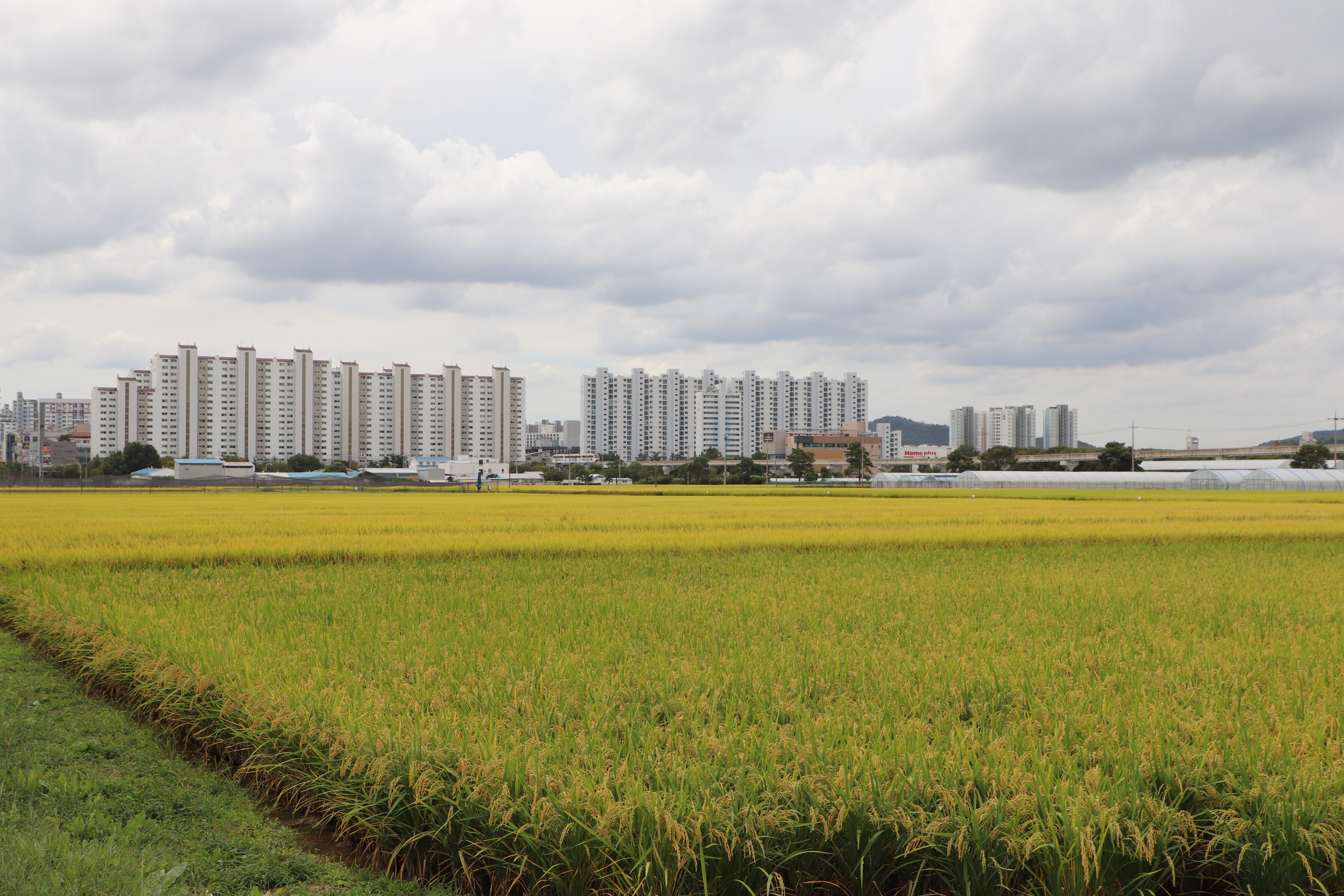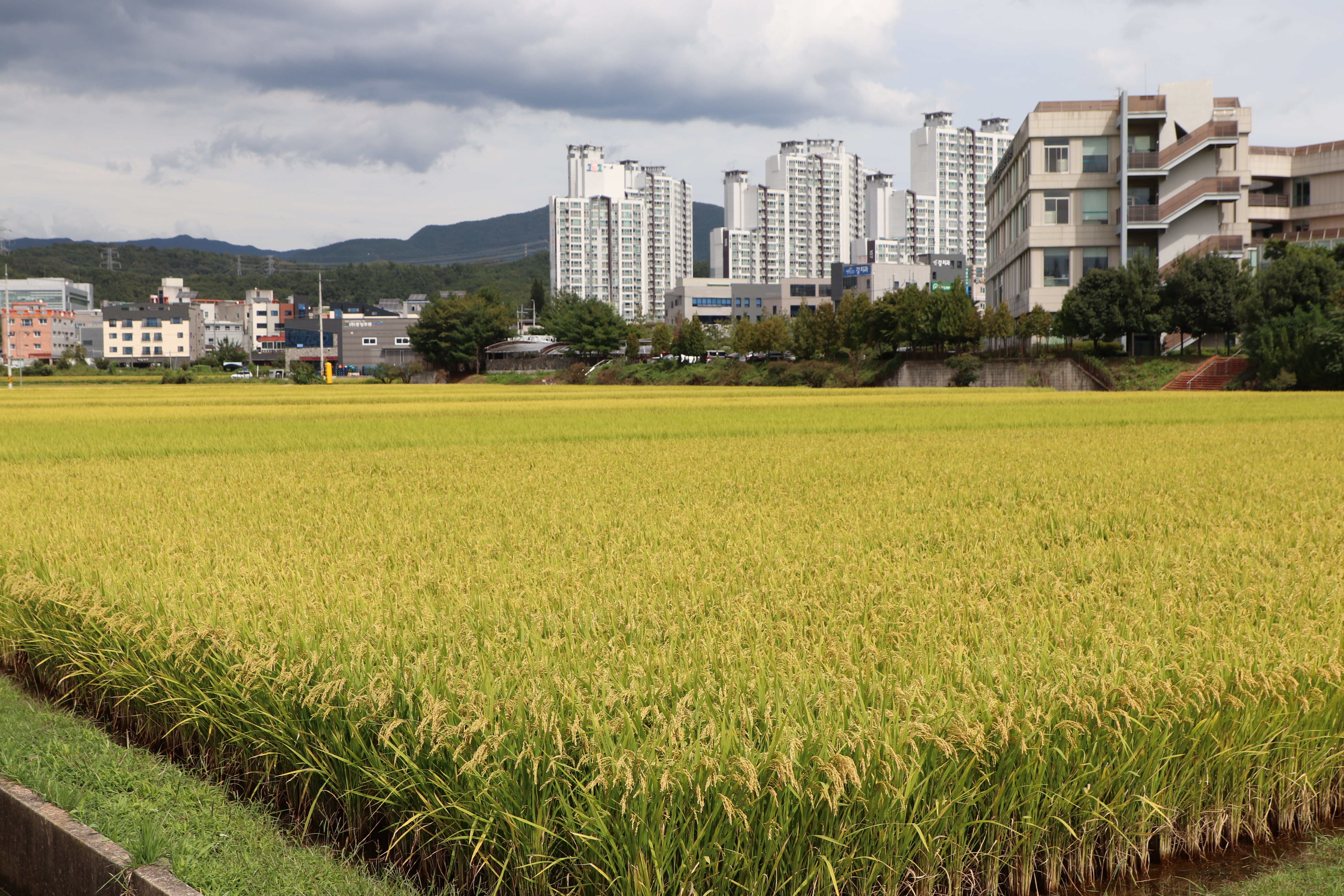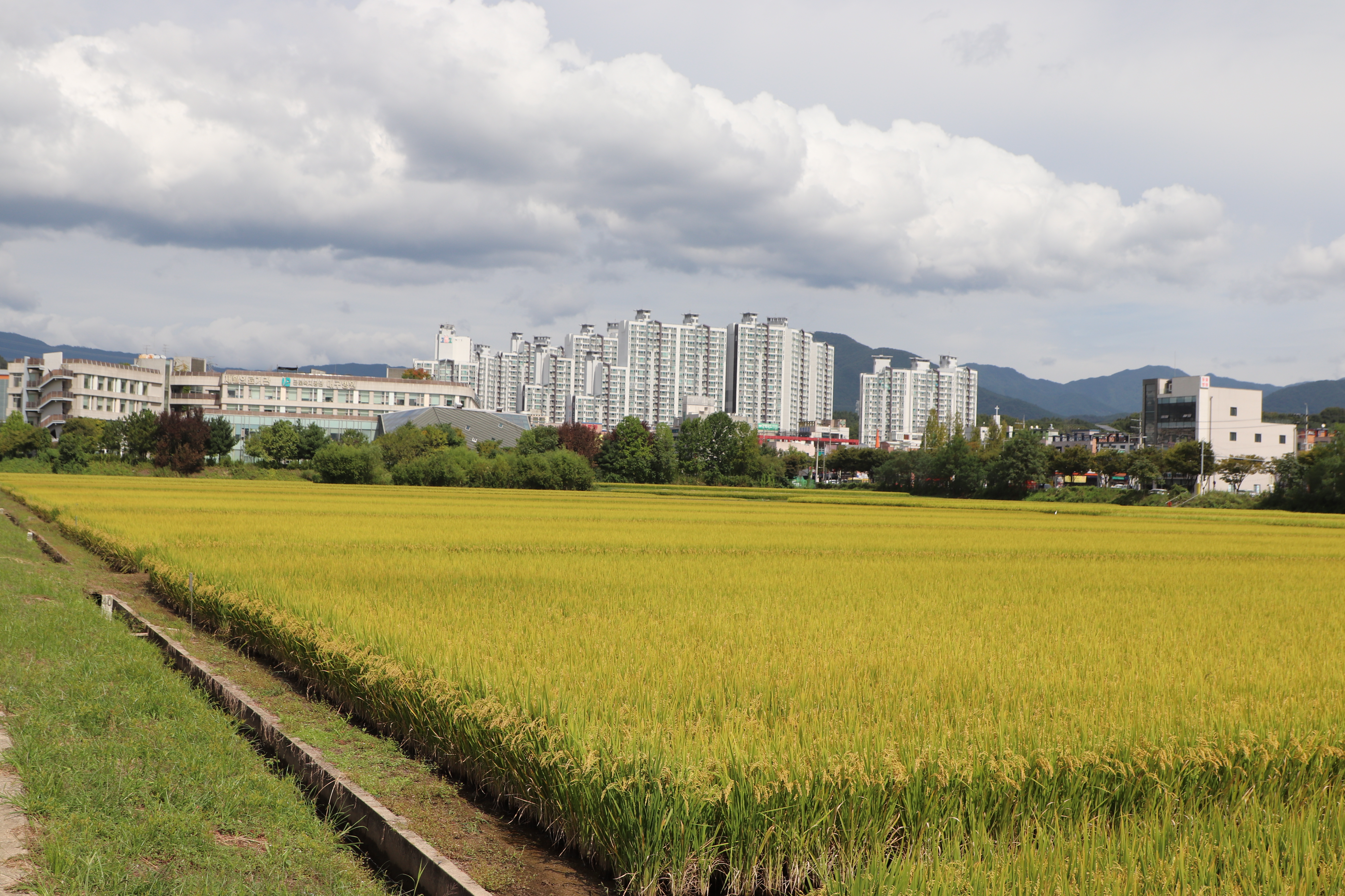 대구광역시 북구 학정동 경상북도 농업기술원 벼 종자(種子) 채종포(採種圃)에, 벼들이 황금색으로 곱게 물들고 있습니다.