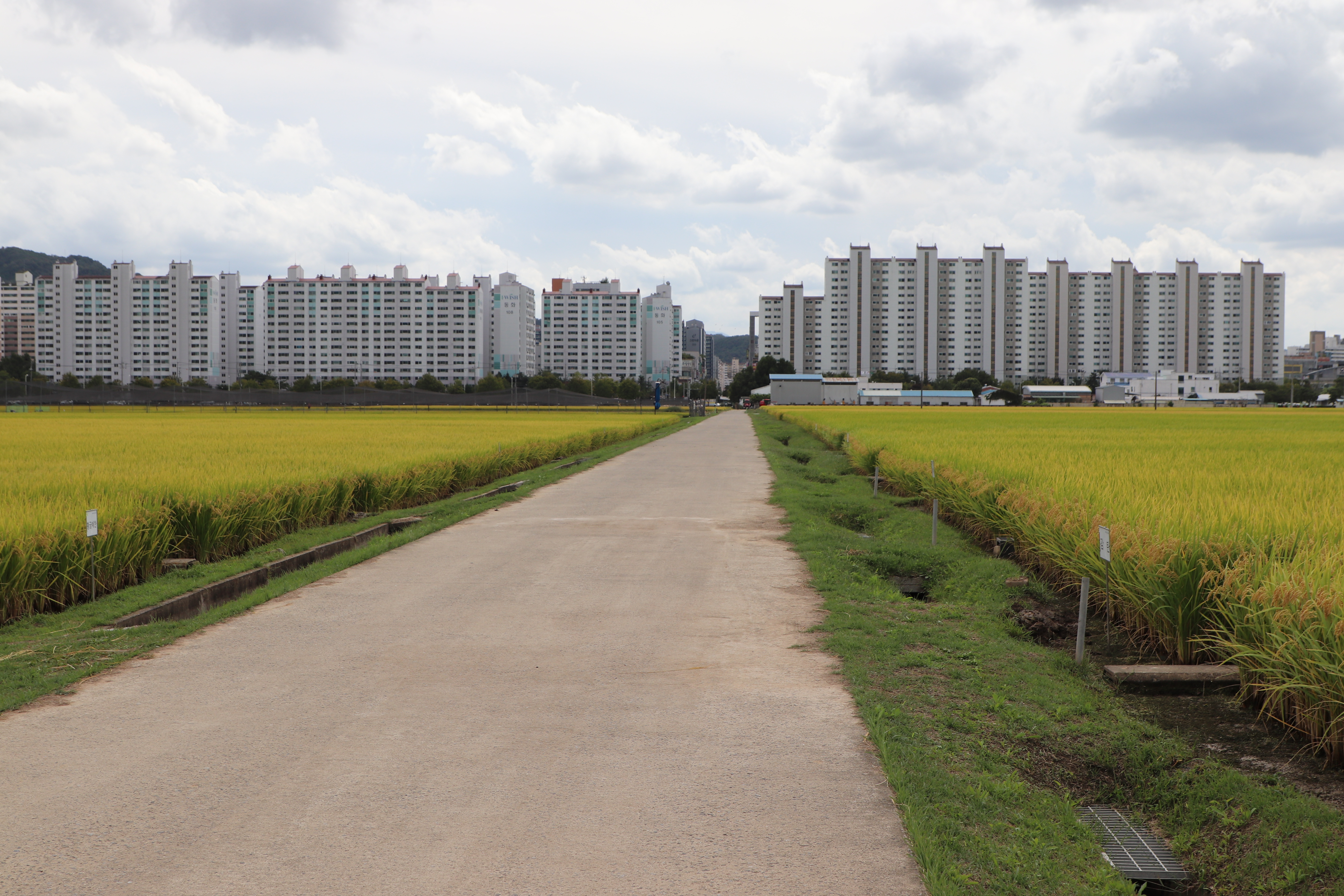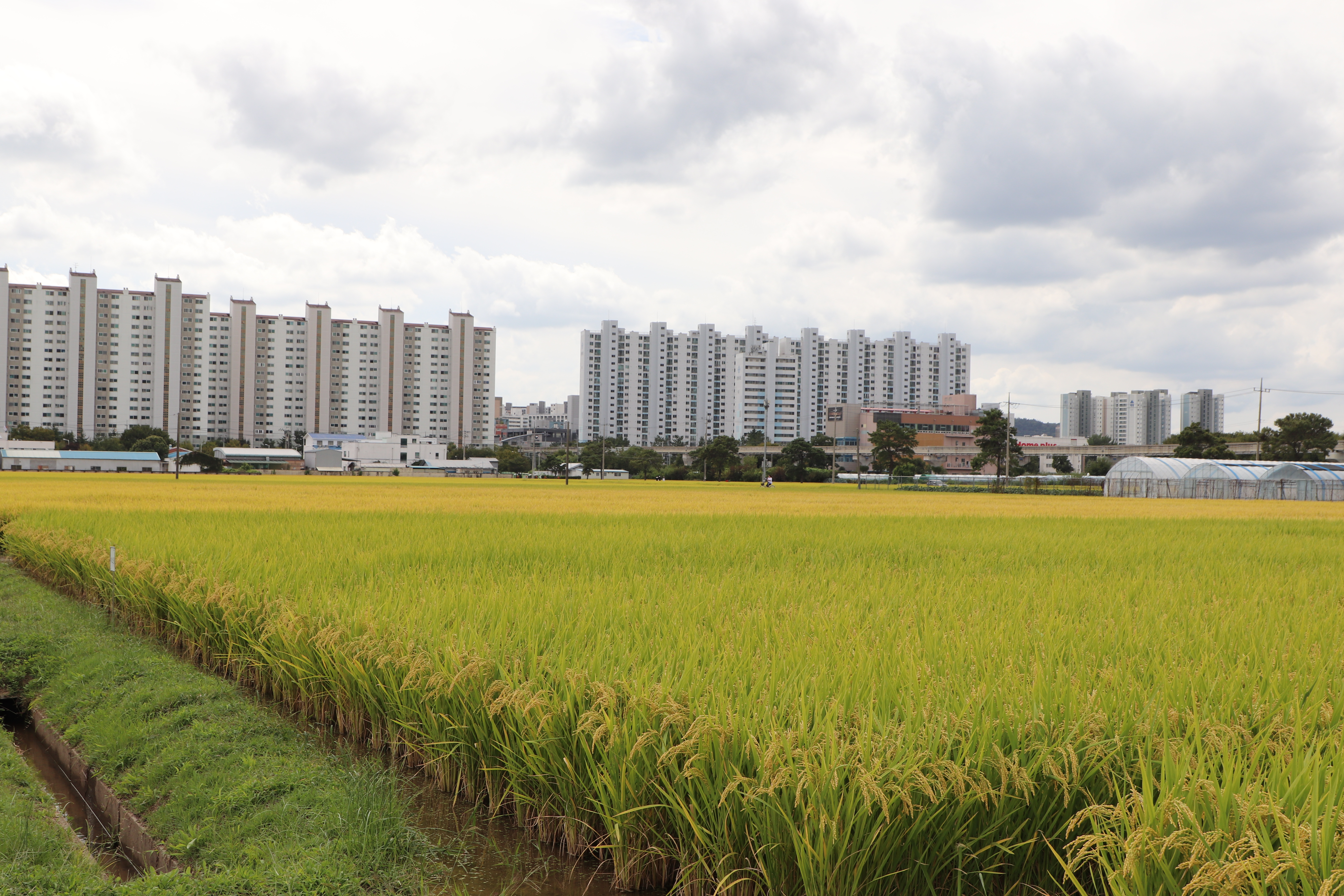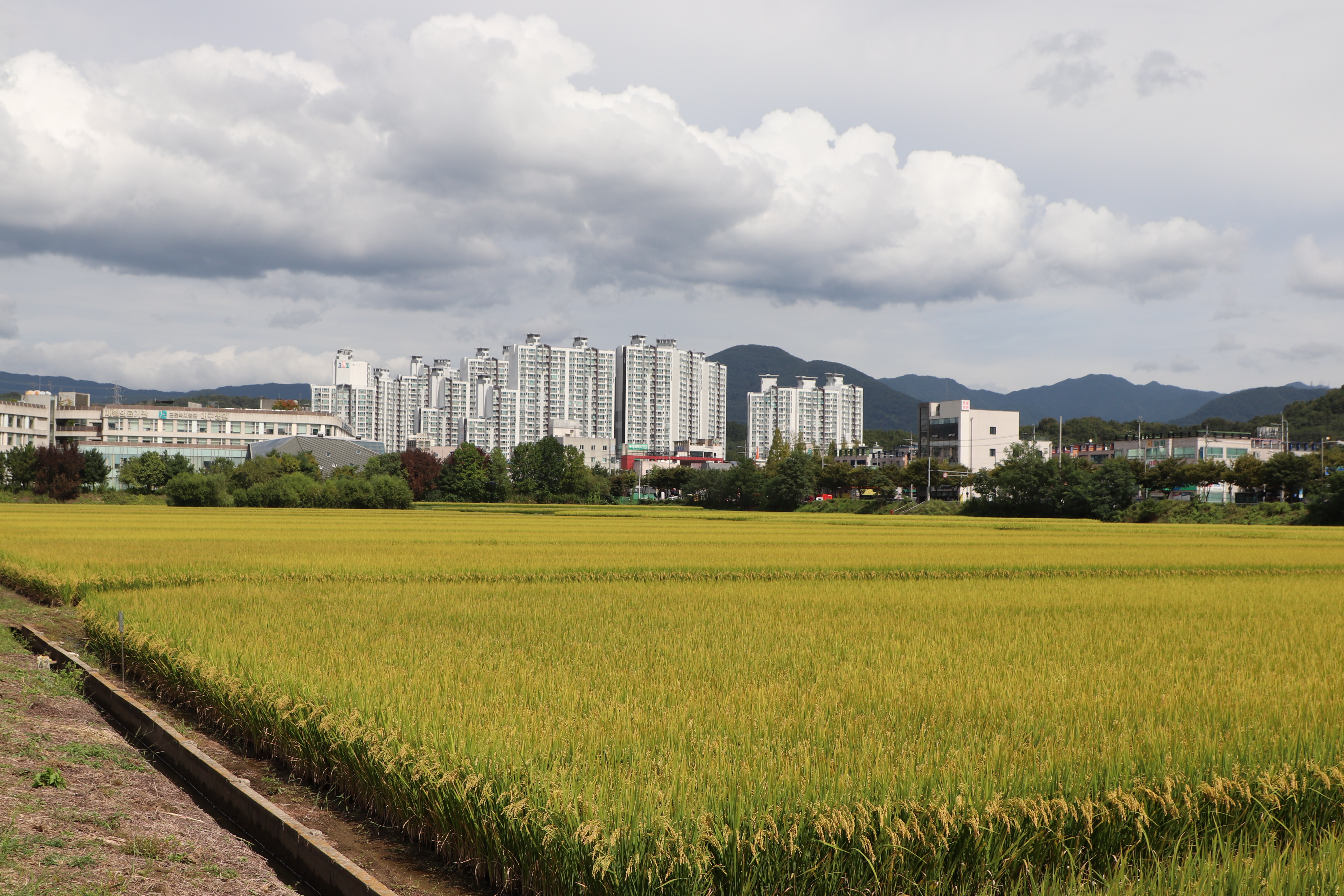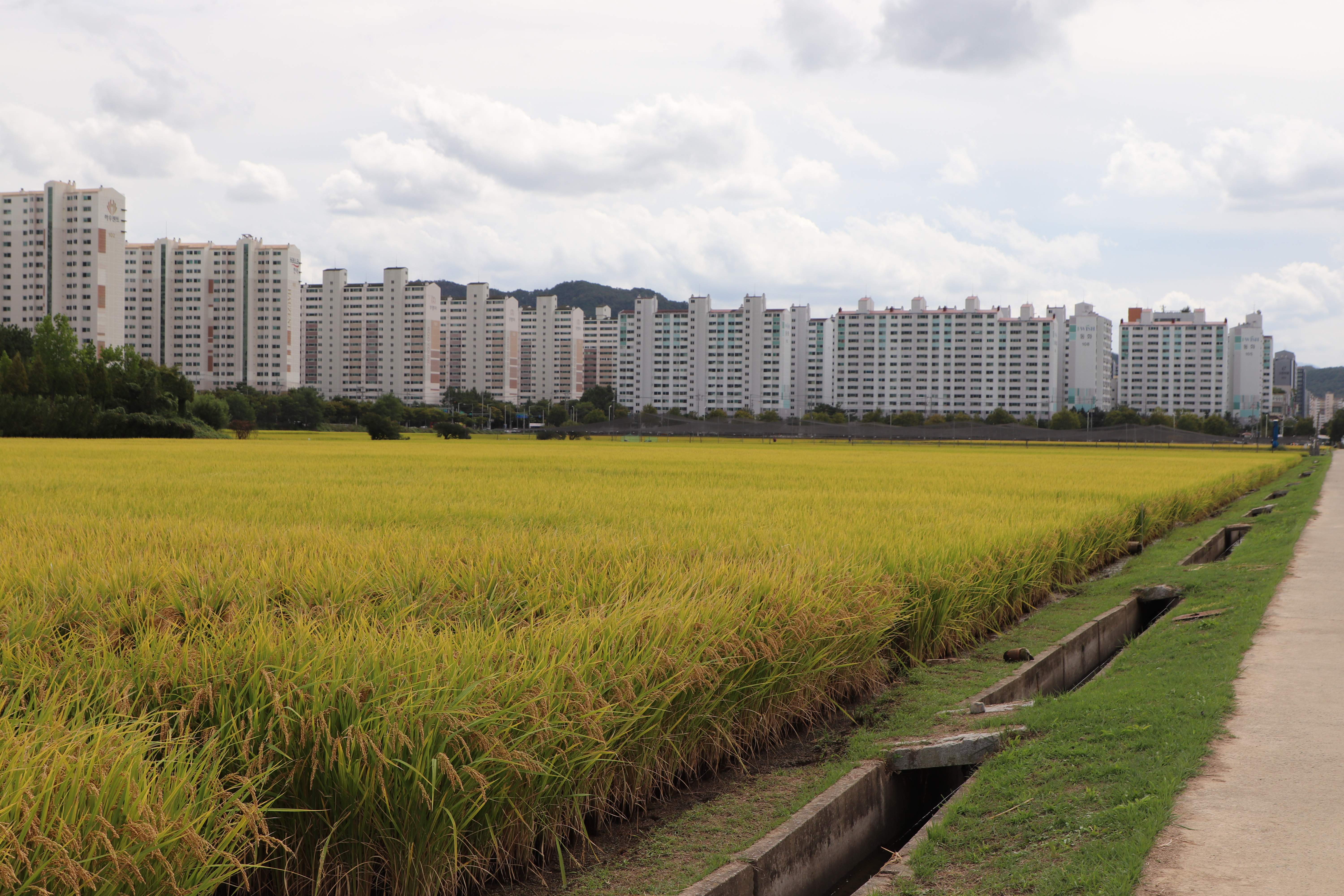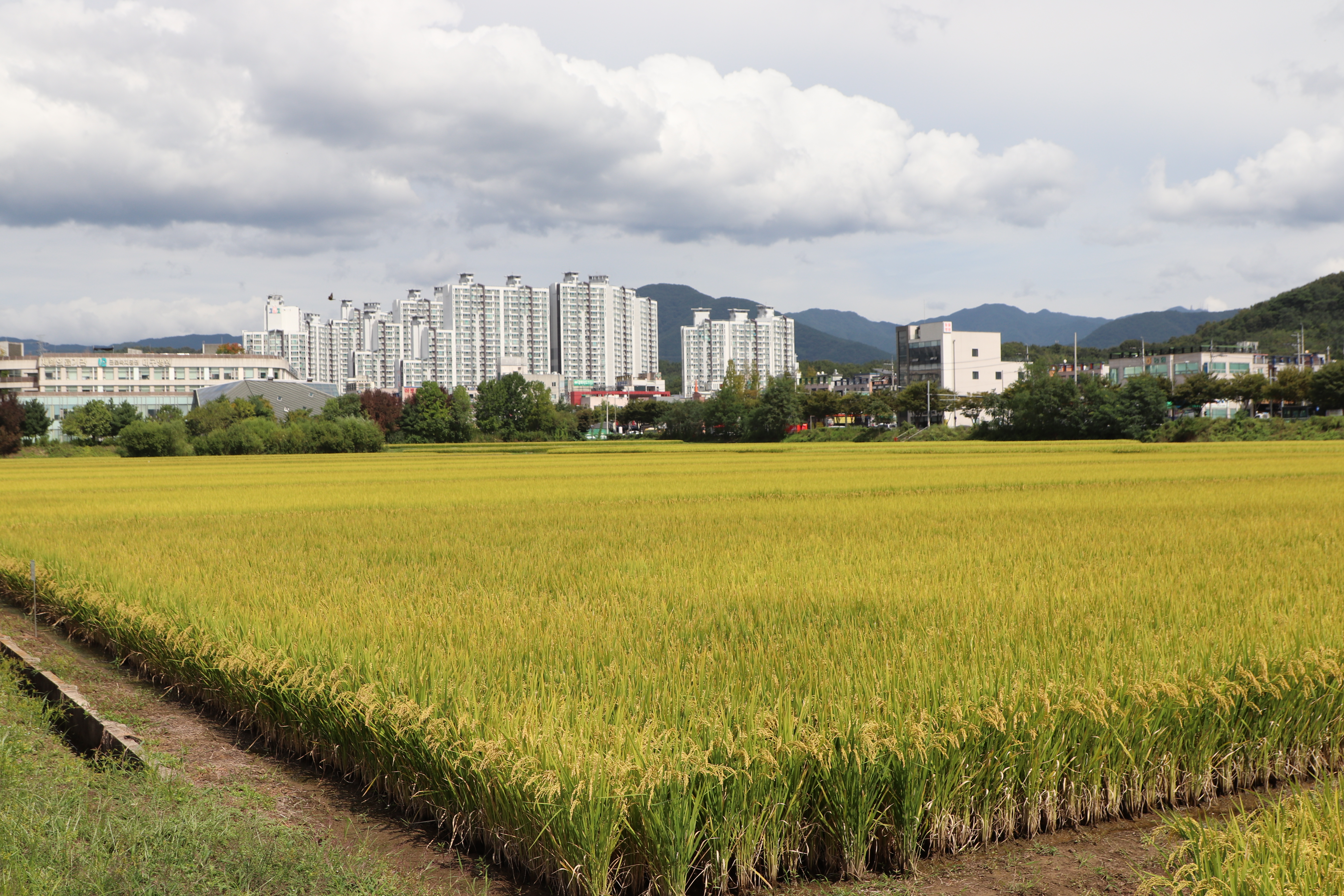 대구광역시 북구 학정동 경상북도 농업기술원 벼 종자(種子) 채종포(採種圃)에, 벼들이 황금색으로 곱게 물들고 있습니다.