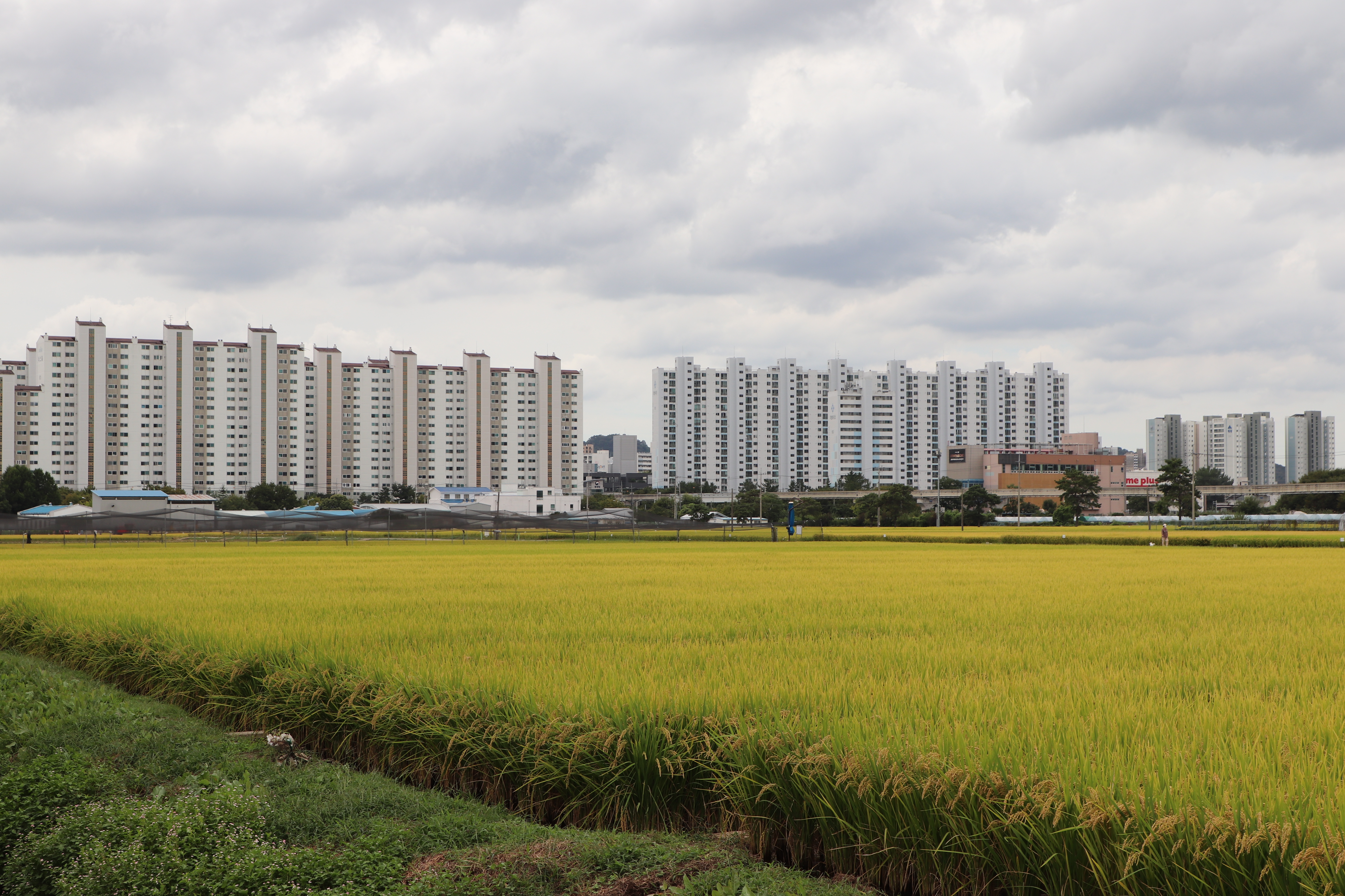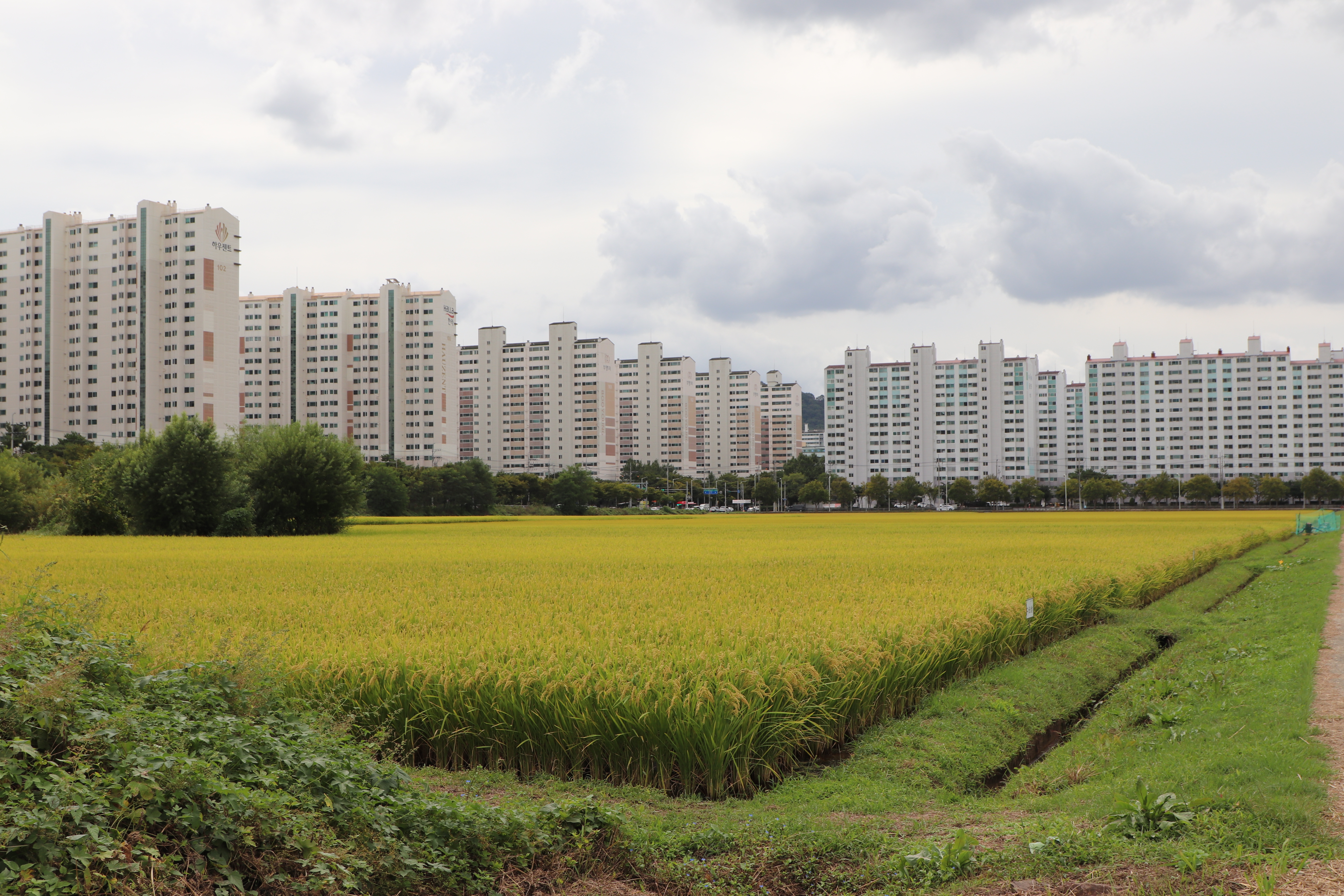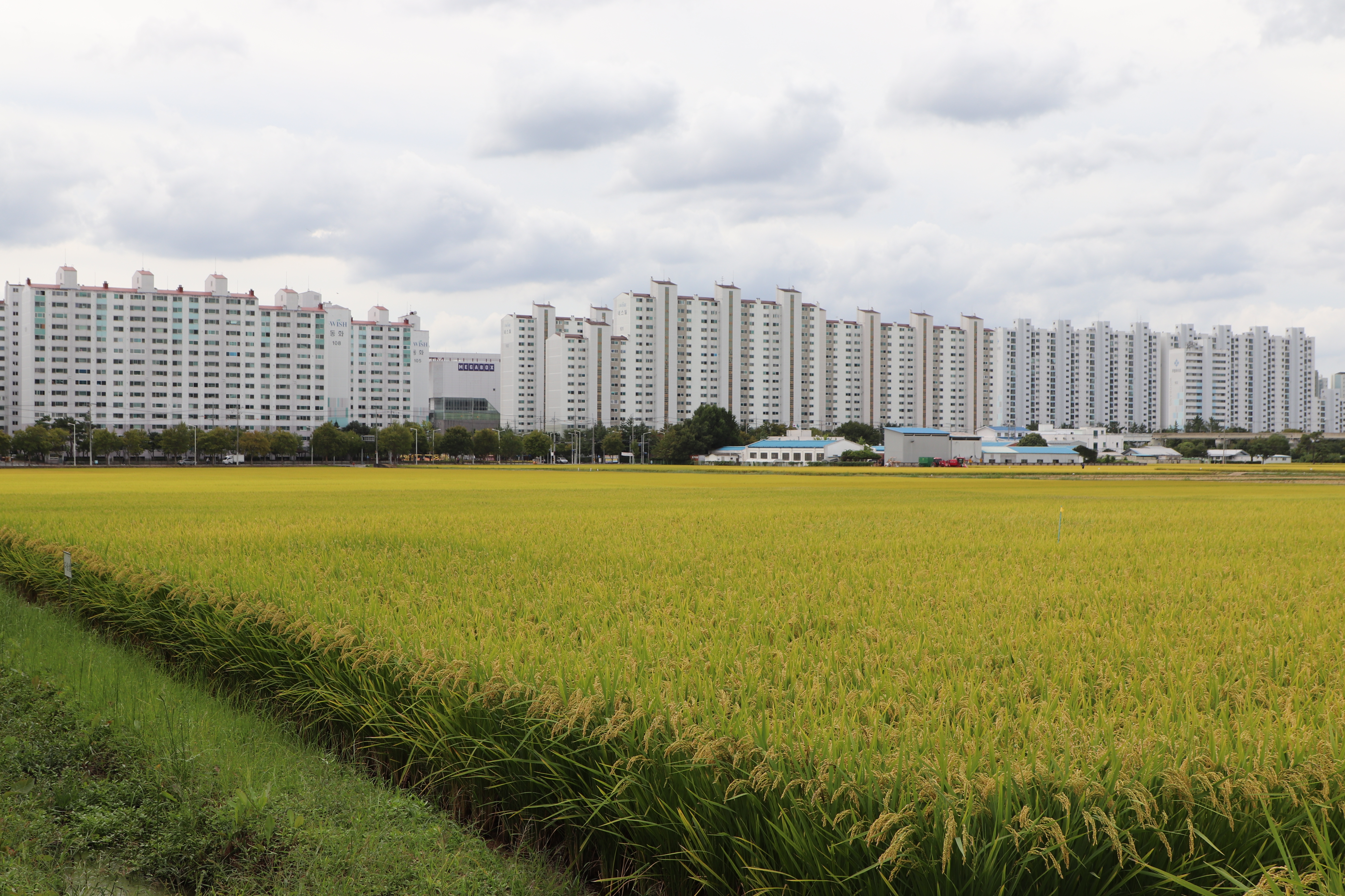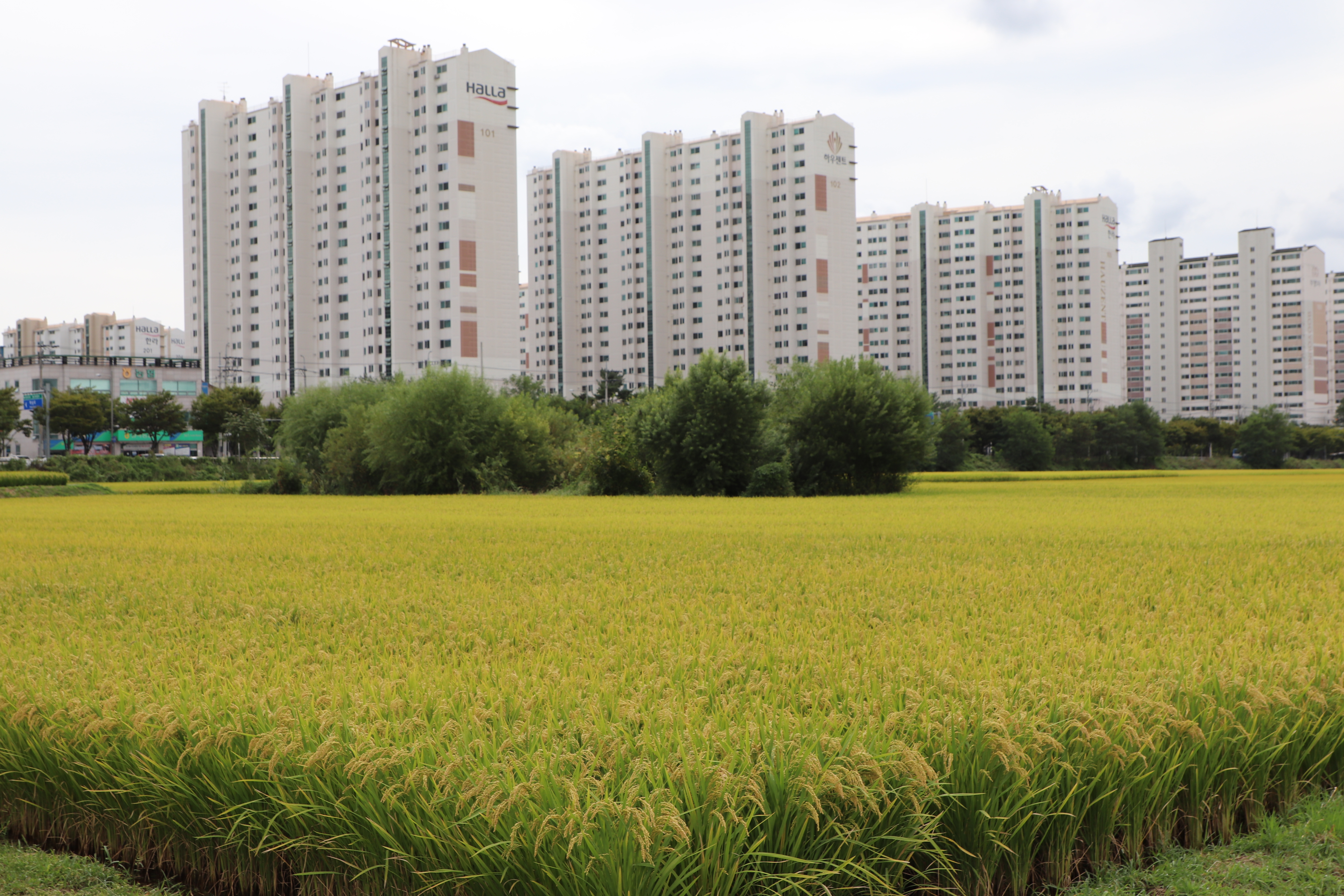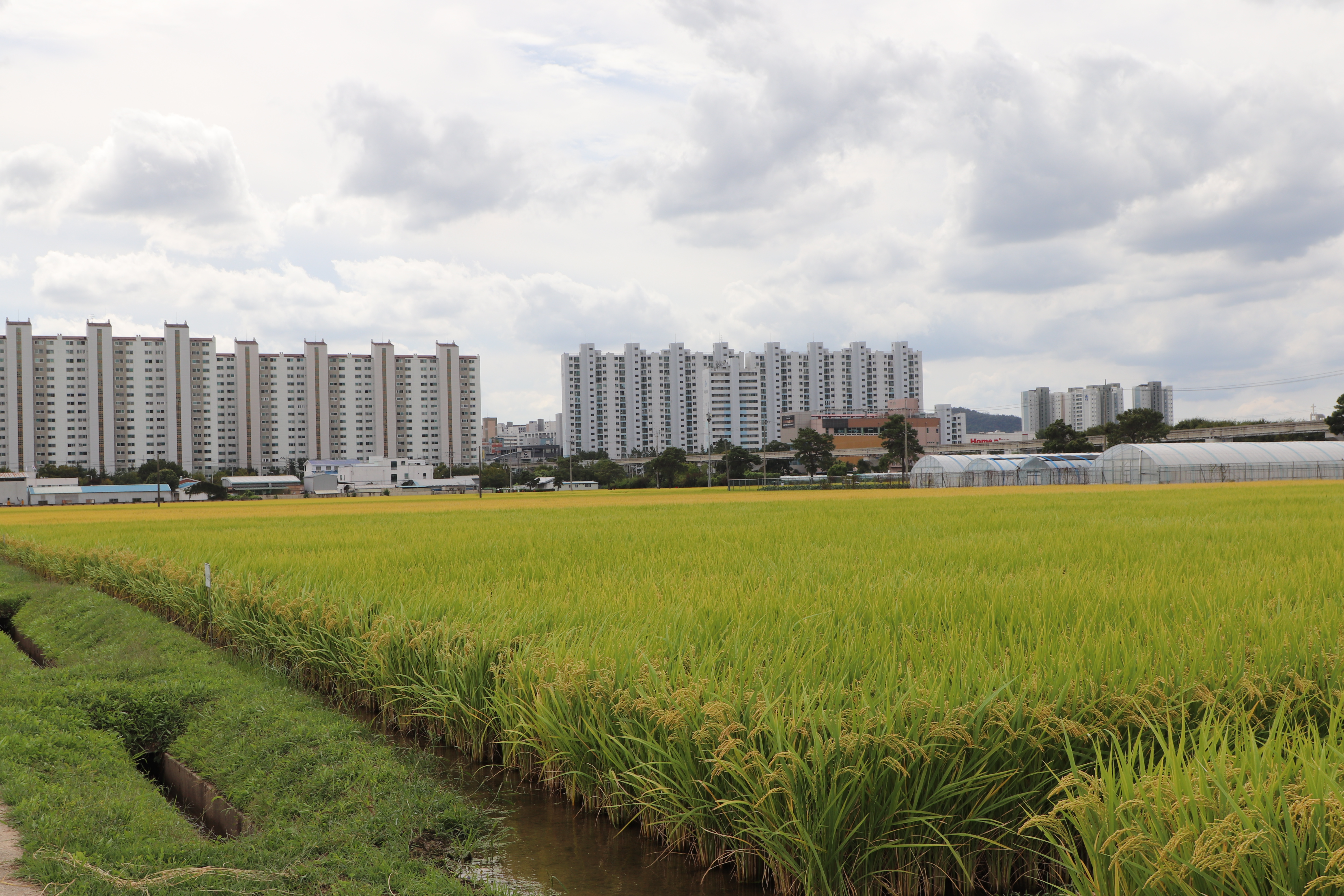 대구광역시 북구 학정동 경상북도 농업기술원 벼 종자(種子) 채종포(採種圃)에, 벼들이 황금색으로 곱게 물들고 있습니다.