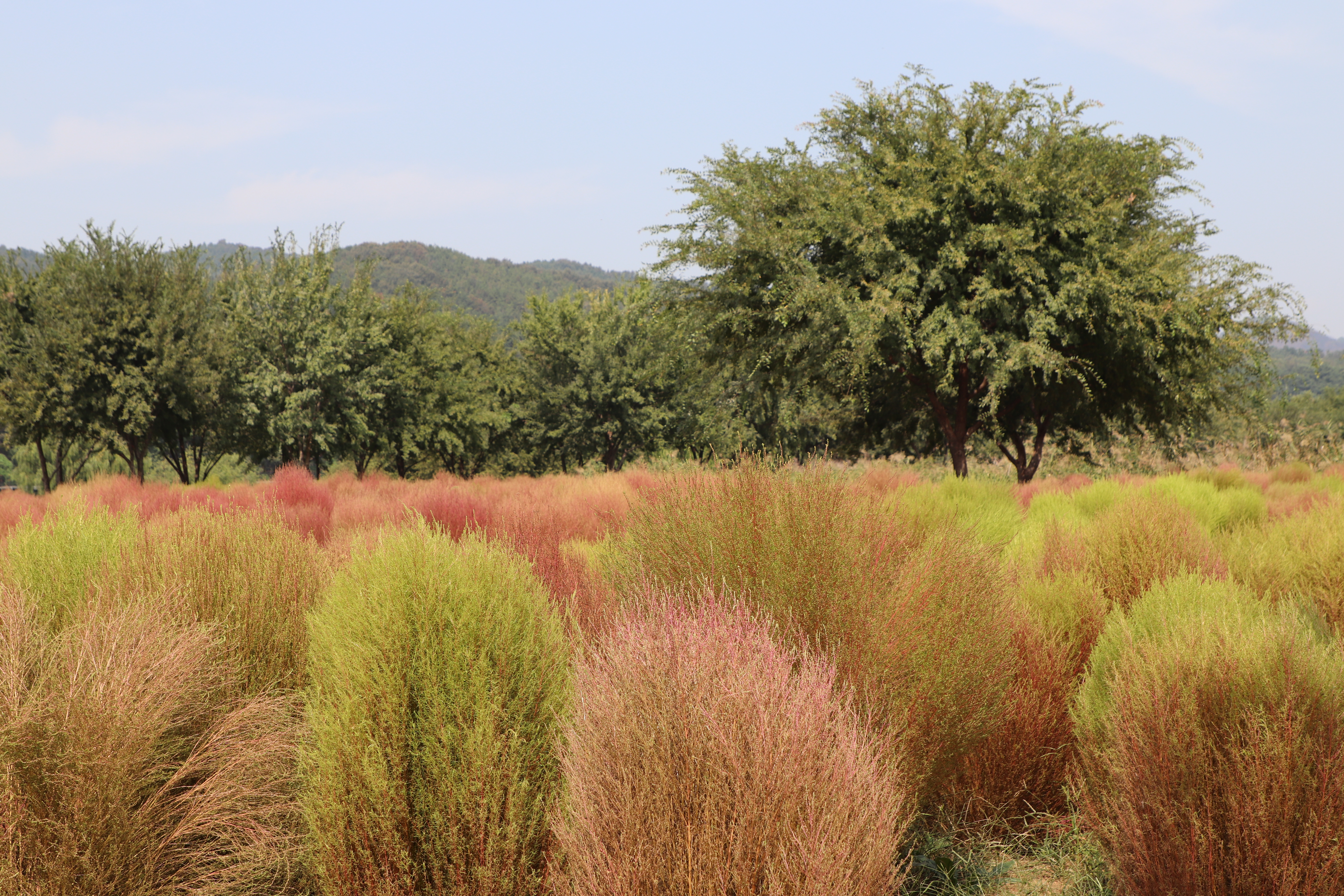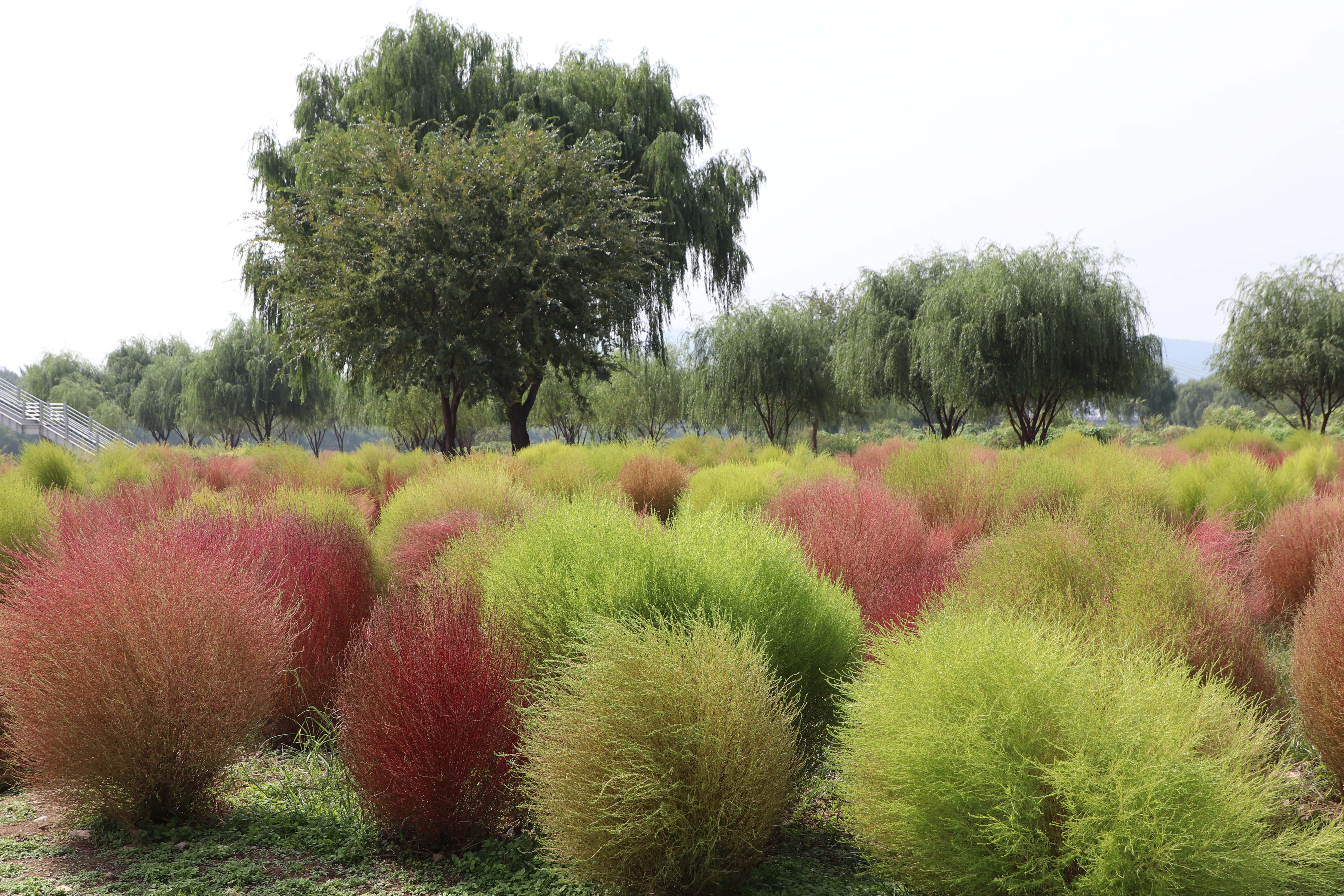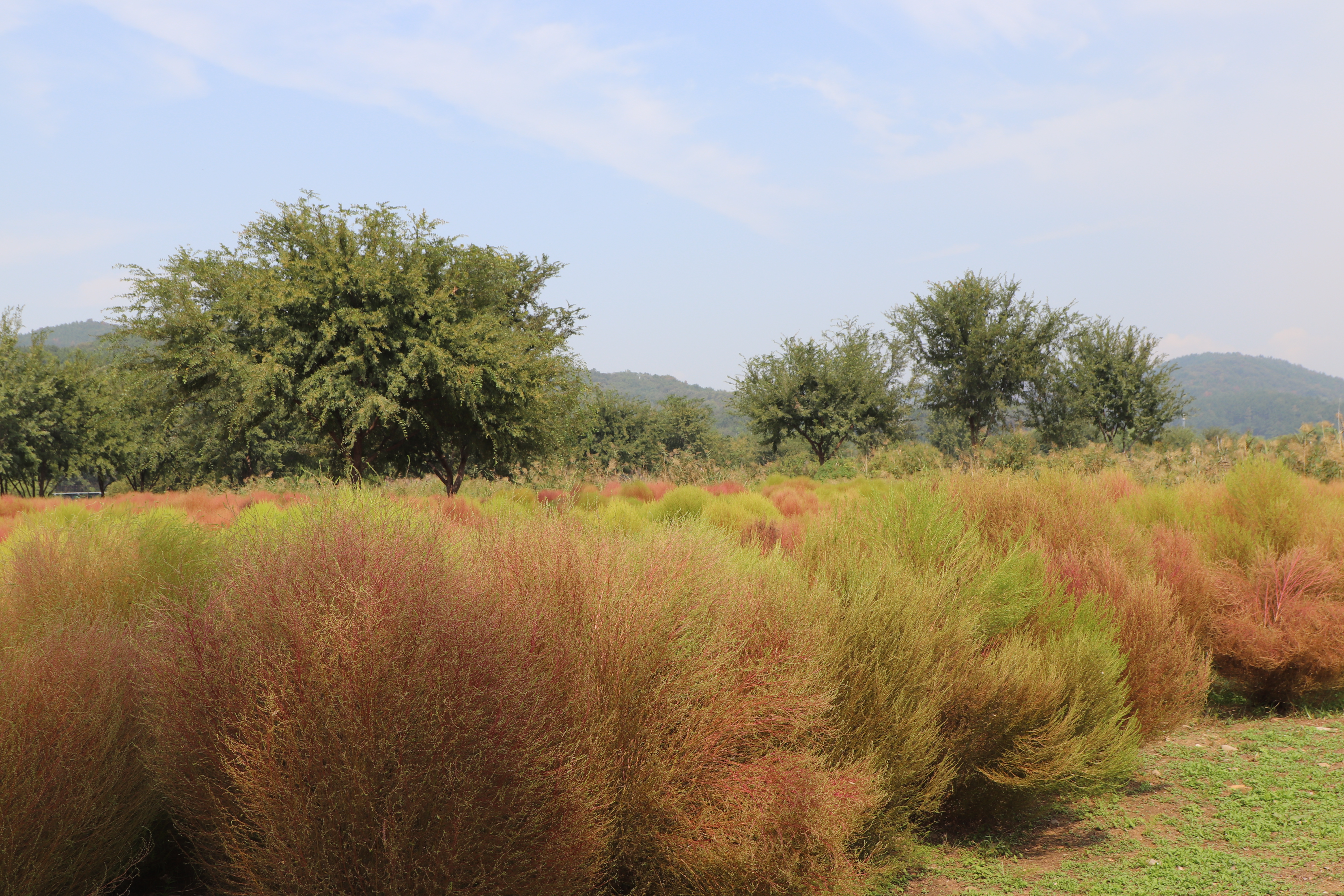 대구광역시 북구 금호강 하중도 댑싸리 밭입니다. 여름 내내 초록색으로 싱그러움을 더하던 댑싸리도, 선선한 바람이 불어오는 가을에 맞추어 붉은색으로 서서히 곱게 물들고 있습니다.