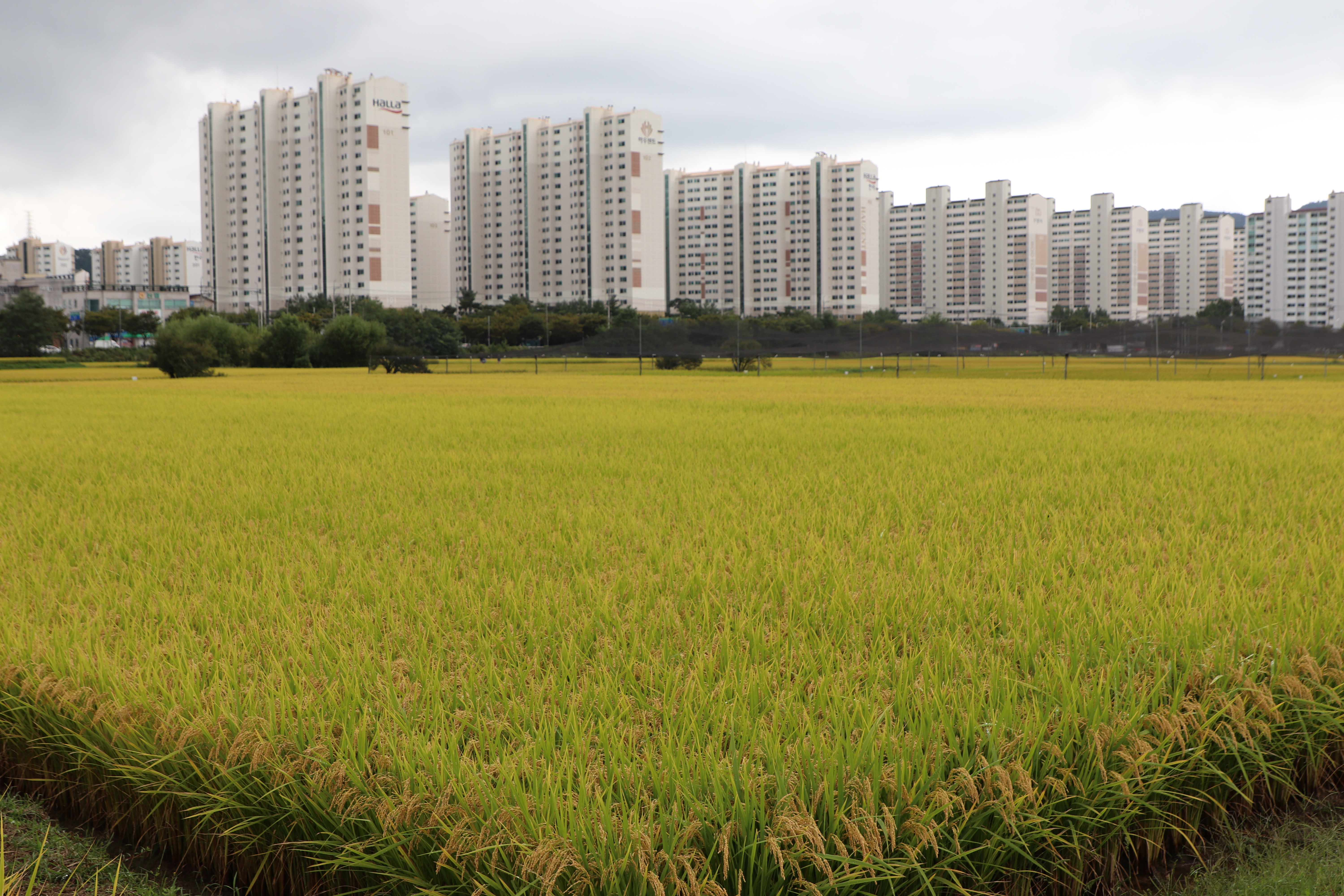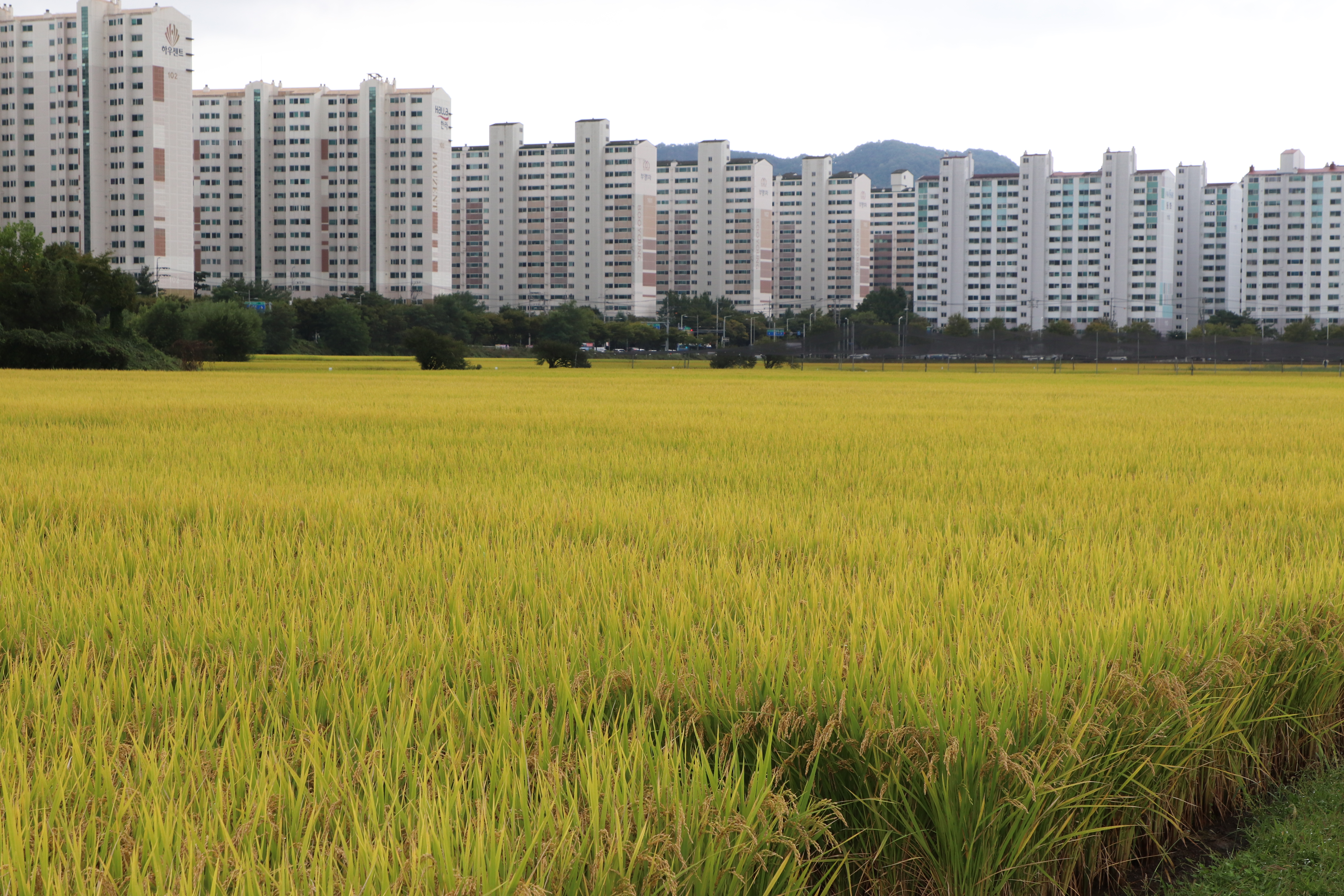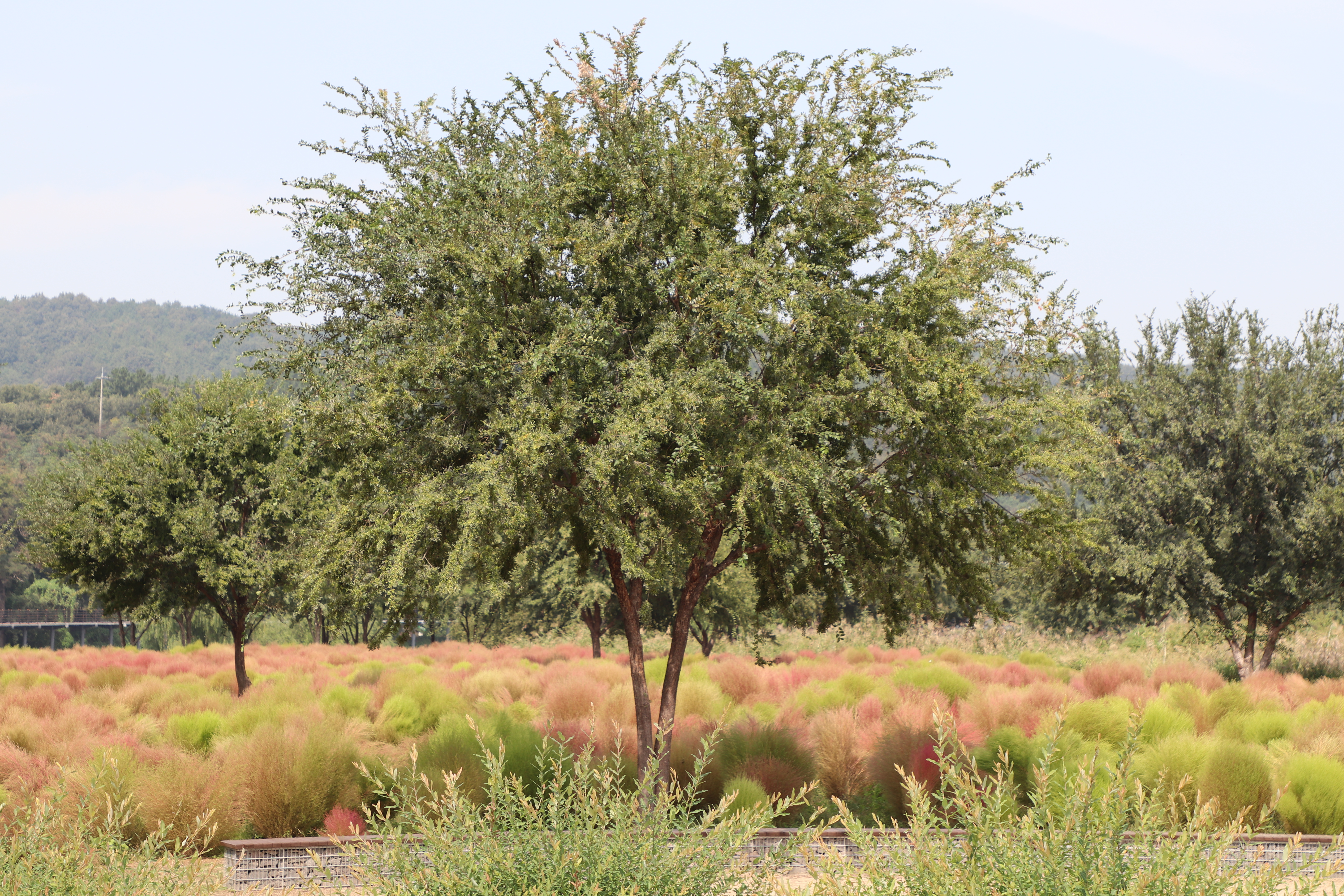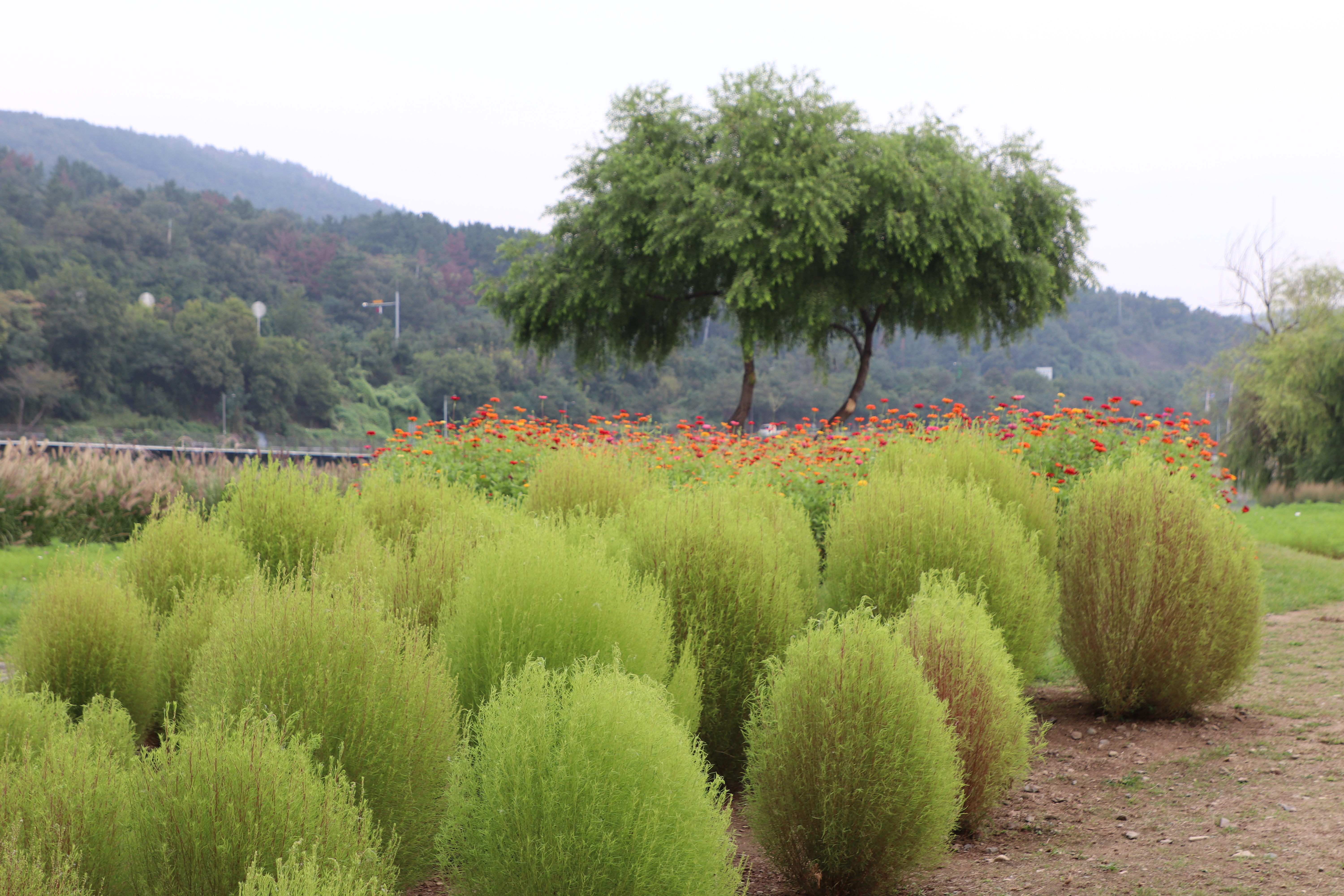 대구광역시 북구 금호강 하중도 댑싸리 밭입니다. 여름 내내 초록색으로 싱그러움을 더하던 댑싸리도, 선선한 바람이 불어오는 가을에 맞추어 붉은색으로 서서히 곱게 물들고 있습니다.
