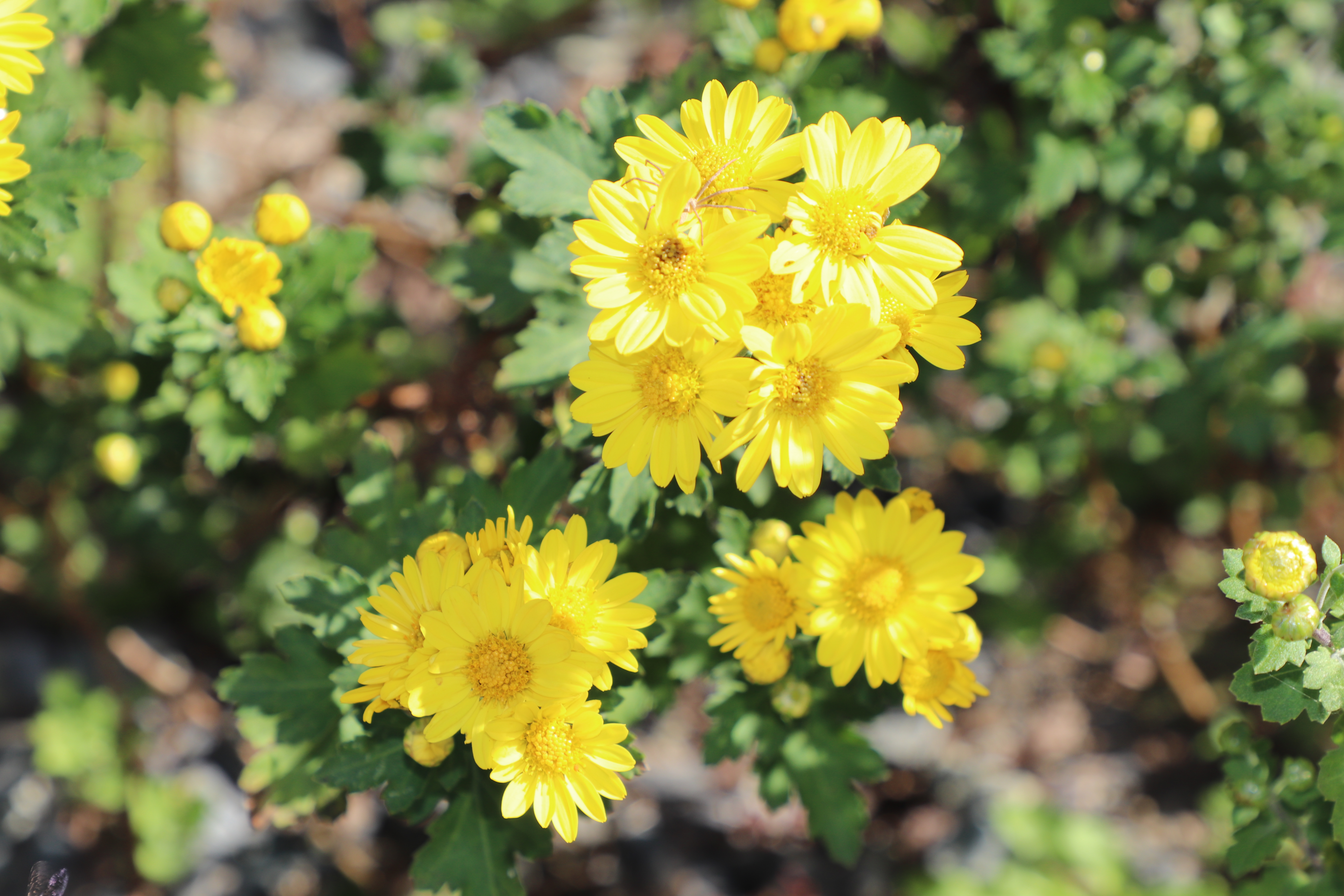 우리나라 야생종(野生種) 감국(甘菊)입니다. 매년 가을철이면 우리나라 산이나 들녘에서 흔하게 볼 수 있는 토종(土種) 야생종(野生種) 국화(菊花)입니다. 감국(甘菊)은 단맛이 강하여 꽃송이를 채취하여 말려 국화차로 이용하거나 국화전(菊花煎) 등 식용으로 많이 이용합니다. 특히 감국(甘菊)은 산국(山菊)에 비해 꽃송이가 더 큰 것이 특징입니다.