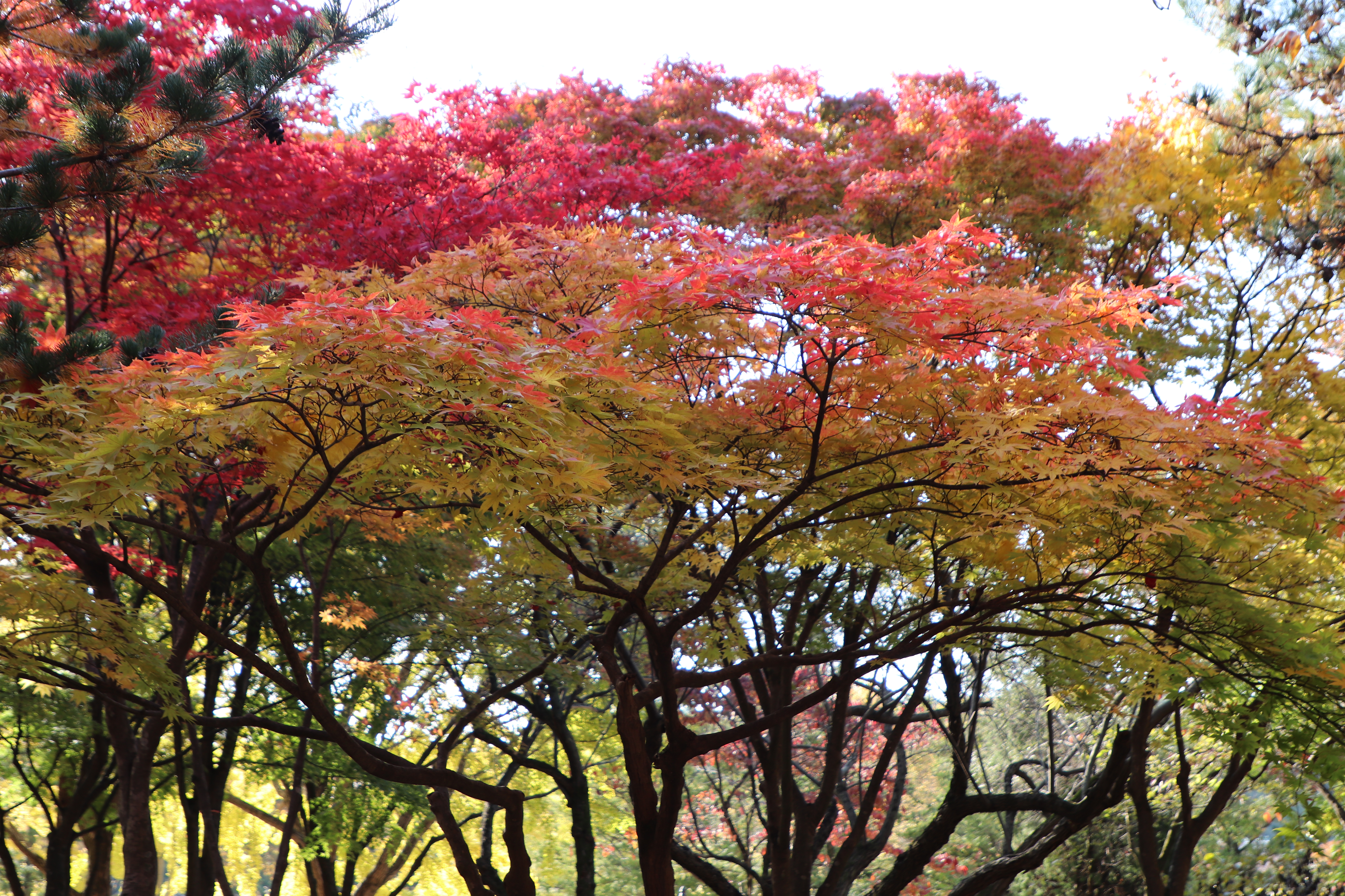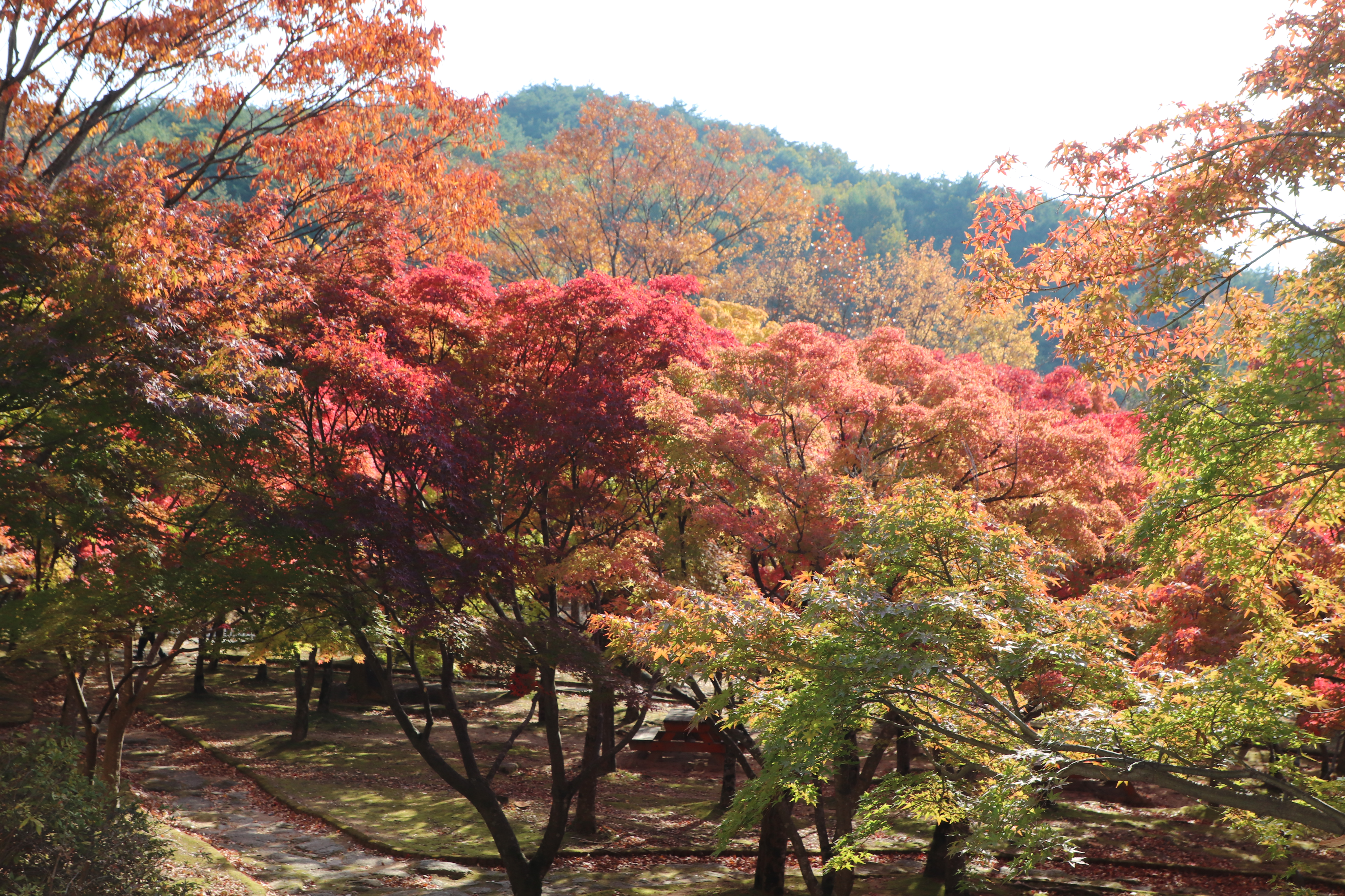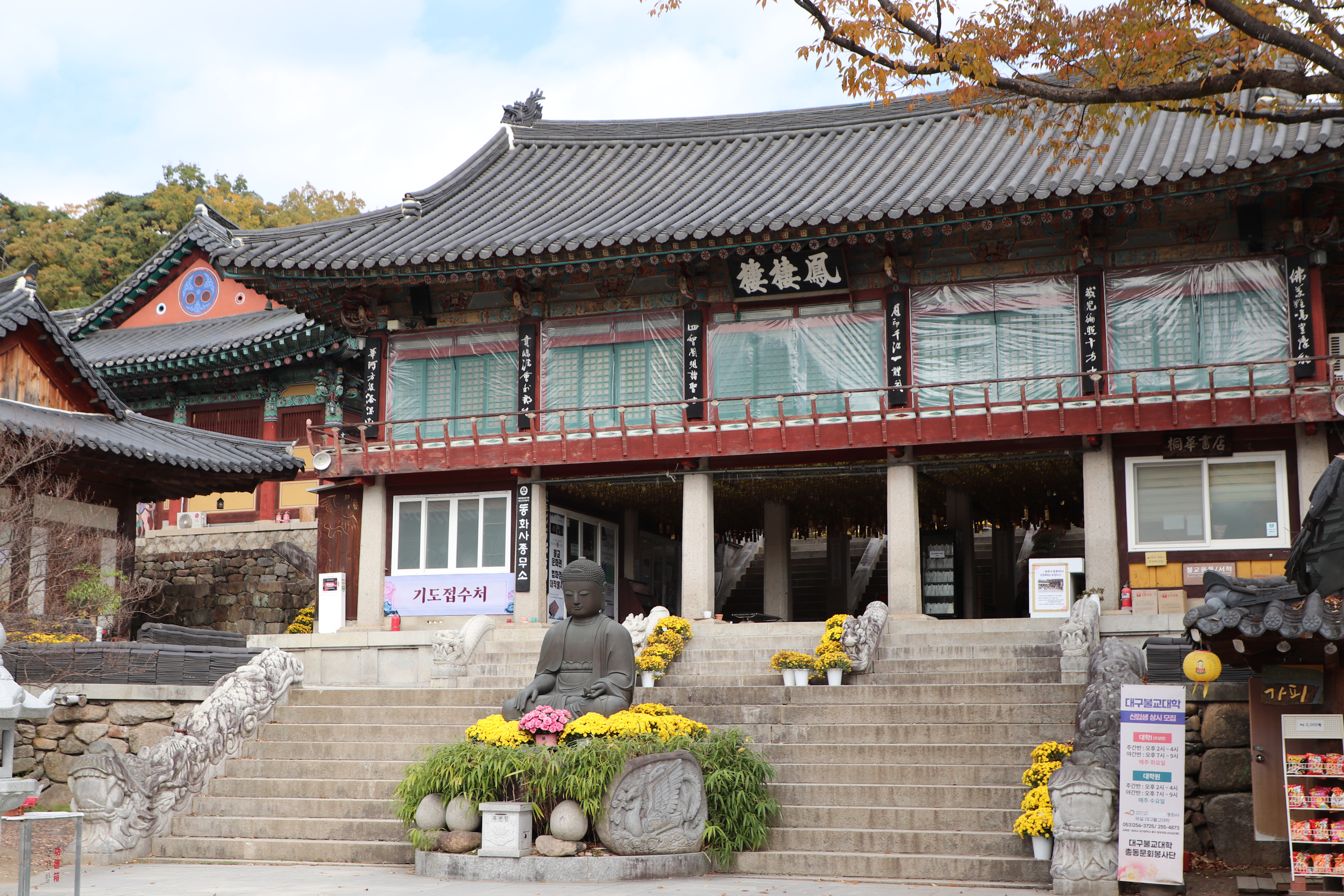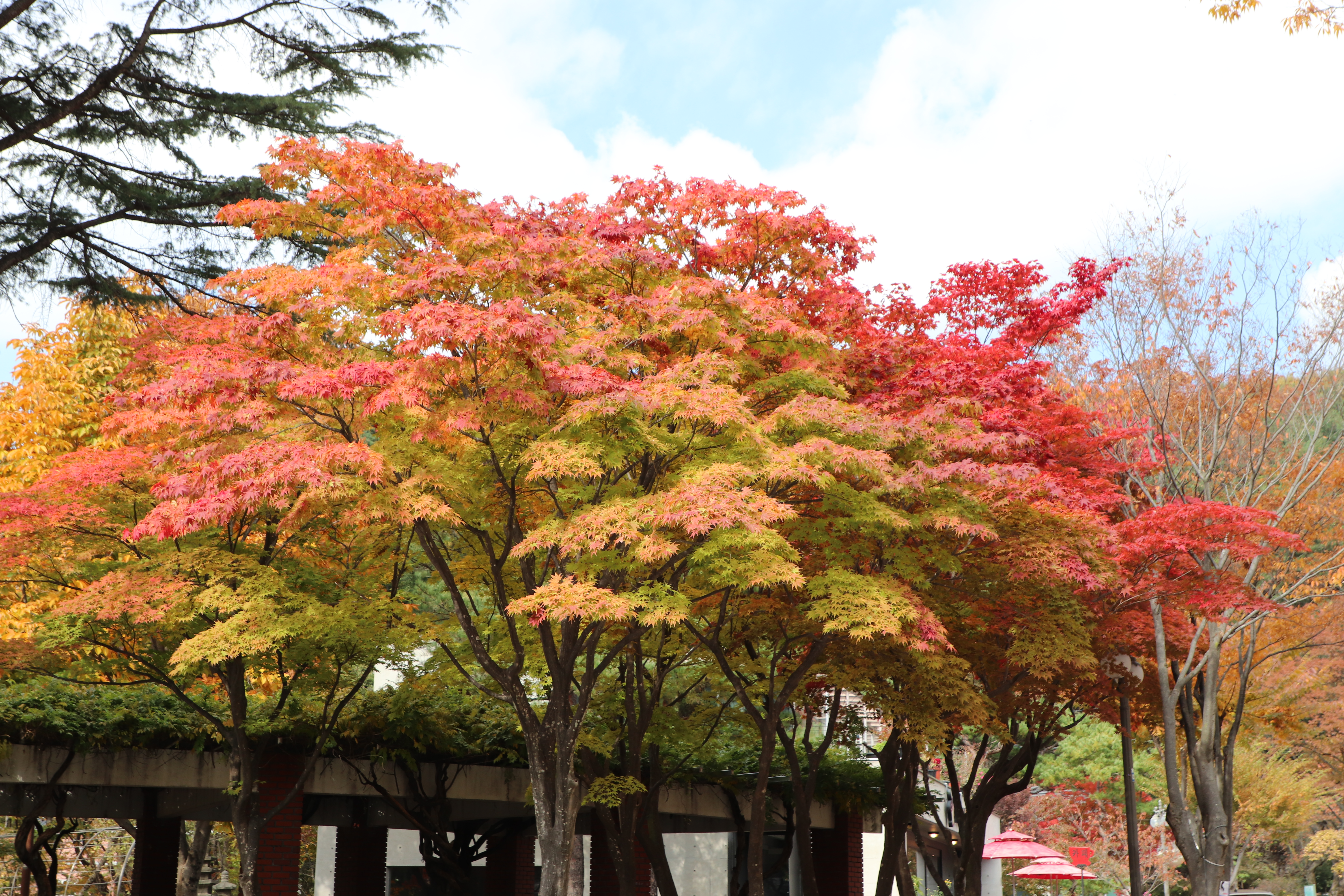 대구광역시 팔공산 국립공원 동화사 시설 지구에 아름답게 물던 가을 단풍 풍경입니다. 동화사 시설 지구 단풍은 이번 주말까지는 볼 수 있을 것 같습니다.