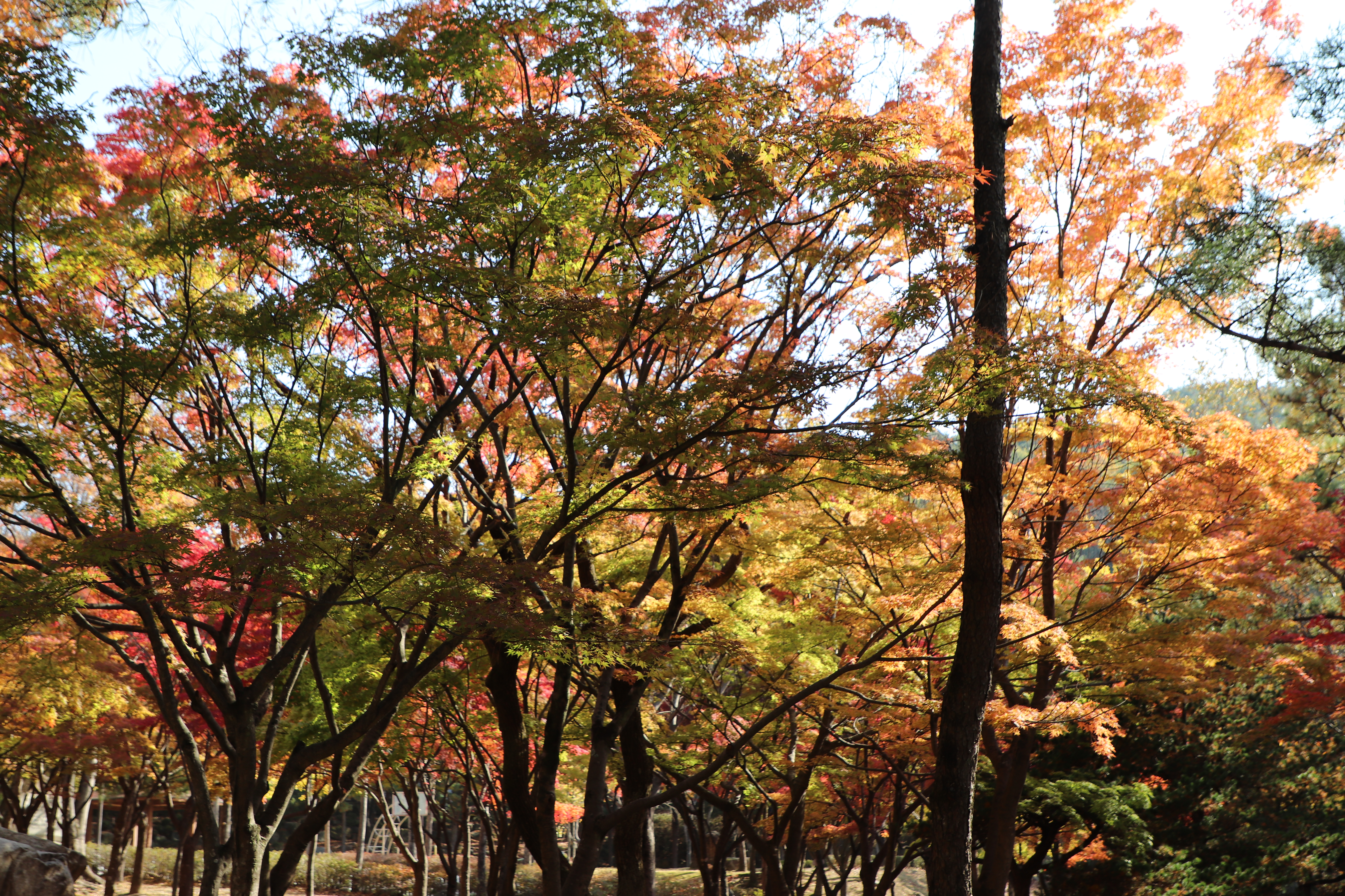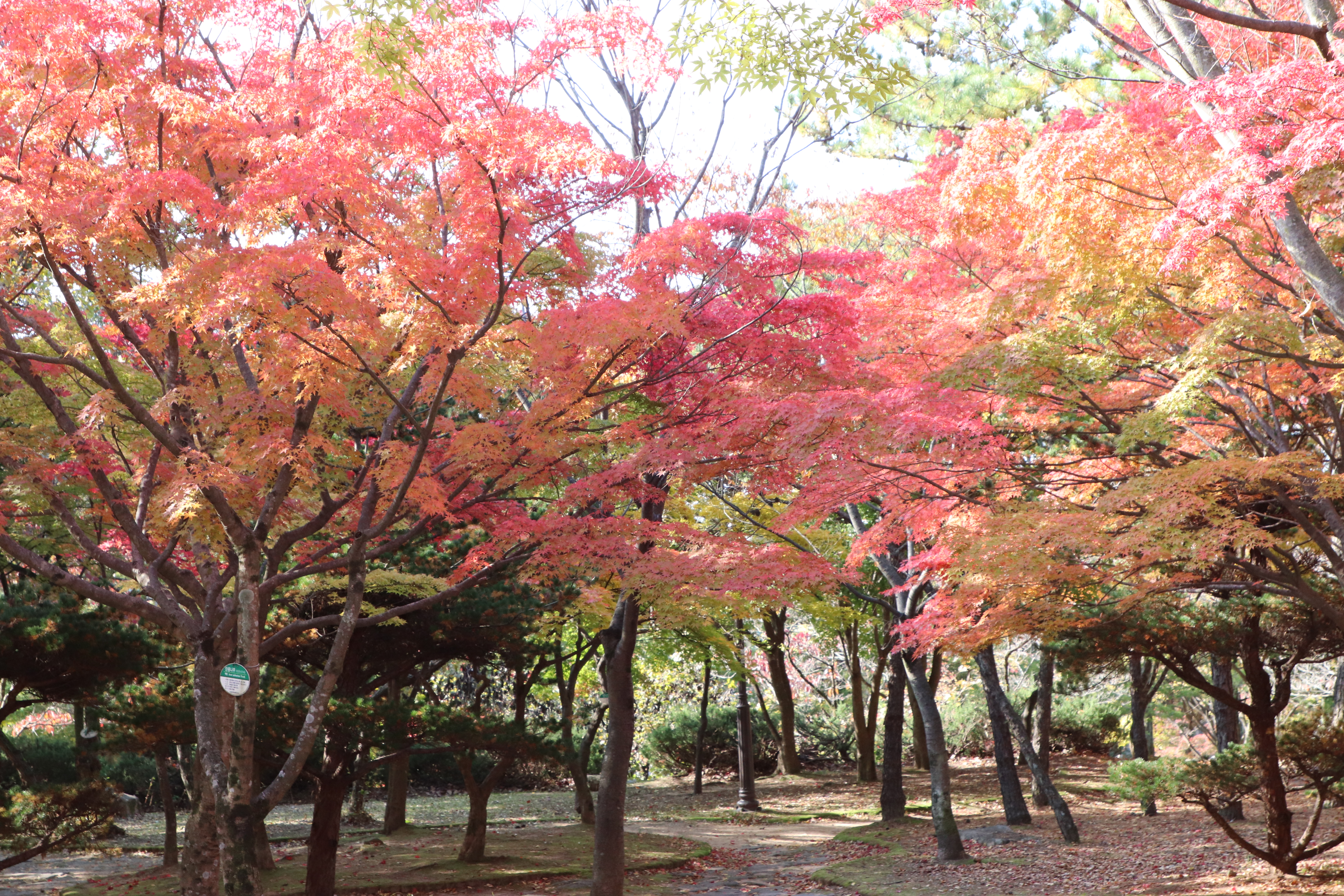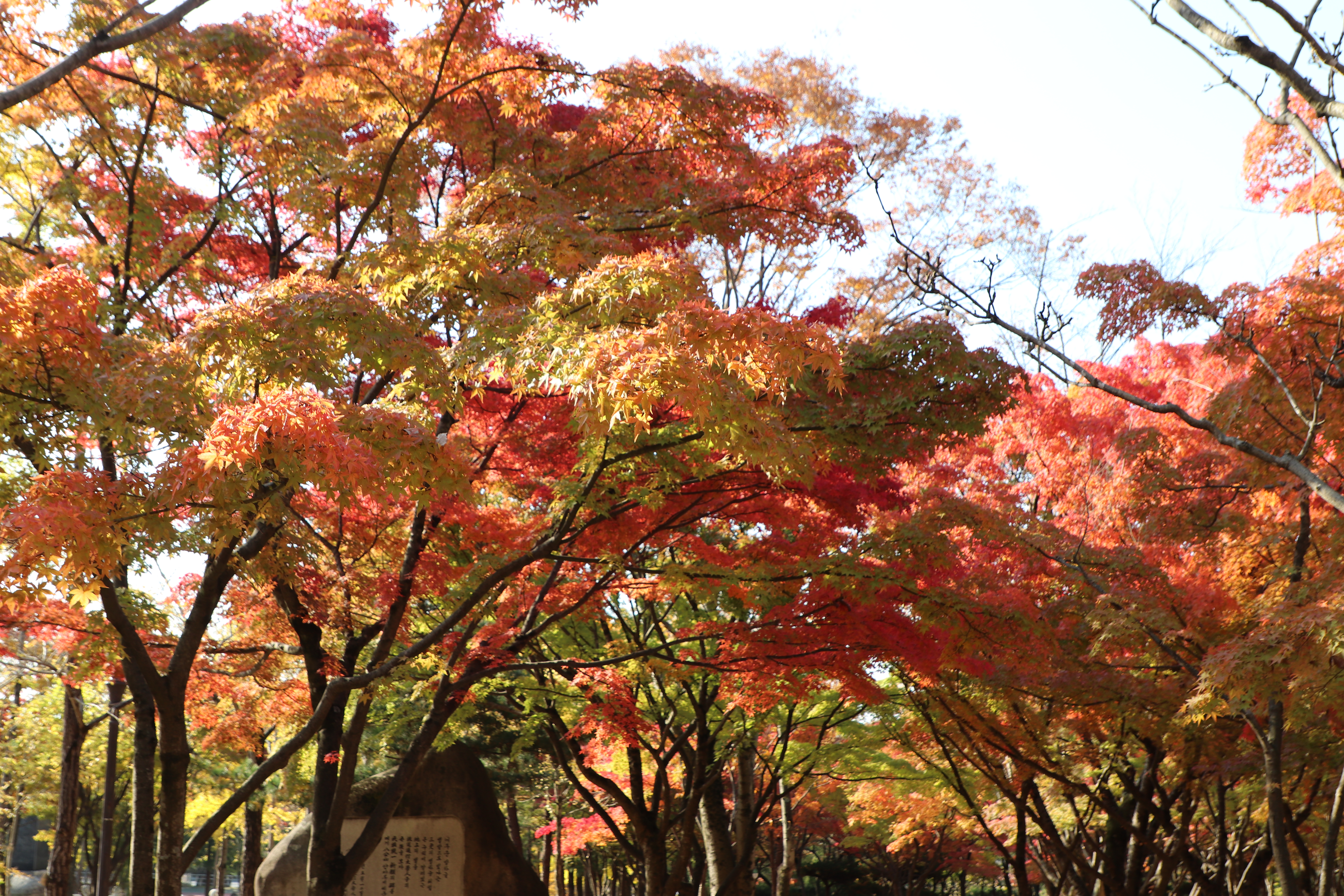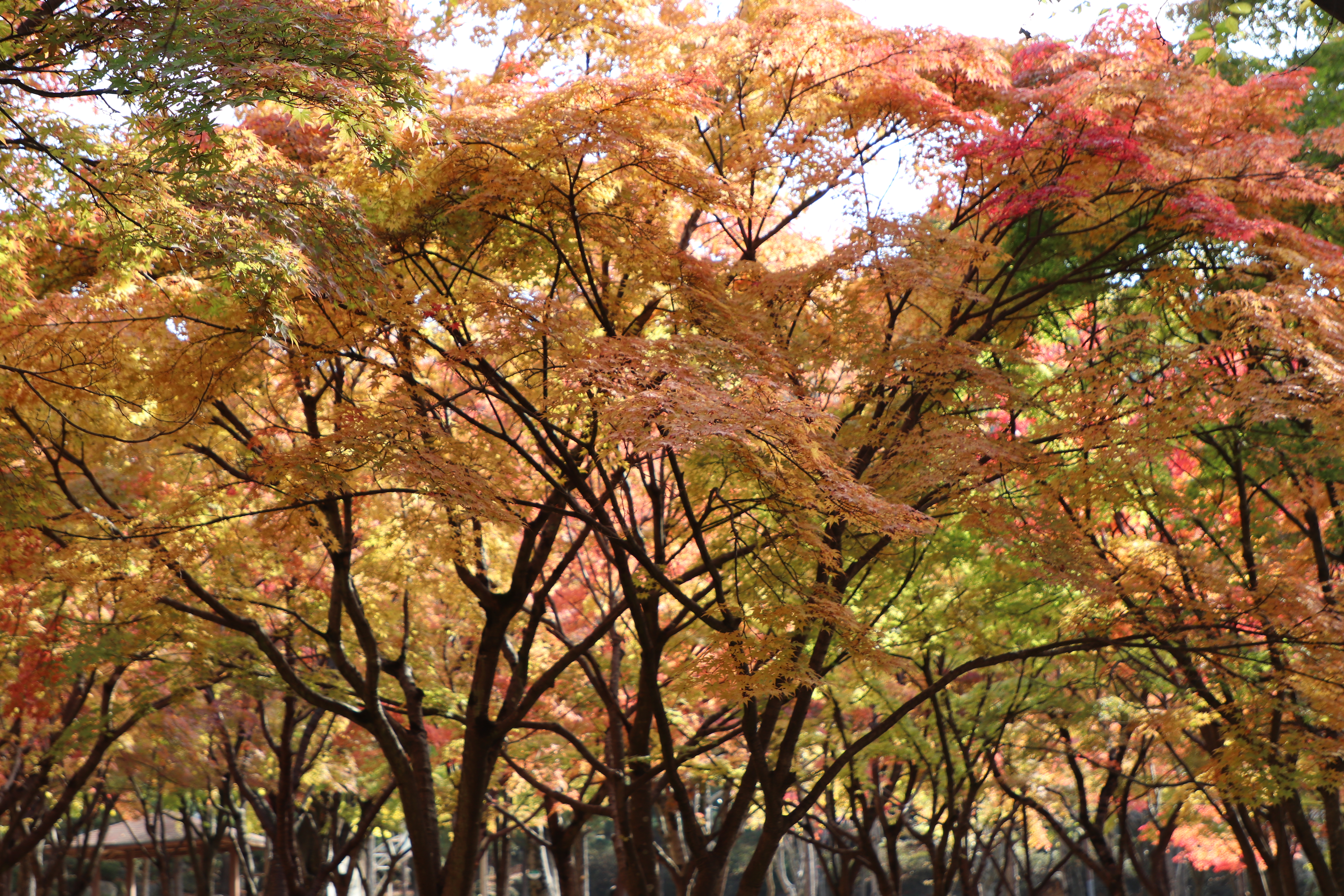 대구광역시 팔공산 국립공원 동화사 시설 지구에 아름답게 물던 가을 단풍 풍경입니다. 동화사 시설 지구 단풍은 이번 주말까지는 볼 수 있을 것 같습니다.