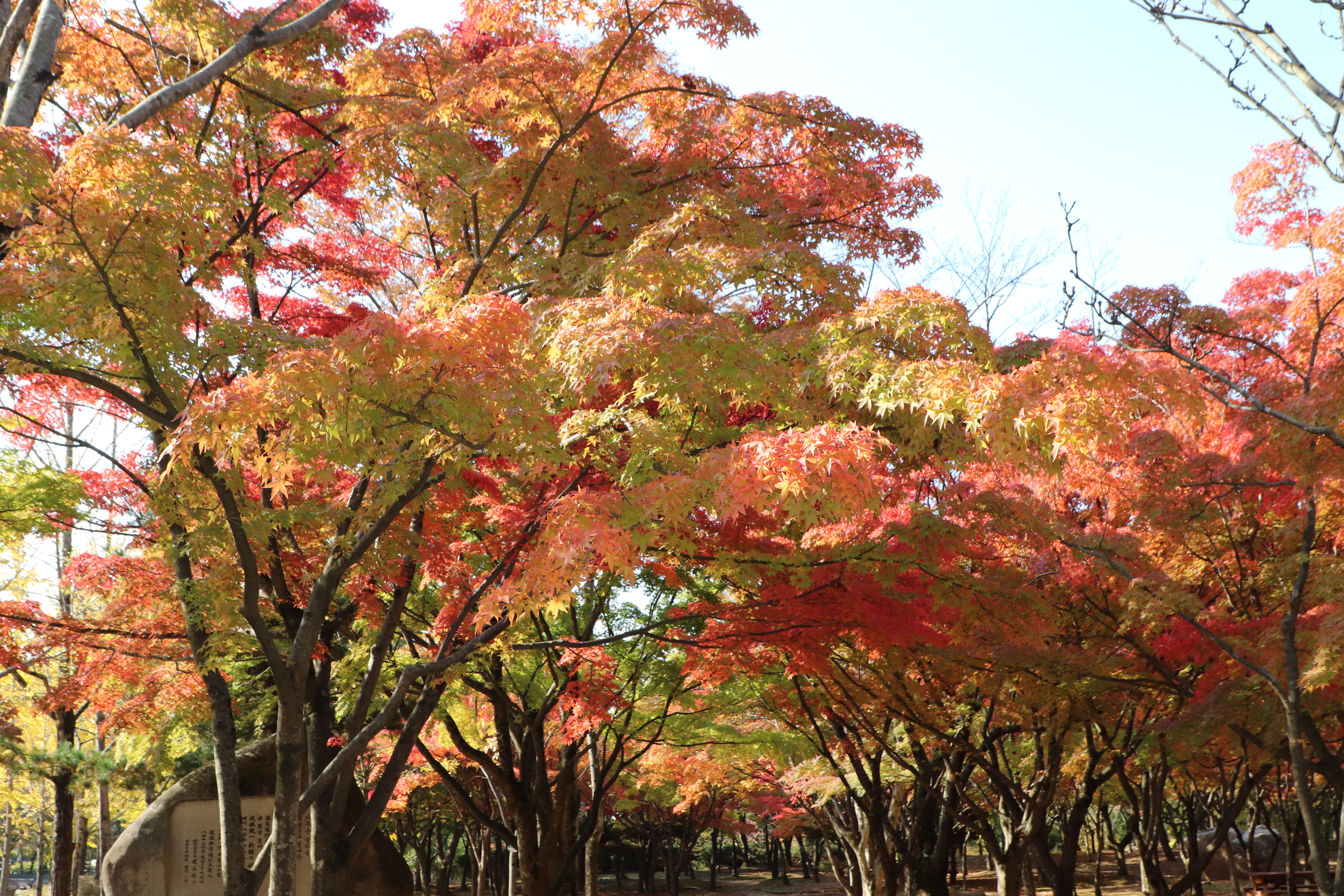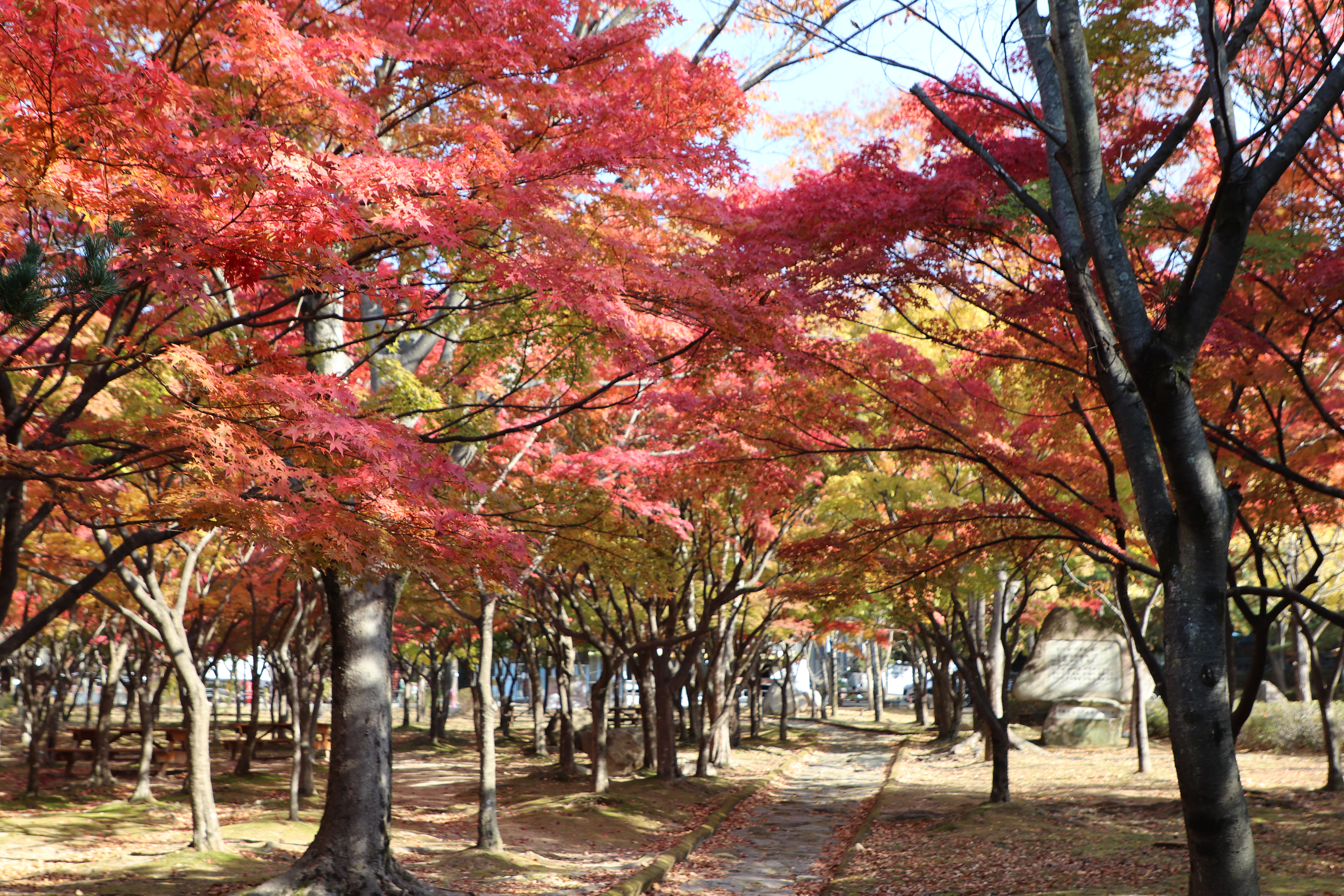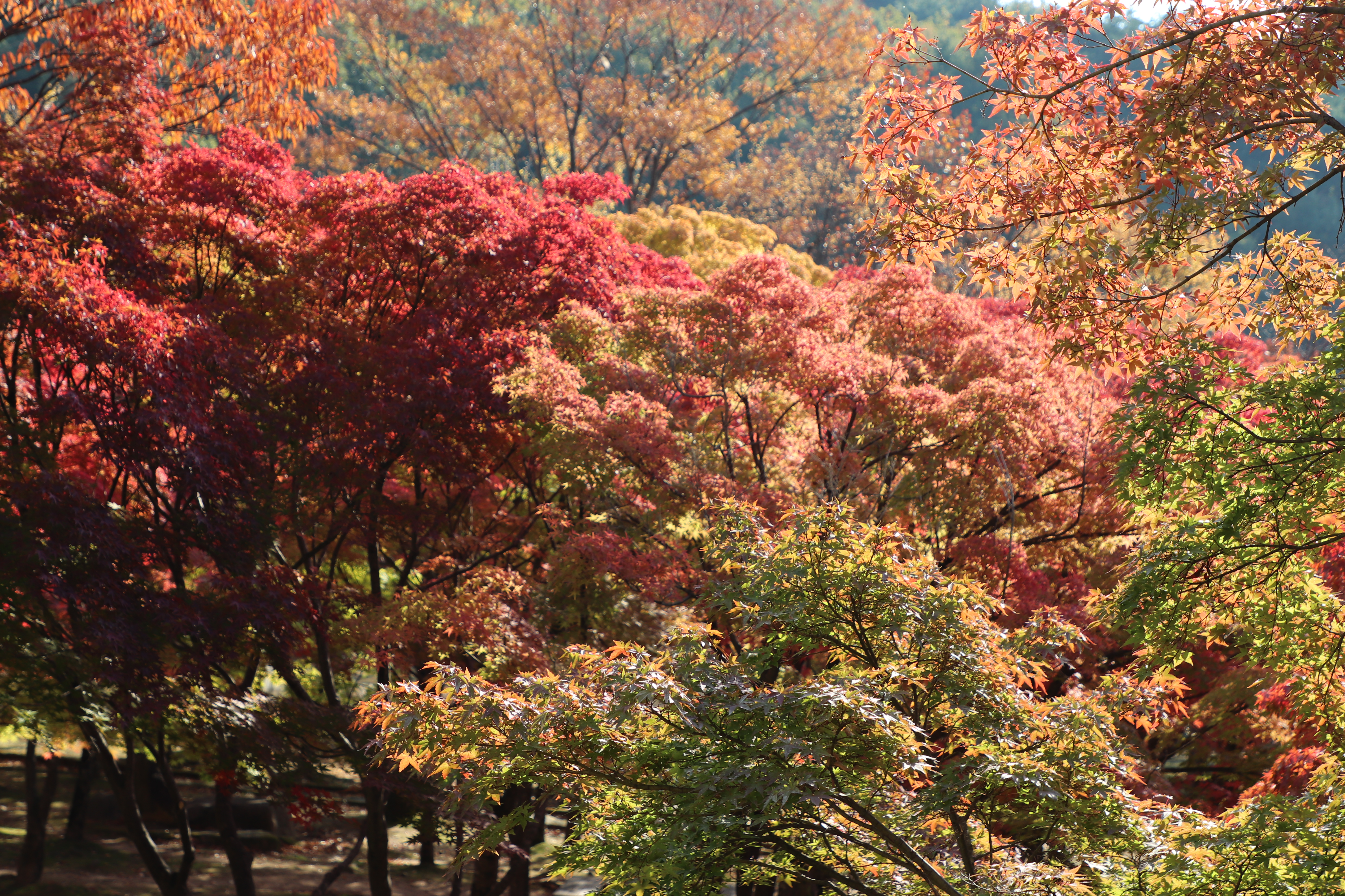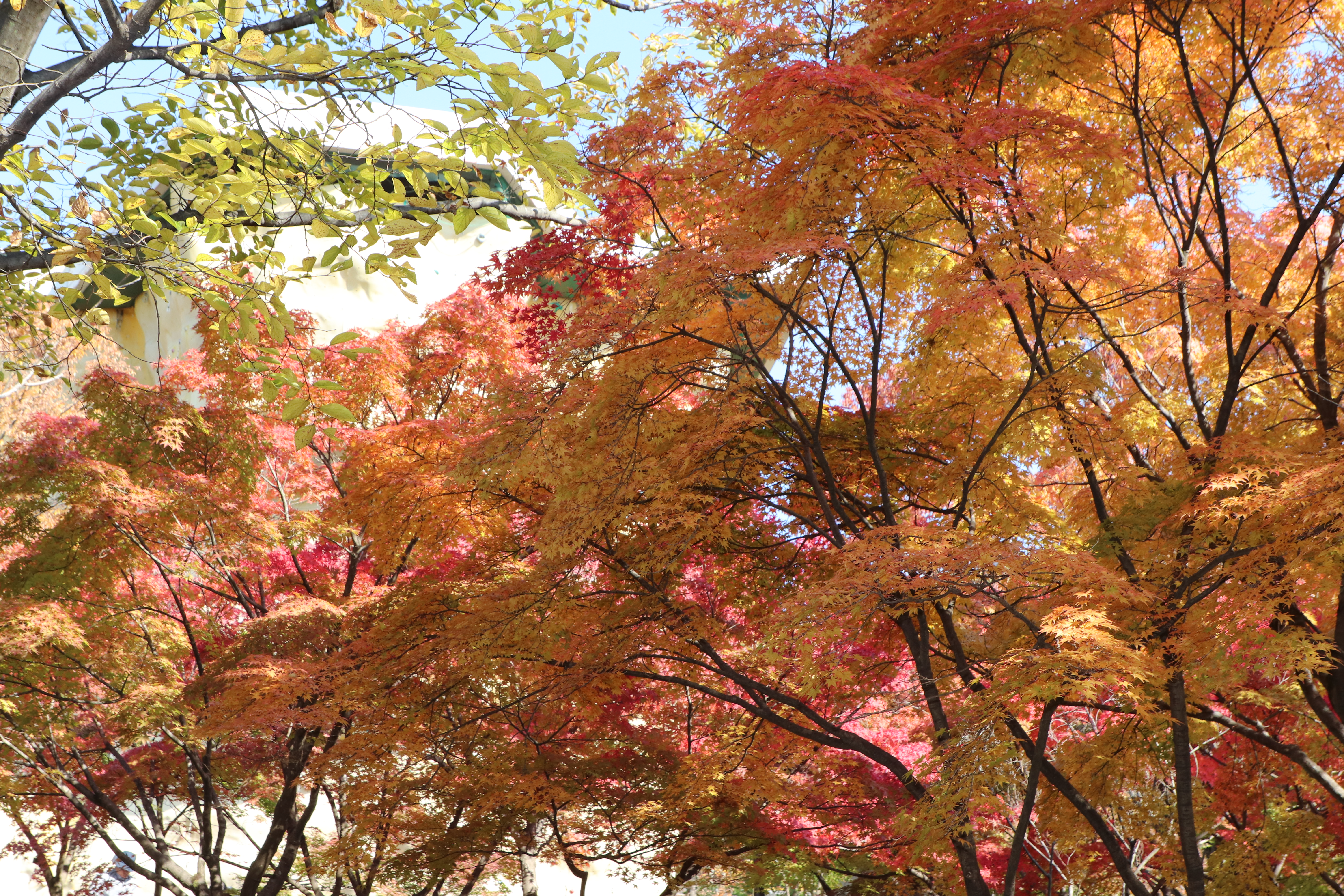 대구광역시 팔공산 국립공원 동화사 시설 지구에 아름답게 물던 가을 단풍 풍경입니다. 동화사 시설 지구 단풍은 이번 주말까지는 볼 수 있을 것 같습니다.