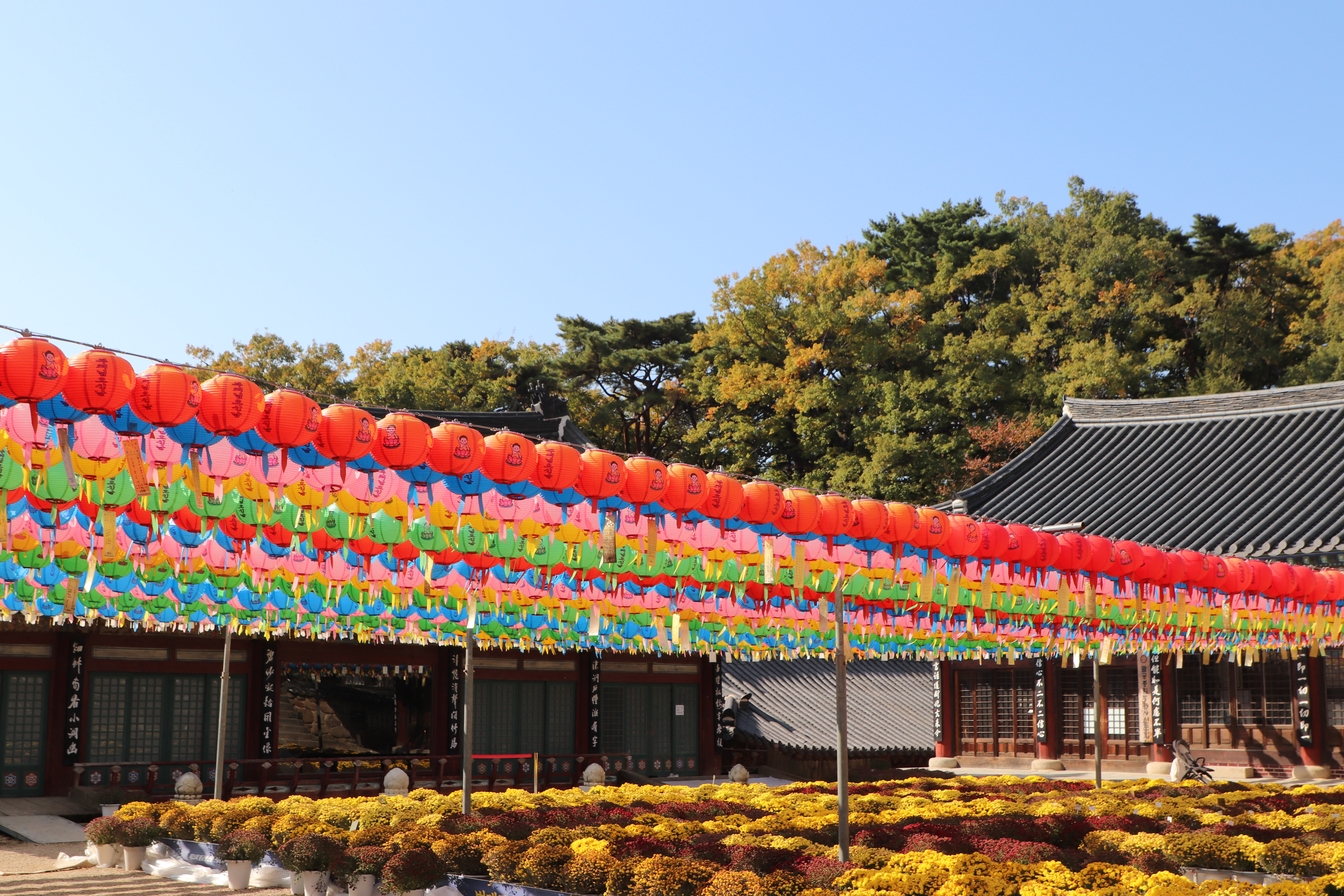 동화사(桐華寺) 대웅전(大雄殿) 앞에 줄지어 달린 연등(燃燈)입니다.
