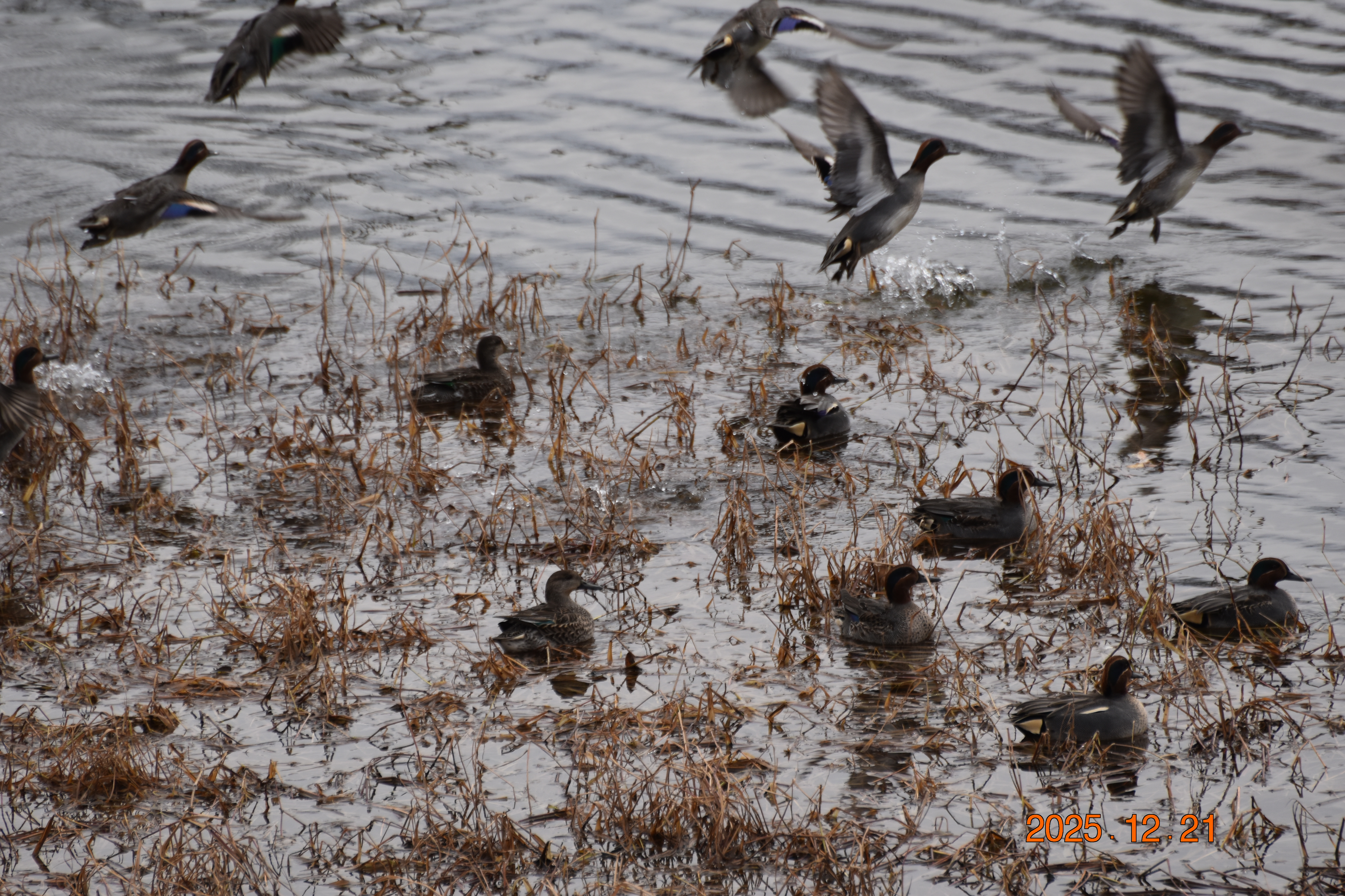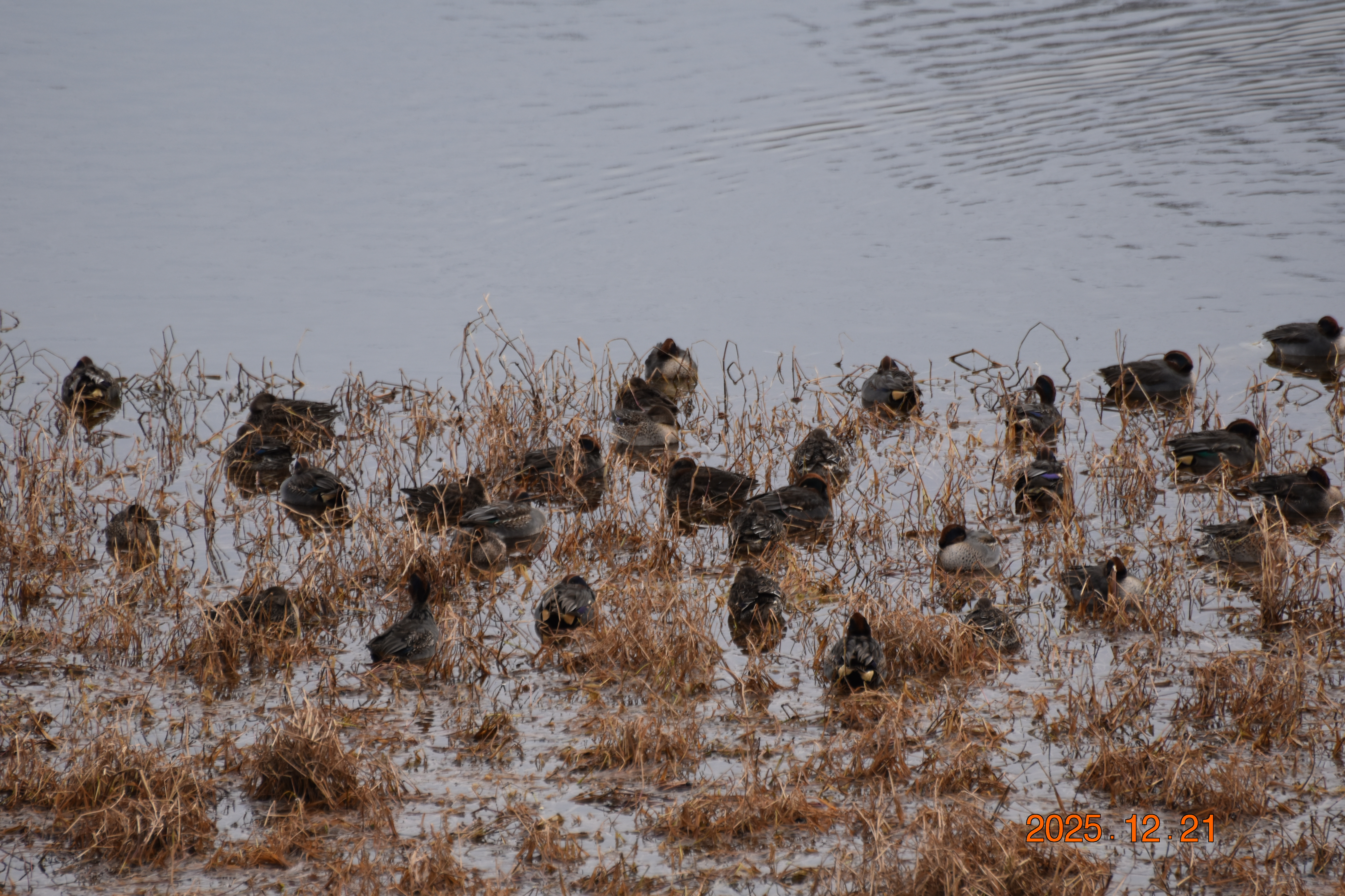얘들은 쇠오리입니다. 흰뺨검둥오리나 청둥오리보다 몸집이 작습니다. 그냥 보아서는 일반 새처럼 몸집이 조금 작습니다. 쇠오리 역시 겨울 철새이지만 최근에는 우리나라 환경에 적응하여 텃새로 살아가는 개체(個體)도 있습니다.