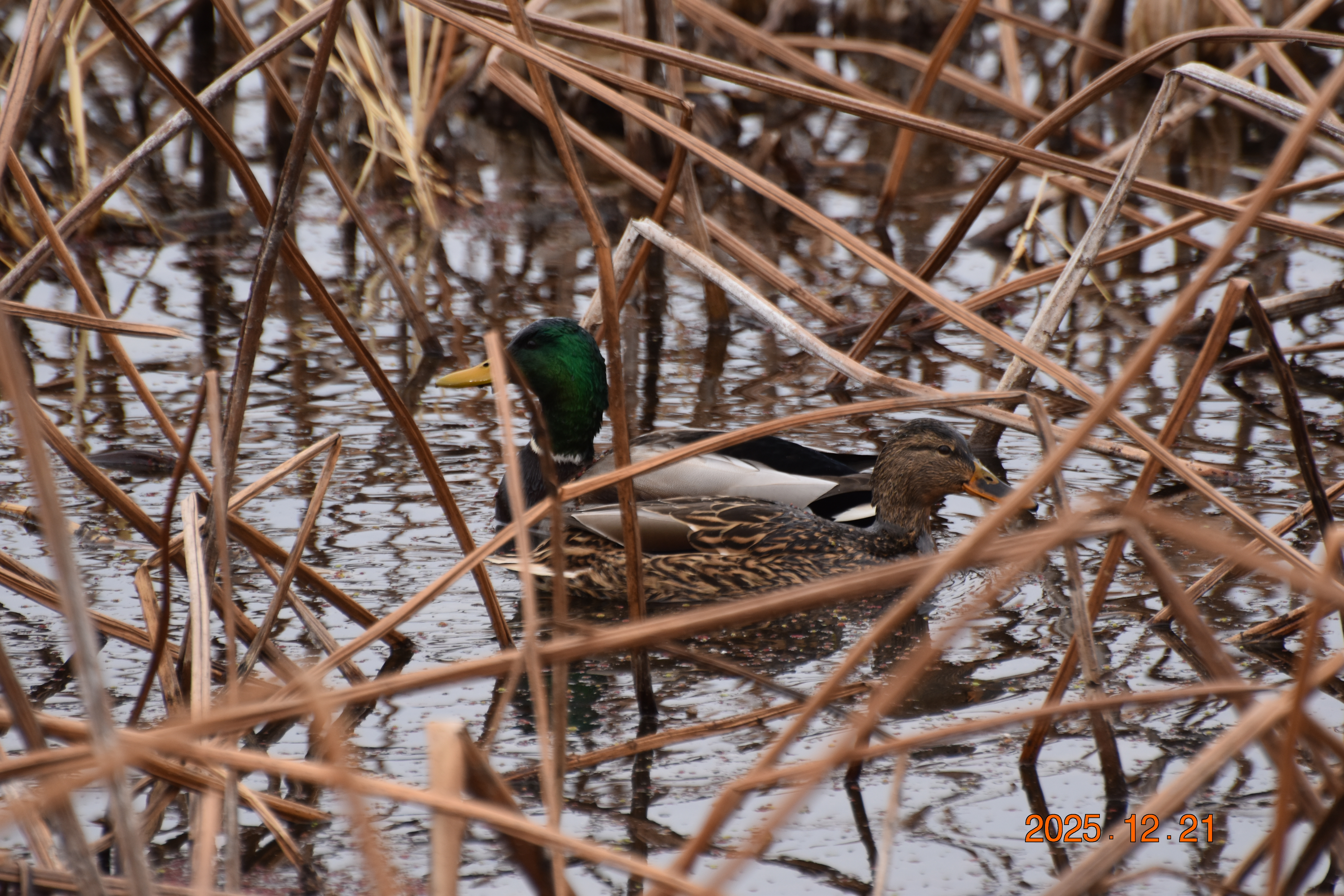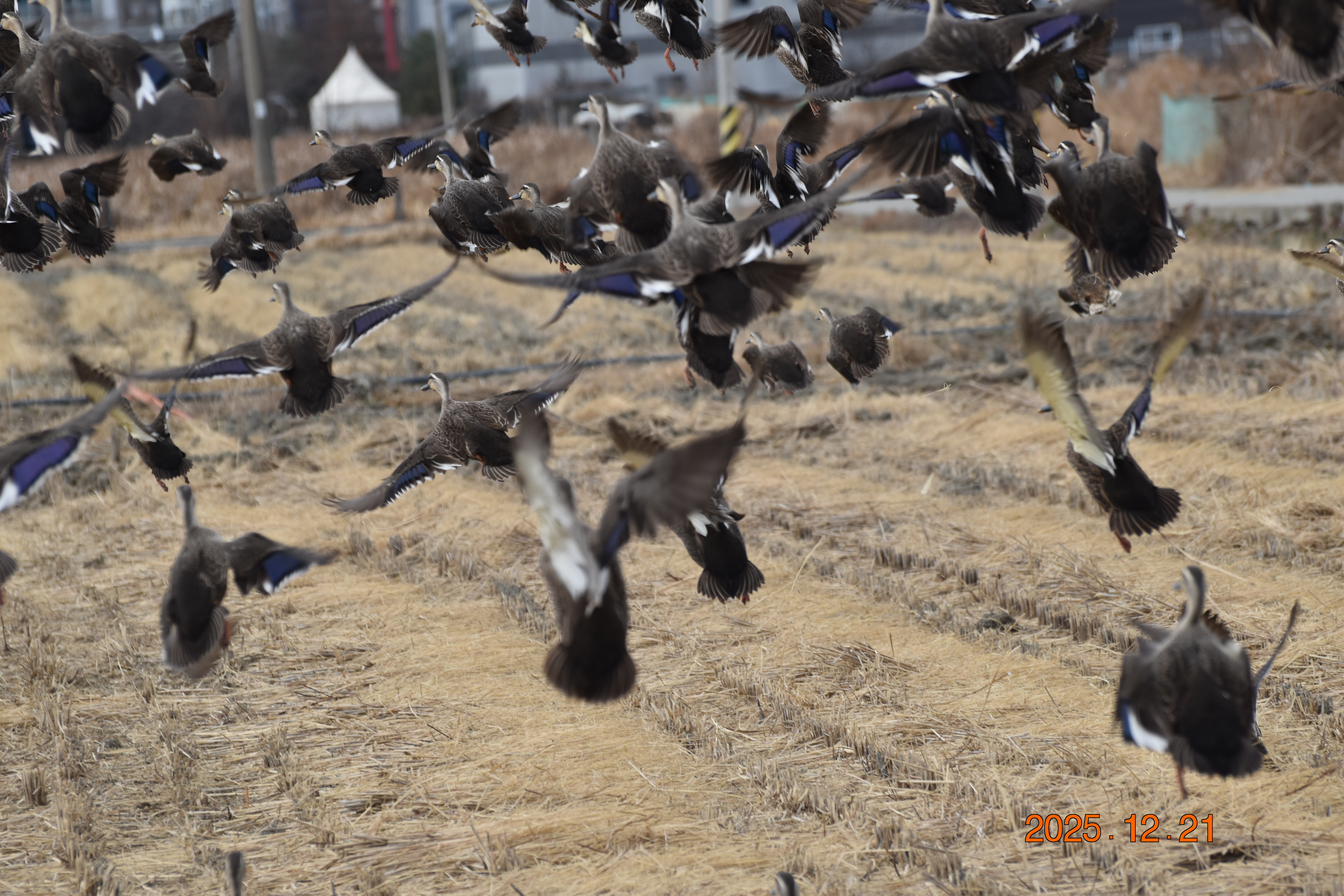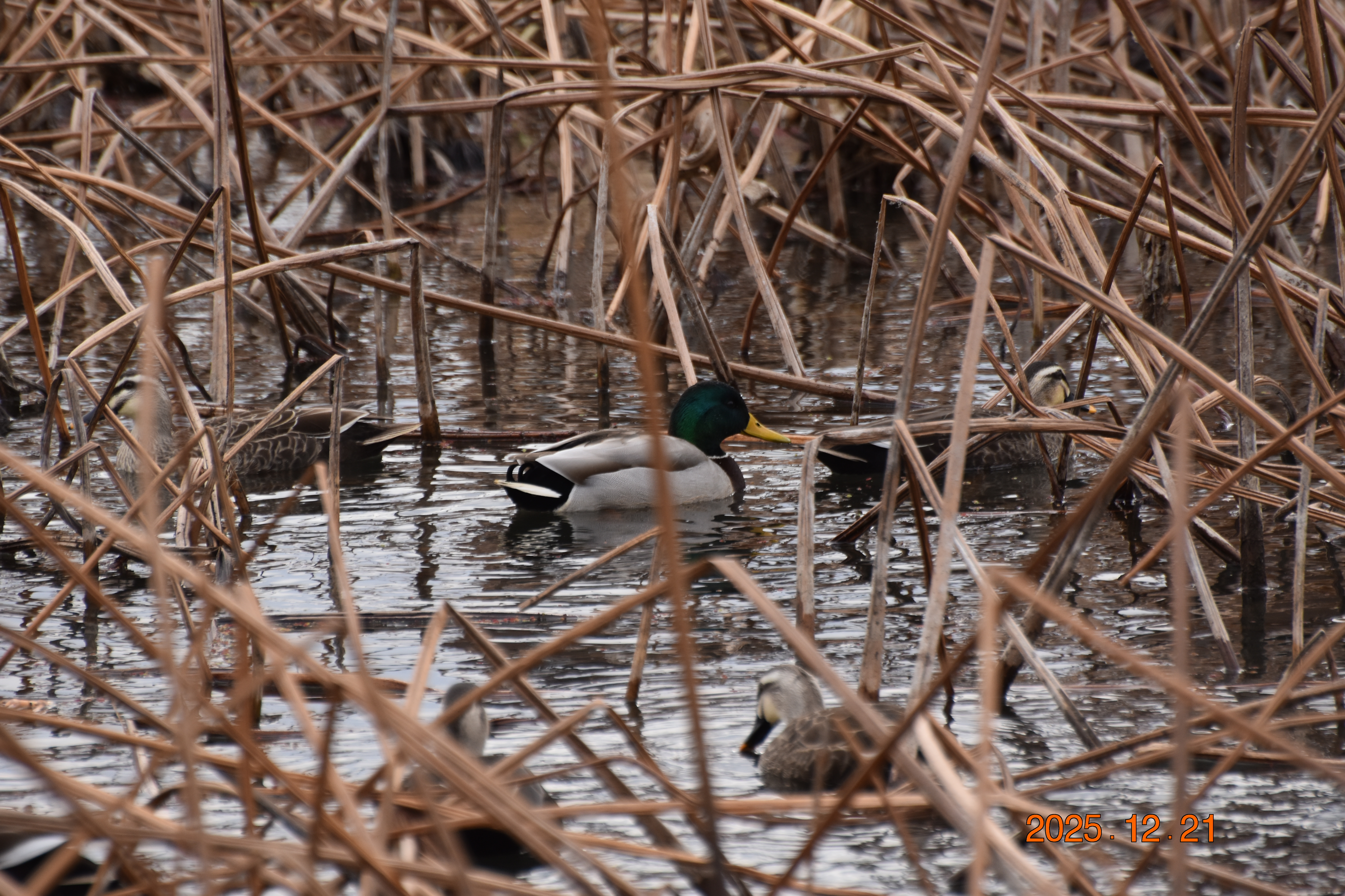 청둥오리입니다. 청둥오리 역시 우리나라에서 흰뺨검둥오리와 함께 함께 가장 흔하게 볼 수 있는 야생 오리입니다. 청둥오리는 우리나라 농가에서 가축으로 기르고 있는 집 오리의 조상입니다. 실제로 가축으로 기르고 있는 집오리와 유전자가 같다고 합니다. 청둥오리의 수컷은 머리의 색이 짙은 청색입니다. 청둥오리 역시 요즘은 일부 개체(개체)가 우리나라에서 텃새로 살아가는 무리도 있습니다. 그러나 대부분의 개체(個體)는 번식지(繁殖地)인 북쪽과 남쪽을 오가는 겨울 철새입니다.