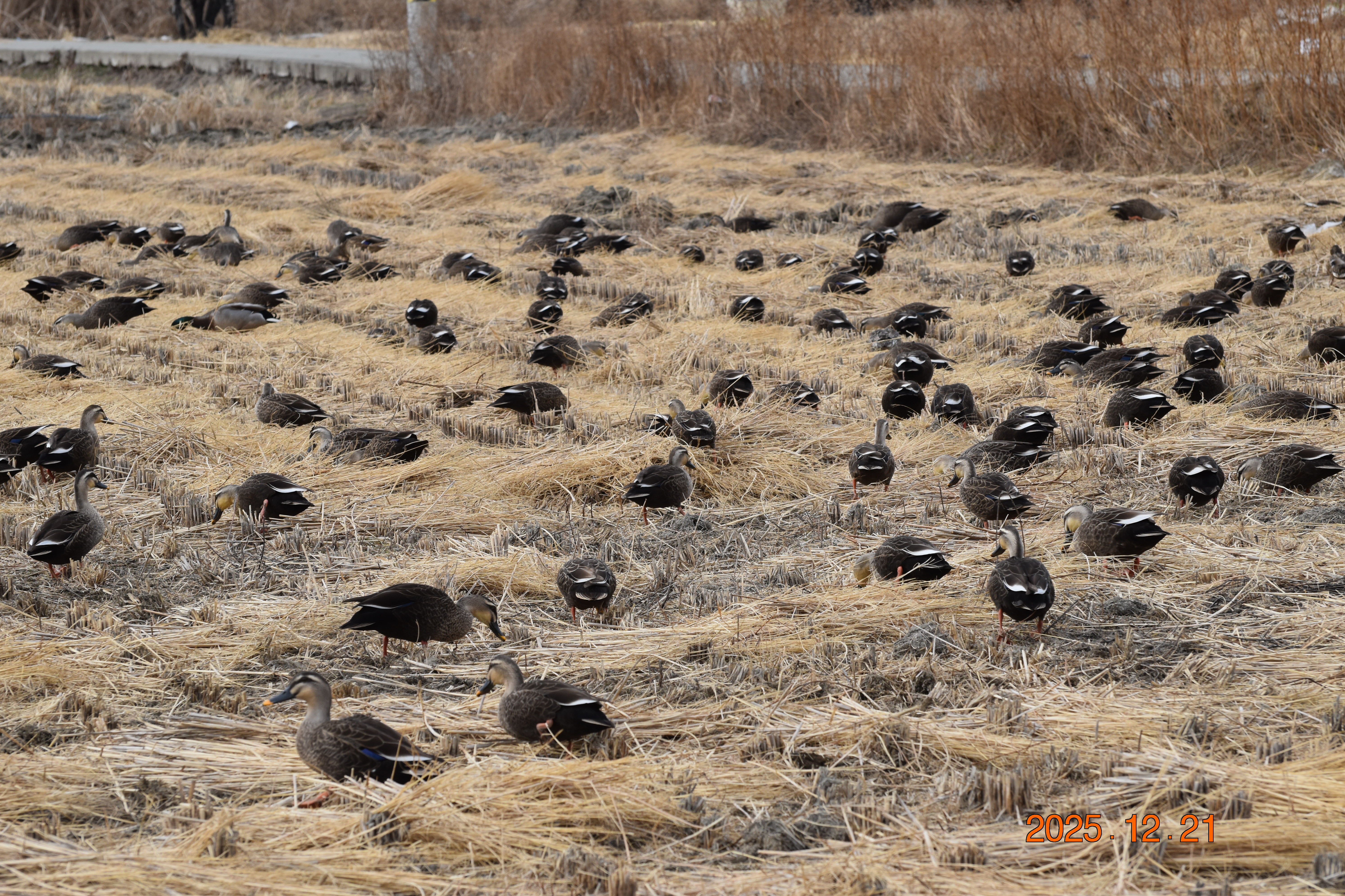 우리나라에서 청둥오리와 함께 가장 흔하게 볼 수 있는 흰뺨검둥오리입니다. 흰뺨검둥오리 역시 늦가을에, 북쪽에서 날아와 우리나라에서 겨울을 나고 이듬해 봄에 다시 북쪽으로 돌아가는 겨울 철새입니다. 요즘은 일부 개체(개체)가 우리나라에서 텃새로 살아가는 무리도 있습니다. 그러나 대부분의 개체(個體)는 번식지(繁殖地)인 북쪽과 남쪽을 오가는 겨울 철새입니다.