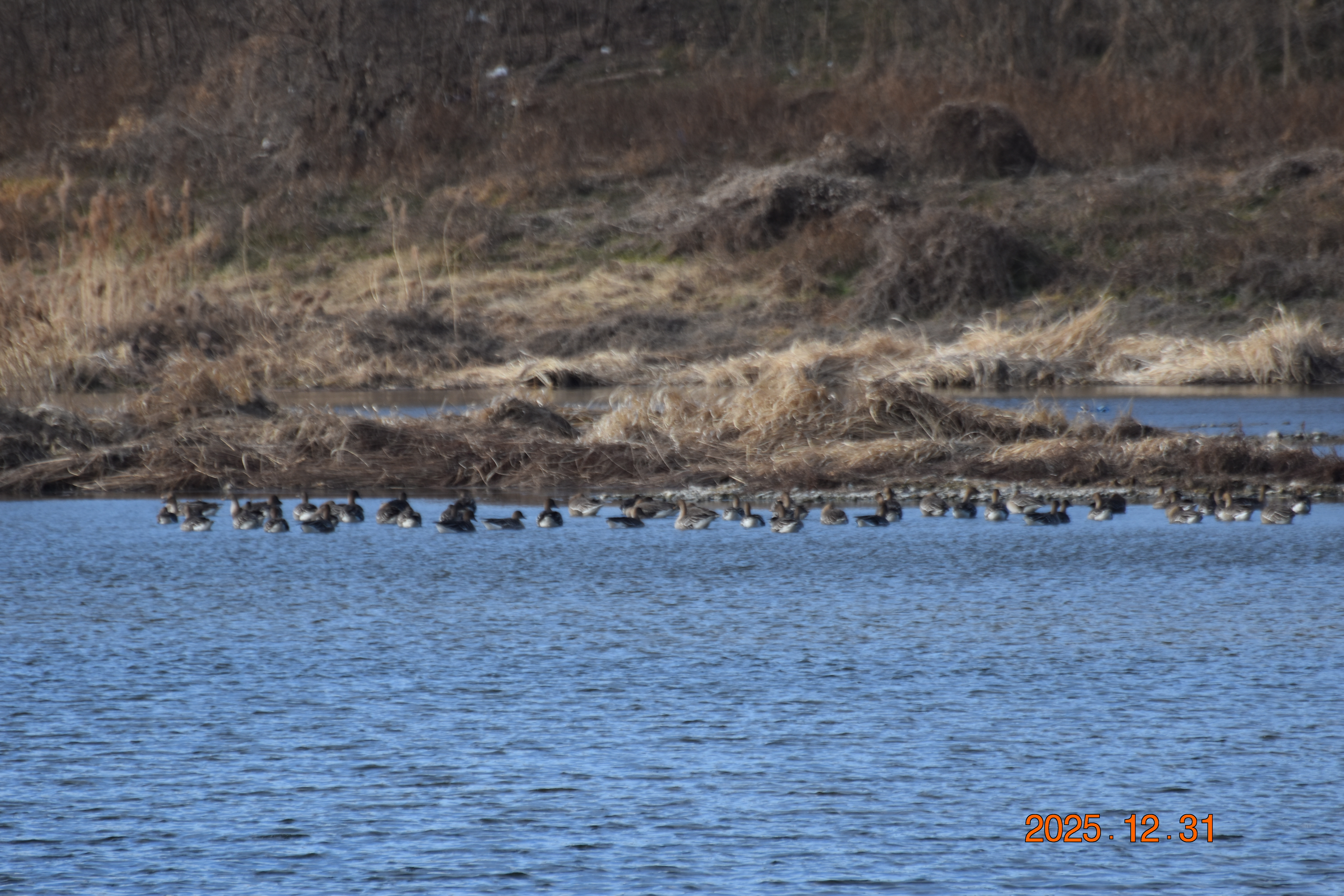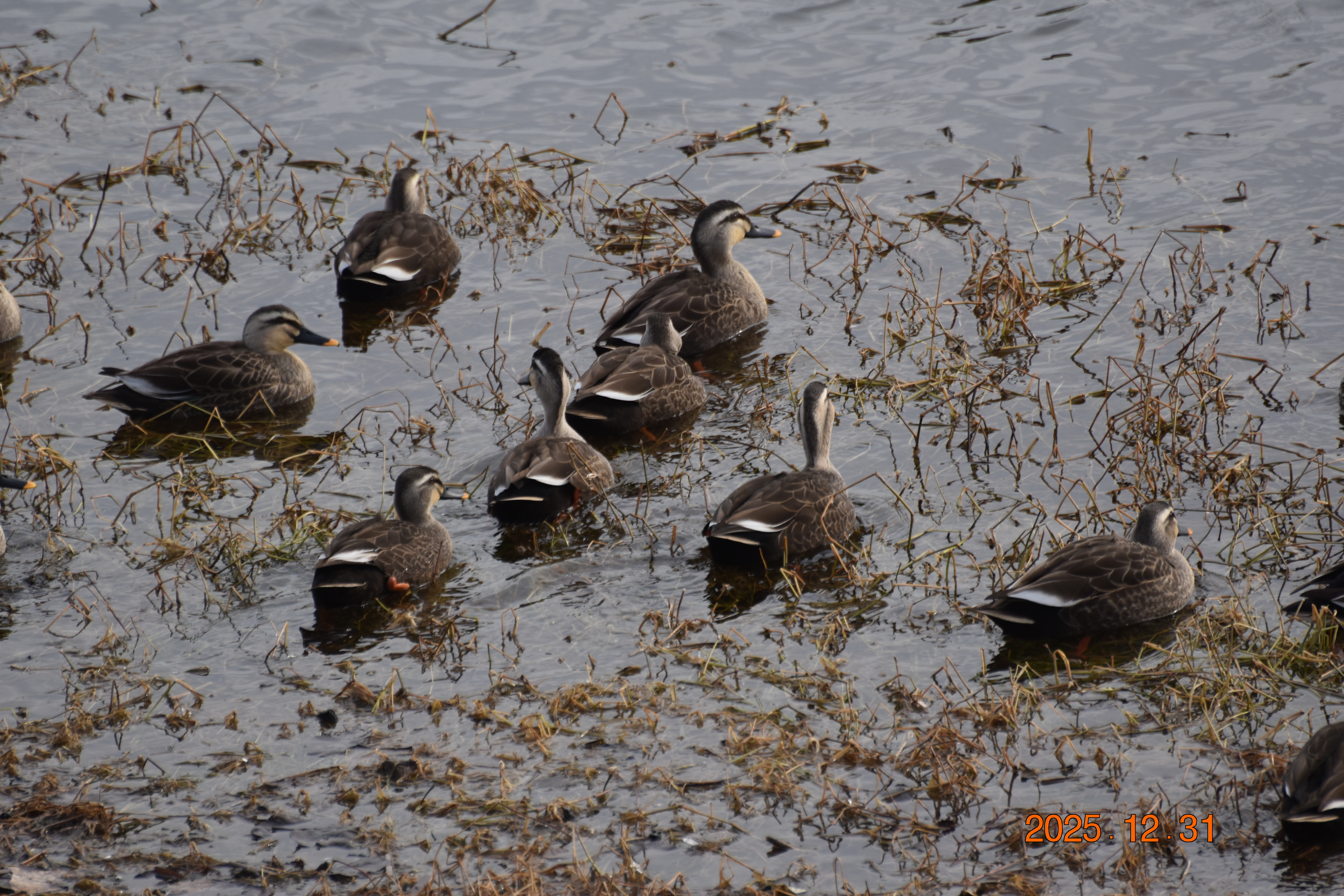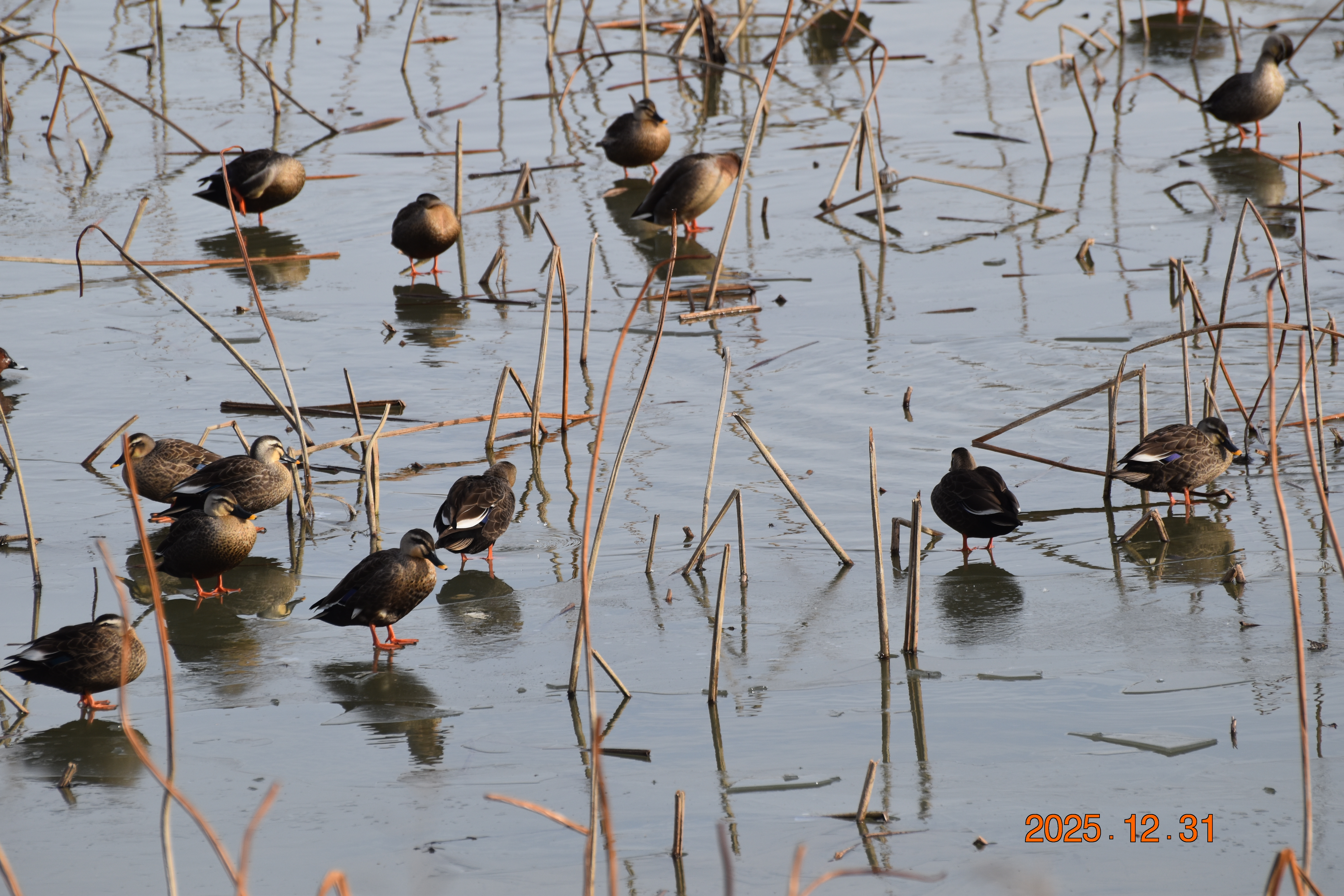 말라버린 연꽃 줄기 사이에서 휴식을 하는 반가운 겨울 길손 청둥오리 무리입니다. 청둥오리는 우리가 집에서 가축으로 기르고 있는 집오리의 조상입니다. 청둥오리 역시 우리나라에서 텃새로 살아가는 무리와 북쪽에서 겨울을 나기 위해 우리나라를 찾아오는 무리가 있습니다.